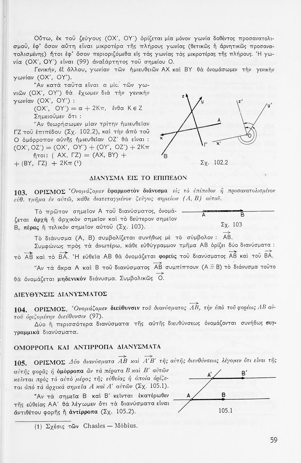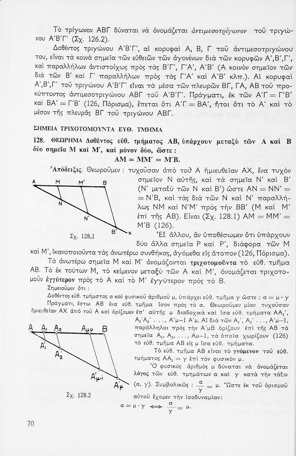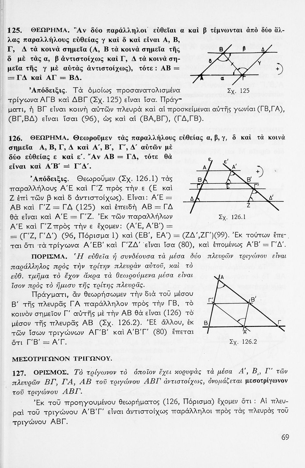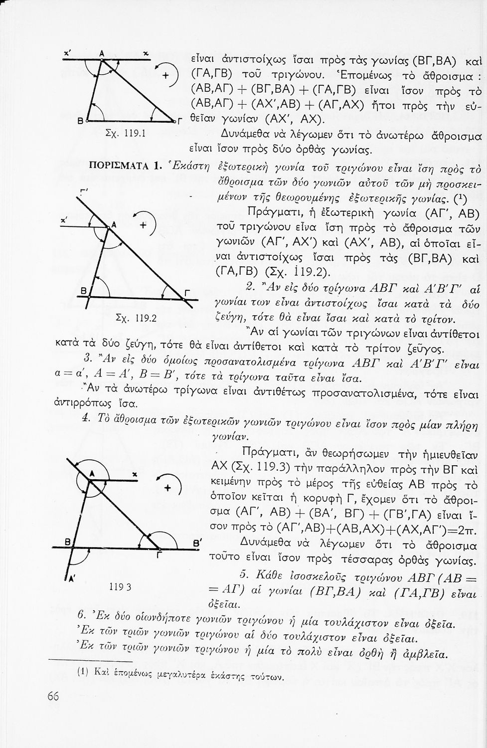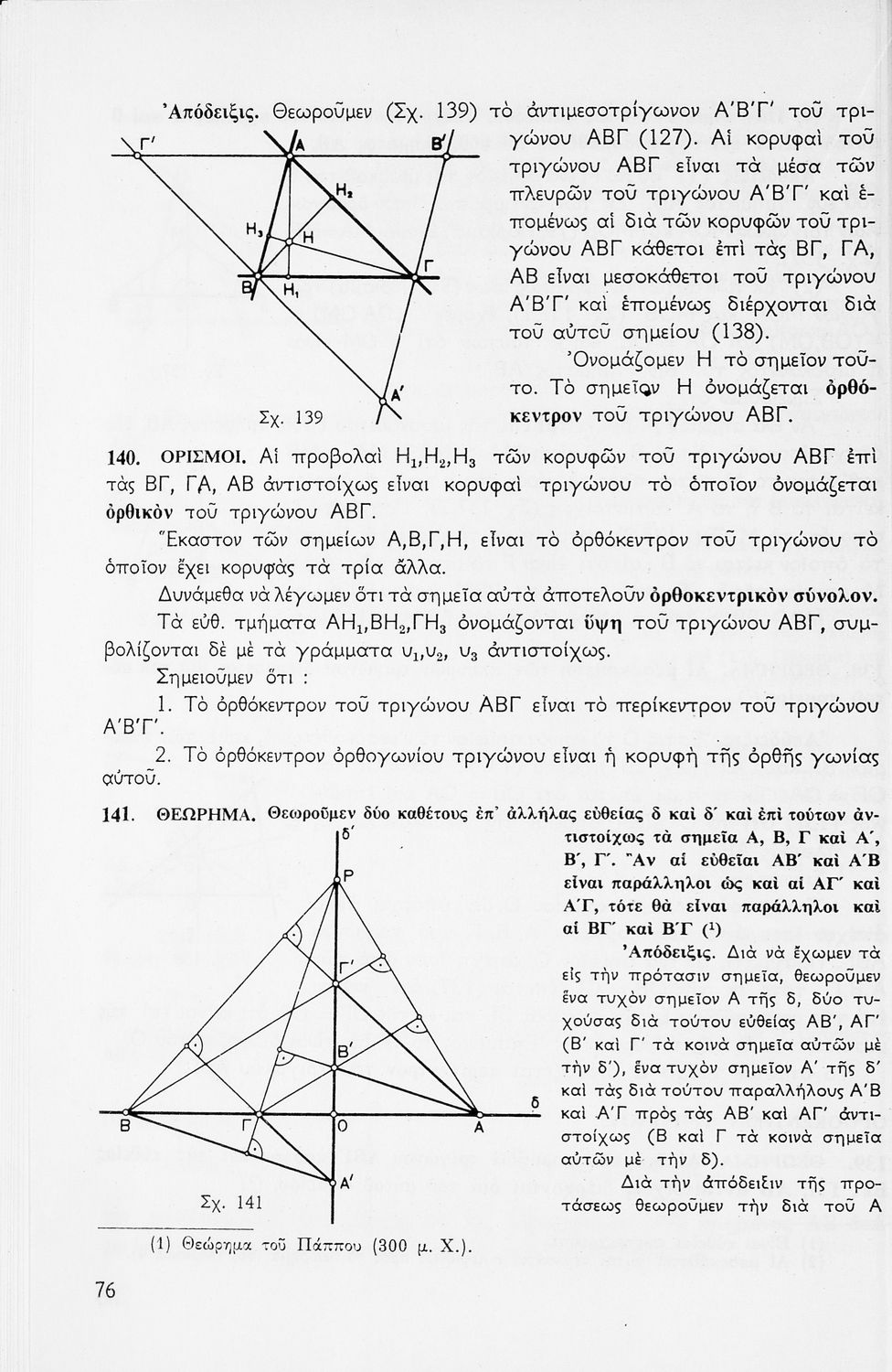 Βαθμίδα εκπαίδευσης: Δευτεροβάθμια Τάξη: Γ' Γυμνασίου Μάθημα: Μαθηματικά Γλώσσα: Απλή καθαρεύουσα Παρουσίαση περιεχομένου: Σχολικό εγχειρίδιο Μαθηματικών Γ΄ Γυμνασίου που εστιάζει στη Γεωμετρία. Φέρει το σύμβολο της δικτατορίας. Ο συγγραφέας ήταν επιμελητής στο ΕΜΠ. |