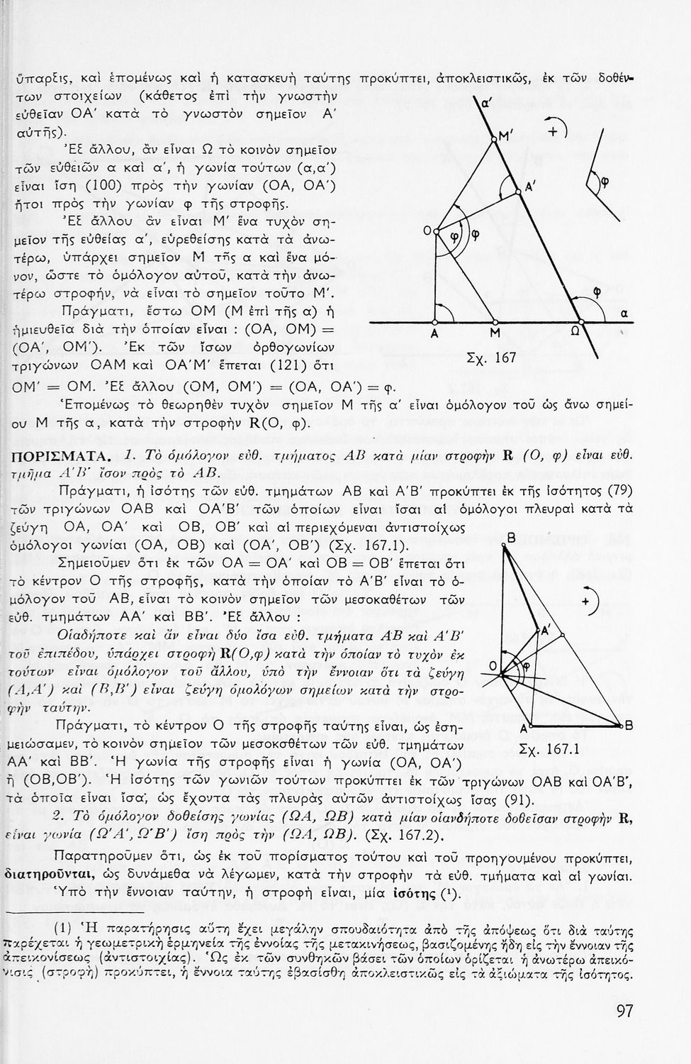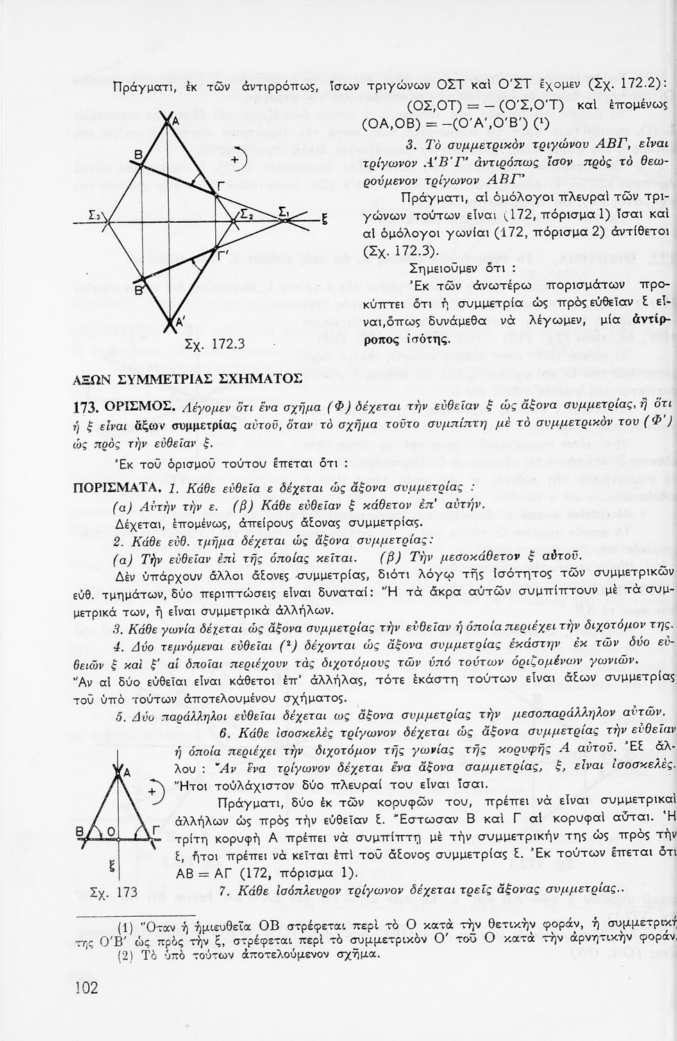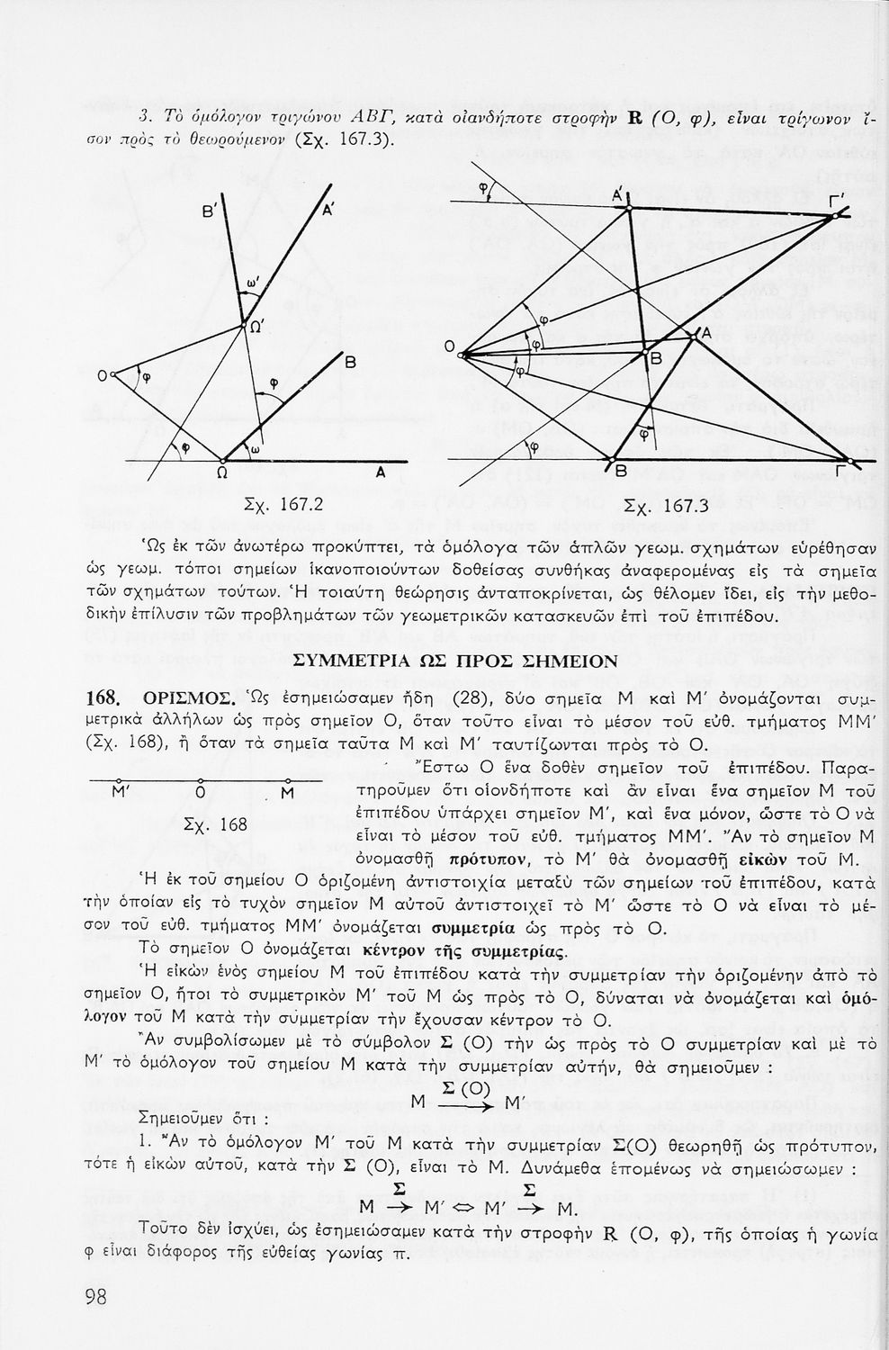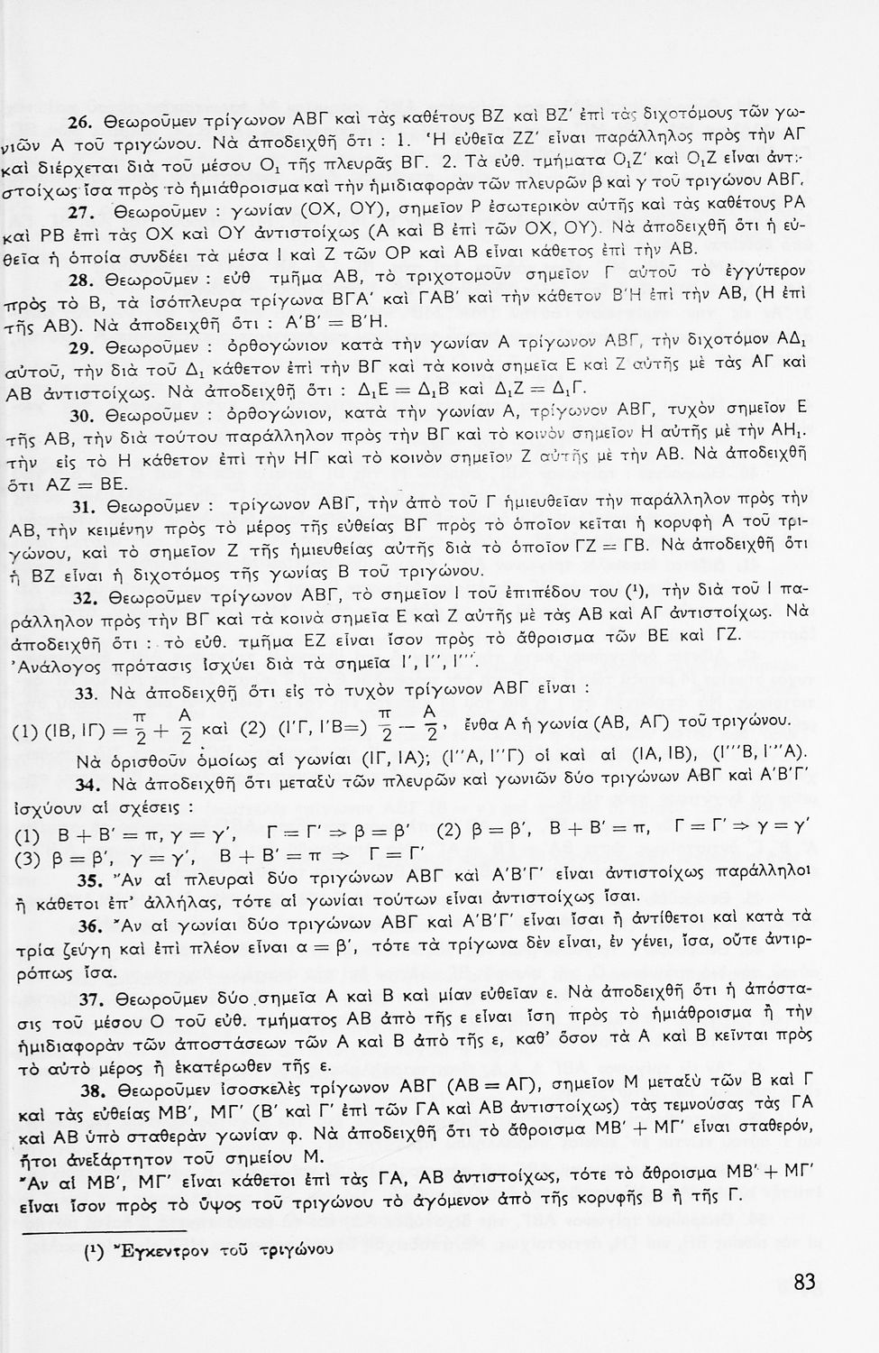 Σχολικό εγχειρίδιο Μαθηματικών Γ΄ Γυμνασίου που εστιάζει στη Γεωμετρία. Φέρει το σύμβολο της δικτατορίας. Ο συγγραφέας ήταν επιμελητής στο ΕΜΠ.