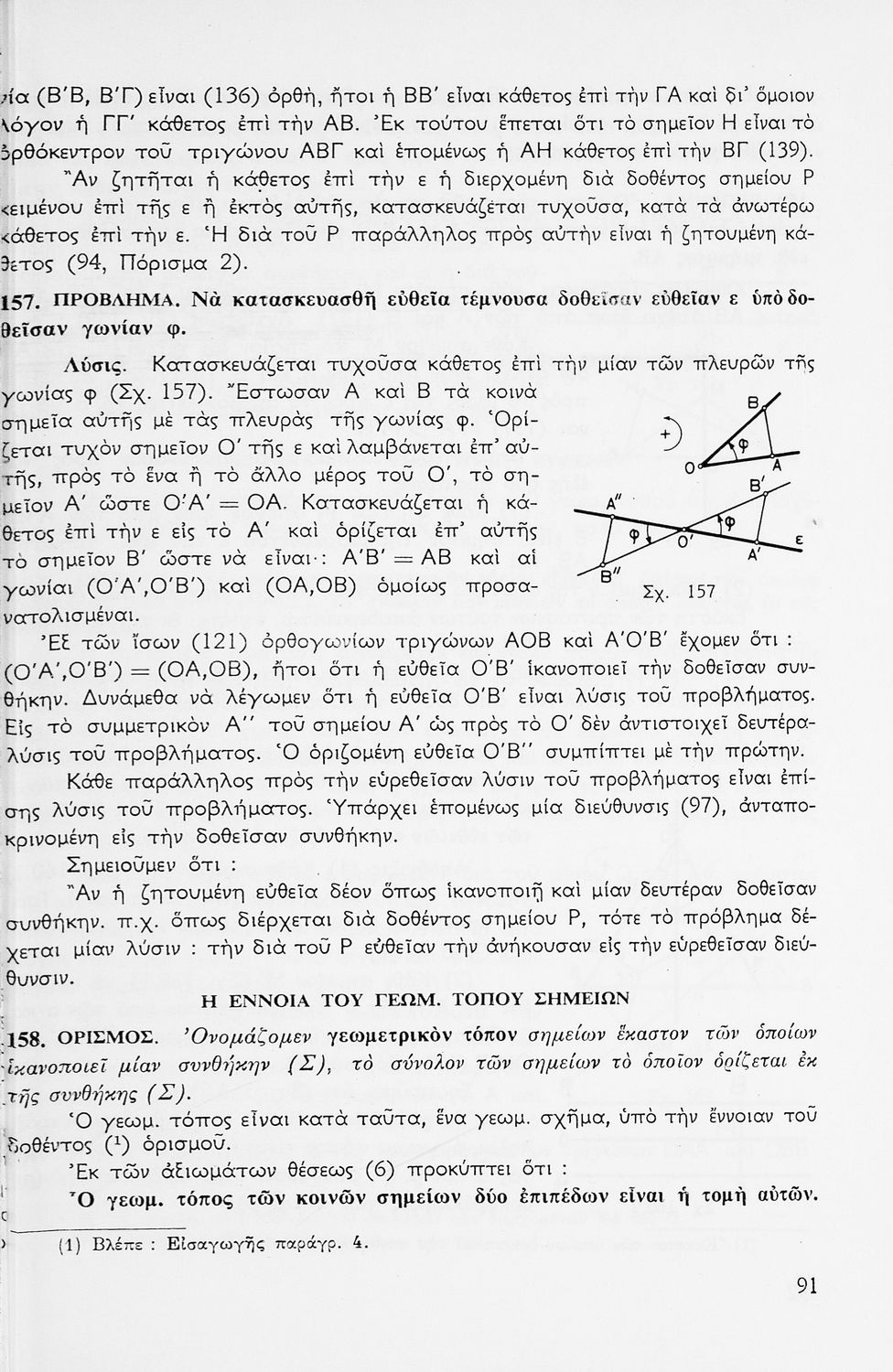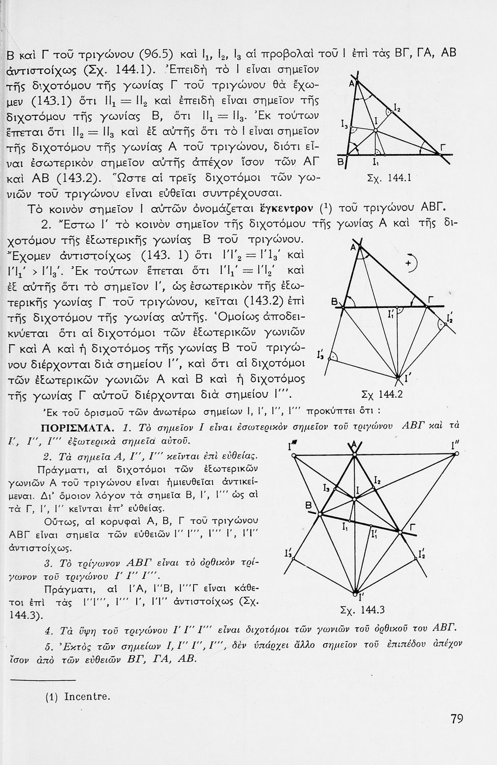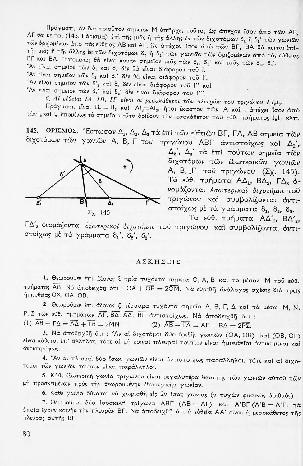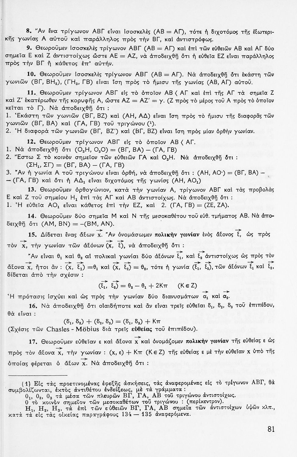 Σχολικό εγχειρίδιο Μαθηματικών Γ΄ Γυμνασίου που εστιάζει στη Γεωμετρία. Φέρει το σύμβολο της δικτατορίας. Ο συγγραφέας ήταν επιμελητής στο ΕΜΠ.