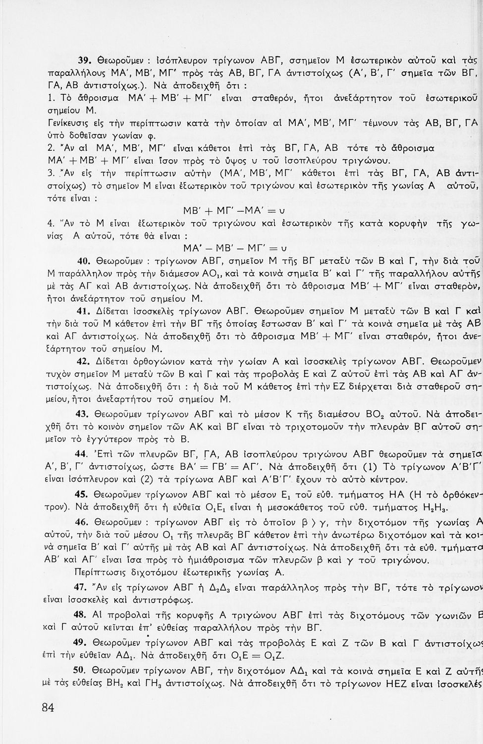 Παρουσίαση περιεχομένου: Σχολικό εγχειρίδιο Μαθηματικών Γ΄ Γυμνασίου που εστιάζει στη Γεωμετρία. Φέρει το σύμβολο της δικτατορίας. Ο συγγραφέας ήταν επιμελητής στο ΕΜΠ.