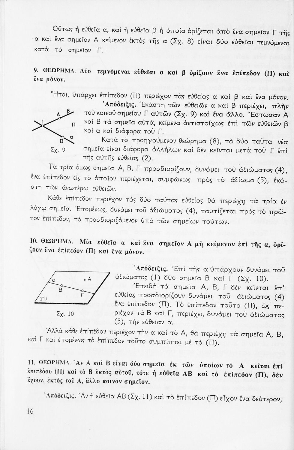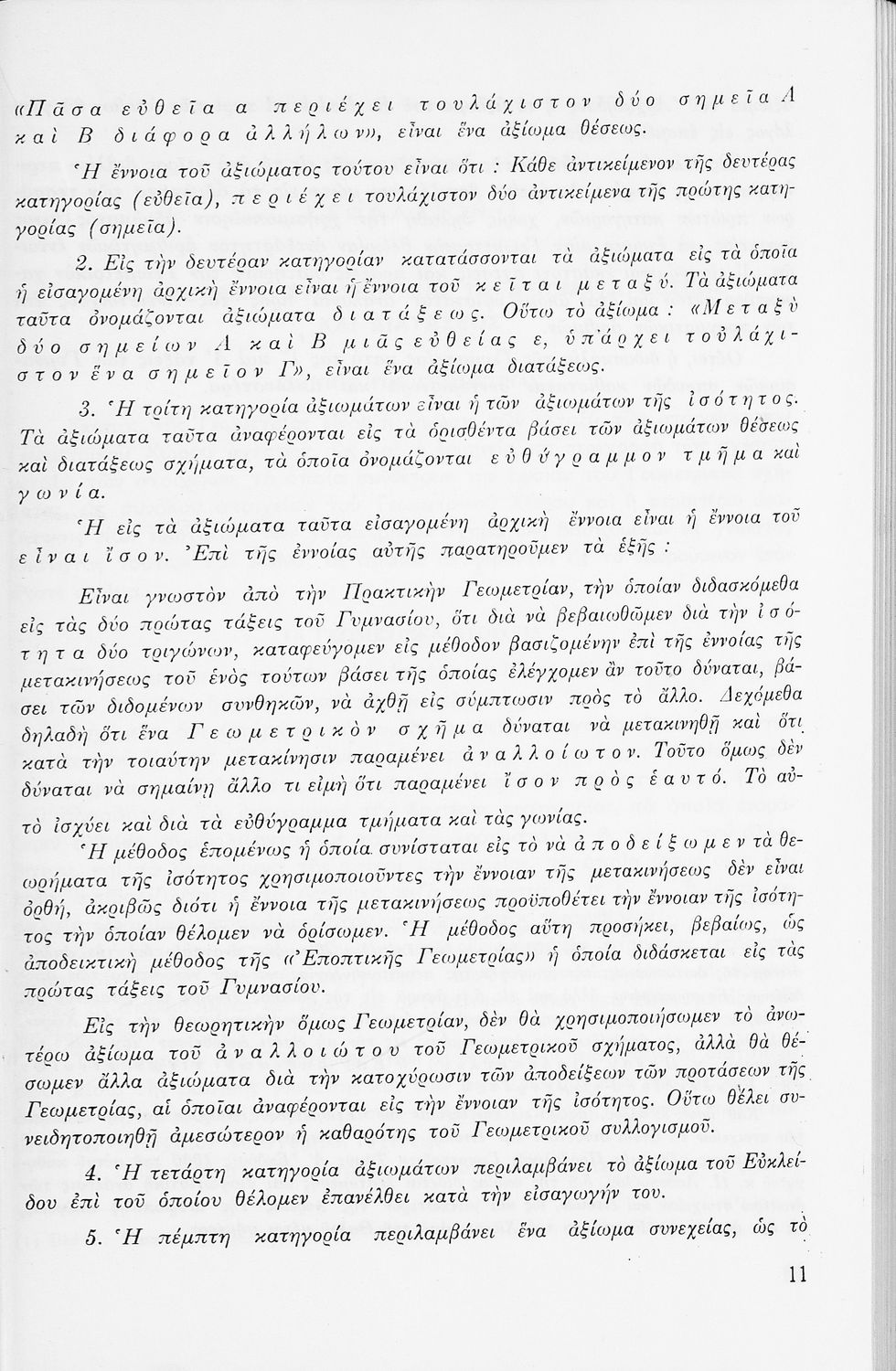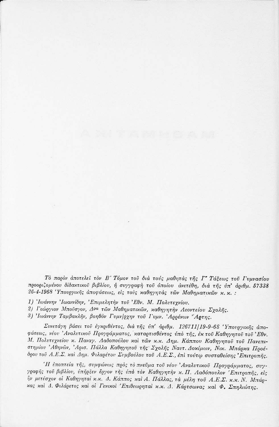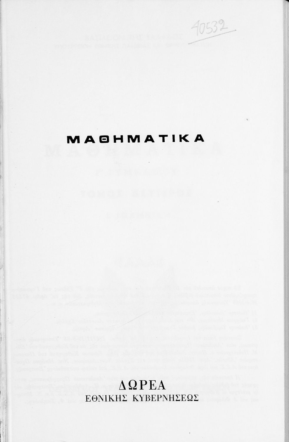Βαθμίδα εκπαίδευσης: Δευτεροβάθμια Τάξη: Γ' Γυμνασίου Μάθημα: Μαθηματικά Γλώσσα: Απλή καθαρεύουσα Παρουσίαση περιεχομένου: Σχολικό εγχειρίδιο Μαθηματικών Γ΄ Γυμνασίου που εστιάζει στη Γεωμετρία. Φέρει το σύμβολο της δικτατορίας. Ο συγγραφέας ήταν επιμελητής στο ΕΜΠ. |