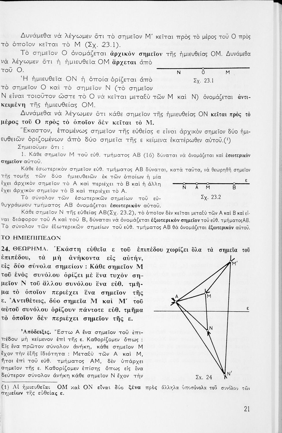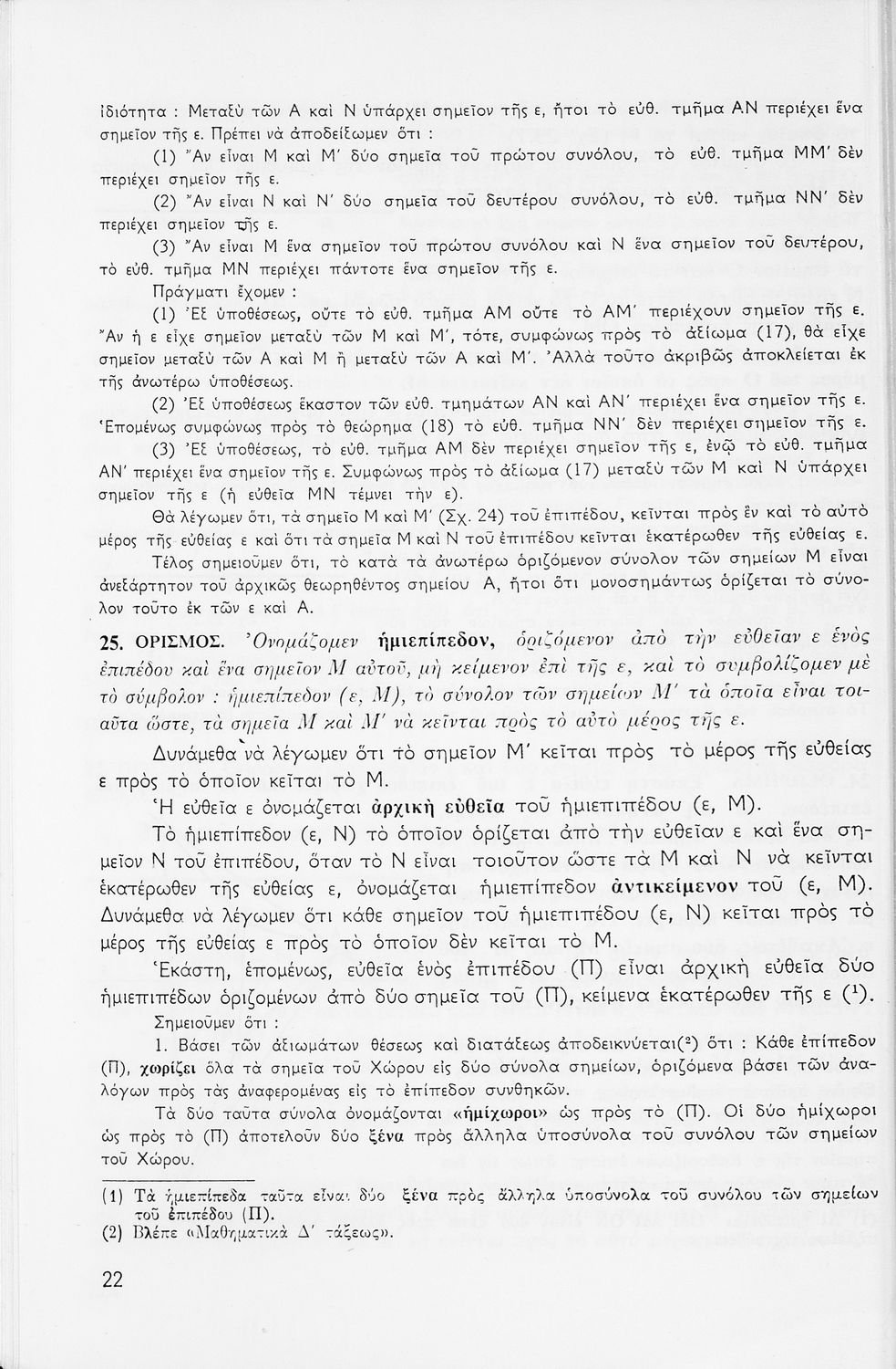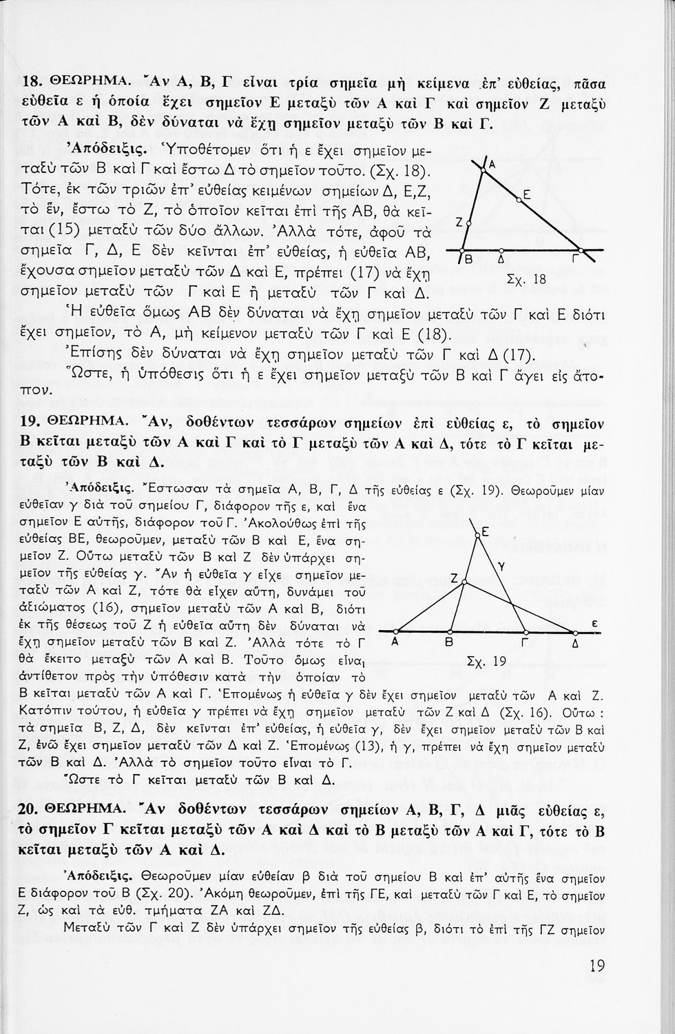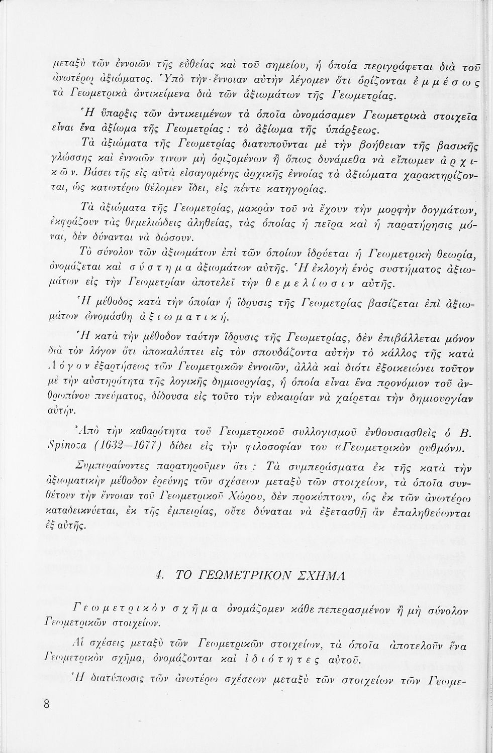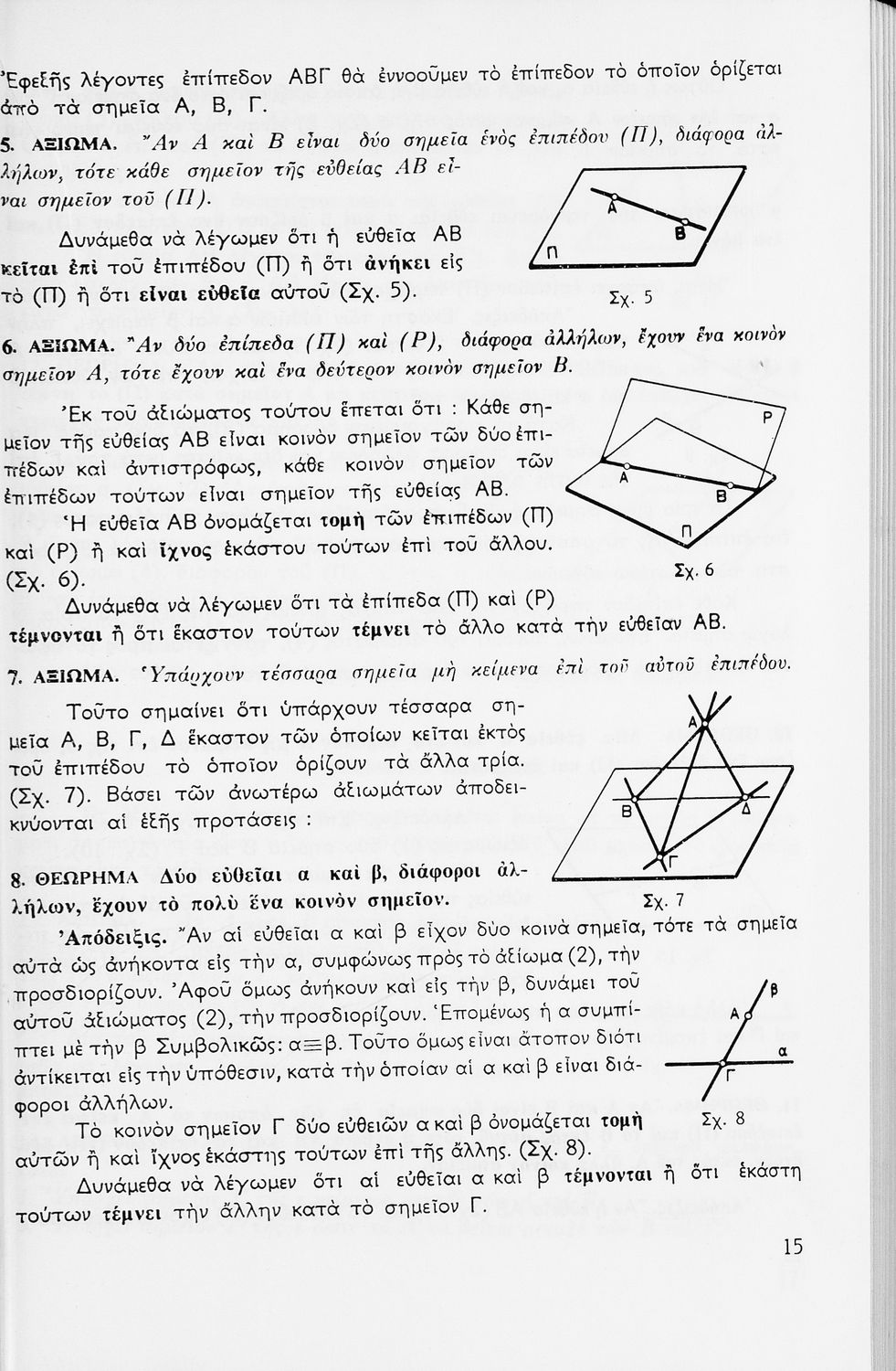 Βαθμίδα εκπαίδευσης: Δευτεροβάθμια Τάξη: Γ' Γυμνασίου Μάθημα: Μαθηματικά Γλώσσα: Απλή καθαρεύουσα Παρουσίαση περιεχομένου: Σχολικό εγχειρίδιο Μαθηματικών Γ΄ Γυμνασίου που εστιάζει στη Γεωμετρία. Φέρει το σύμβολο της δικτατορίας. Ο συγγραφέας ήταν επιμελητής στο ΕΜΠ. |