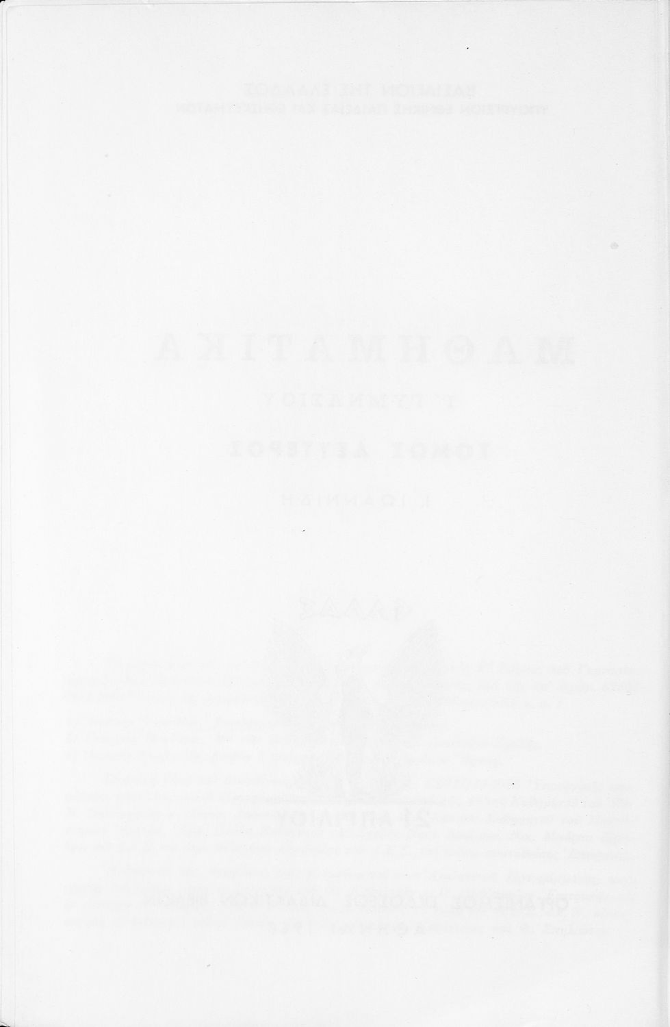 Κωδικός αναγνώρισης: 01-40532 Τίτλος: Μαθηματικά Γ΄ Γυμνασίου, τόμος Β Συγγραφέας: Ι. Ιωαννίδης Μέγεθος και υπόστρωμα: Σχολικό εγχειρίδιο, 23εκ., μαλακό εξώφυλλο, 211 σελίδες. Σκίτσα (ασπρόμαυρα). |