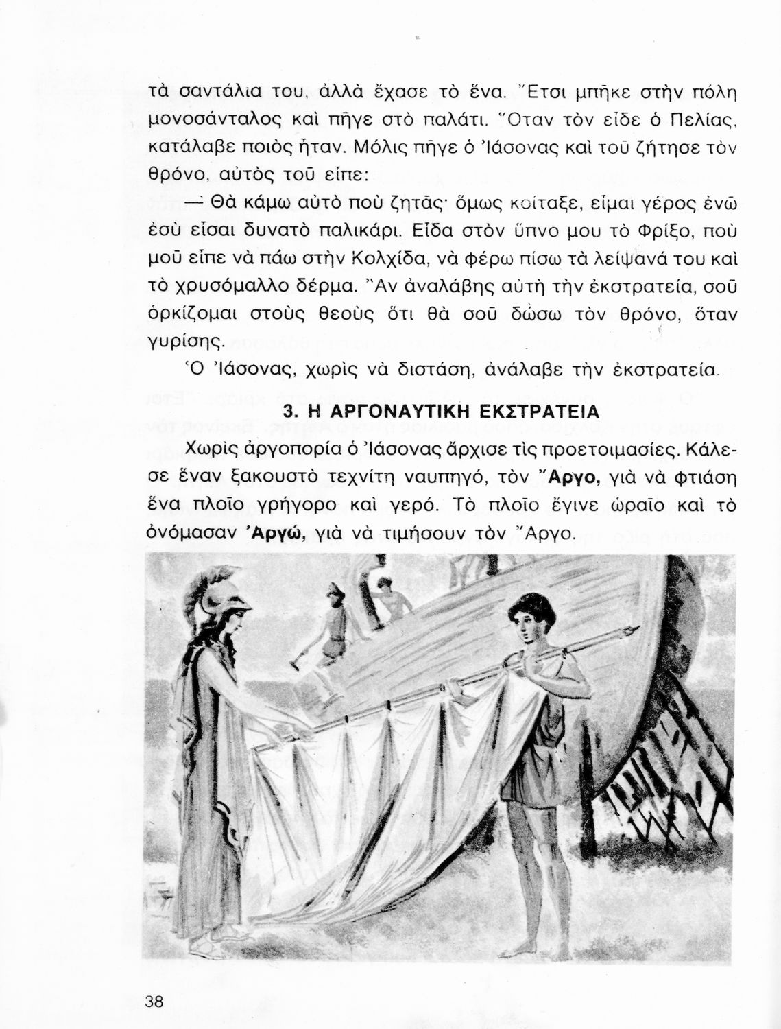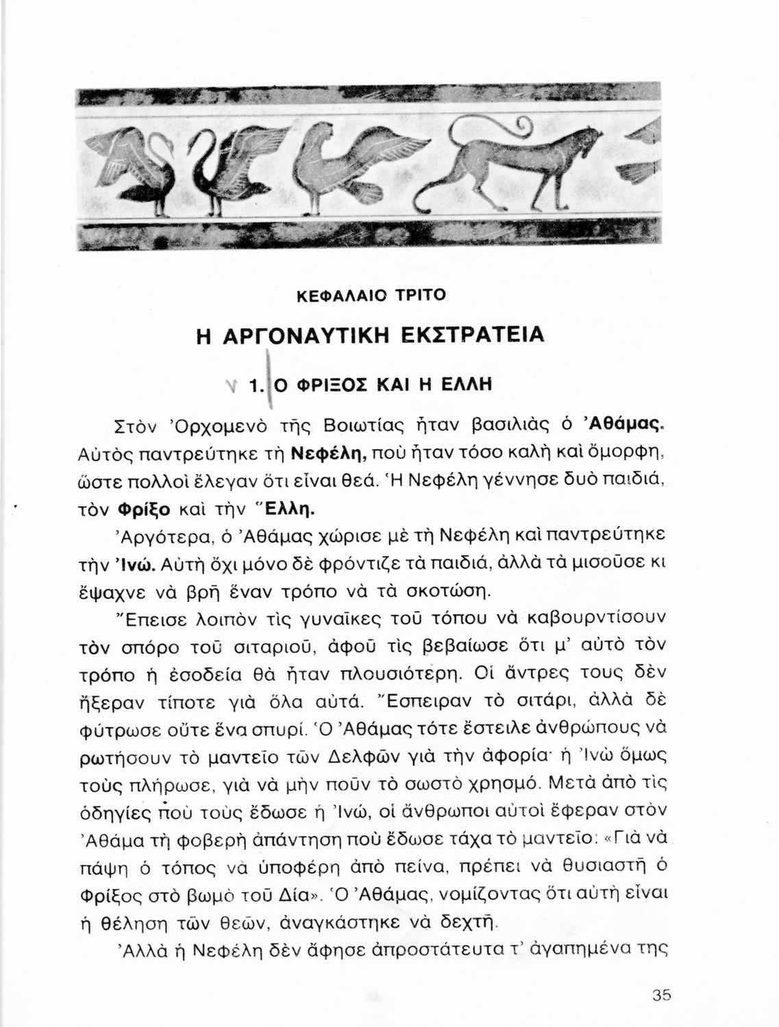 Σχολικό εγχειρίδιο Ιστορίας Γ' Δημοτικού που περιλαμβάνει θέματα από την ελληνική μυθολογία.