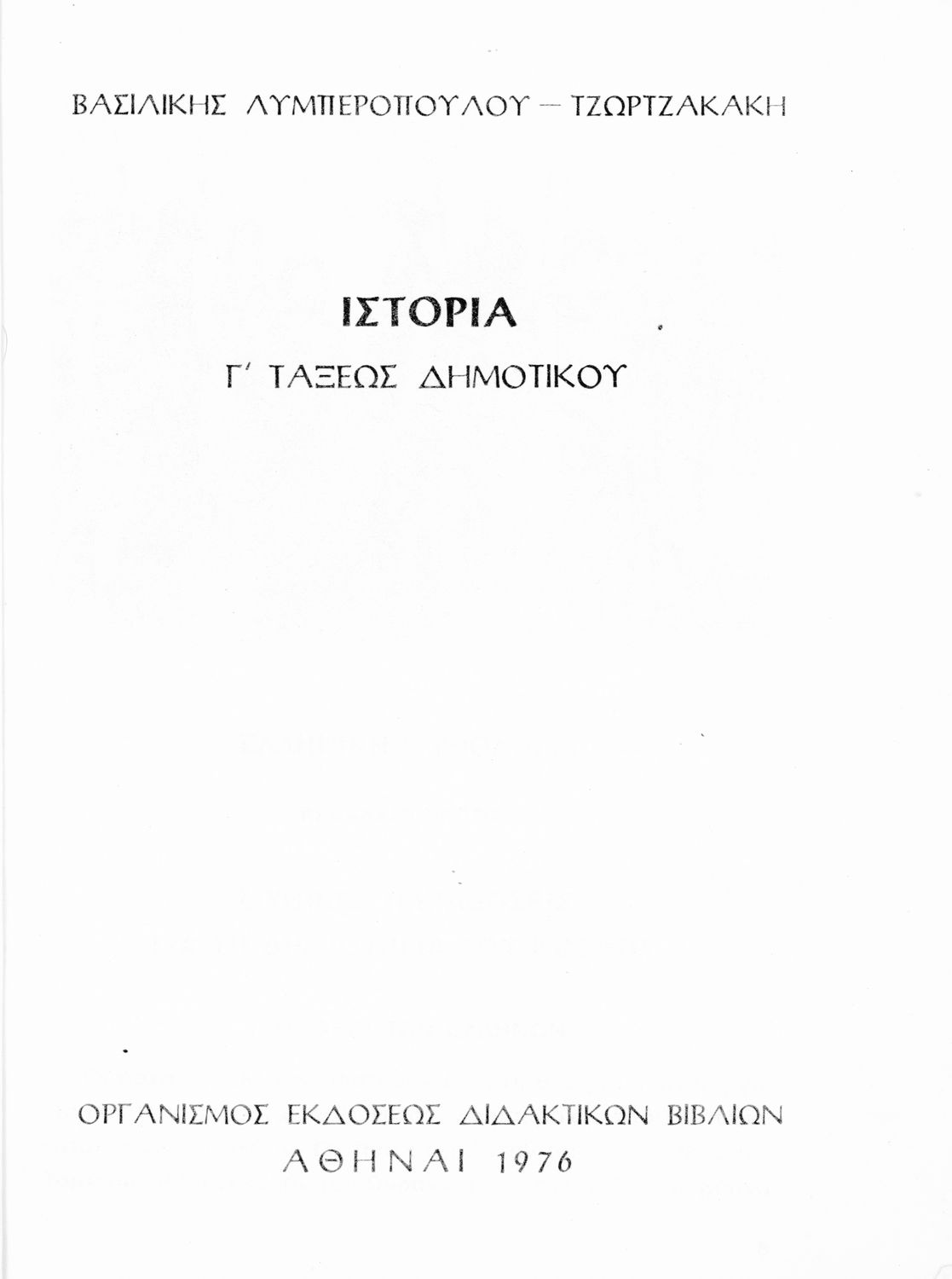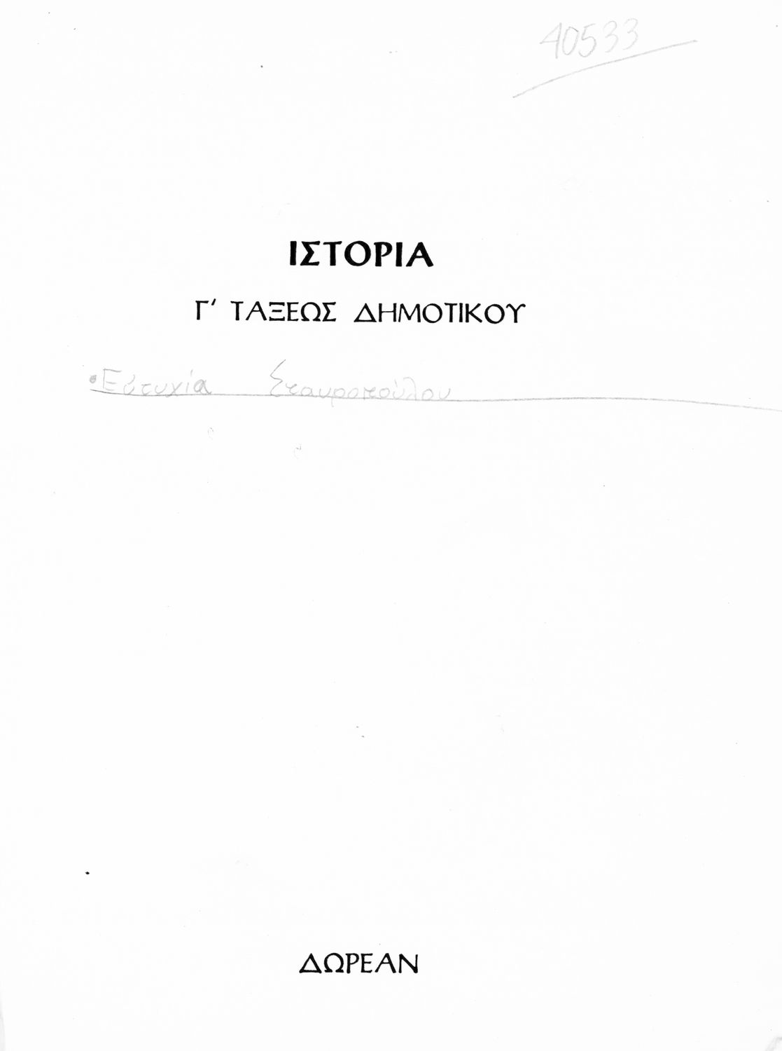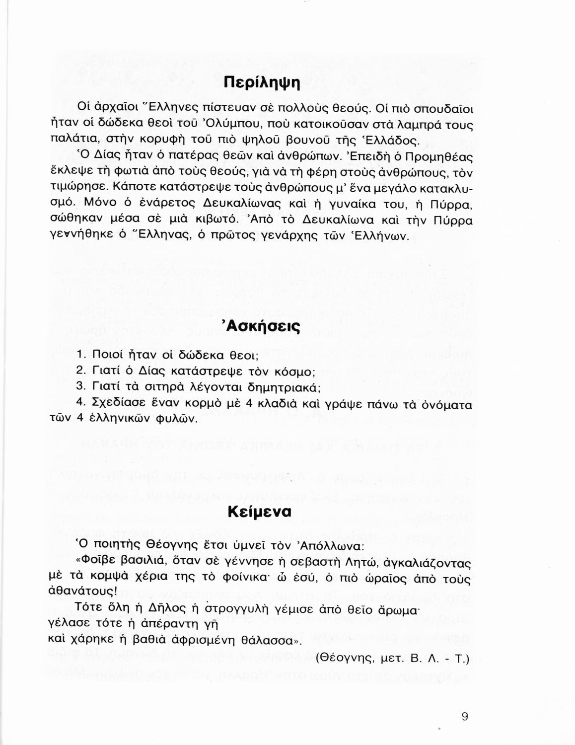 Βαθμίδα εκπαίδευσης: Πρωτοβάθμια Τάξη: Γ' Δημοτικού Μάθημα: Ιστορία Γλώσσα: Δημοτική Παρουσίαση περιεχομένου: Σχολικό εγχειρίδιο Ιστορίας Γ' Δημοτικού που περιλαμβάνει θέματα από την ελληνική μυθολογία. |
