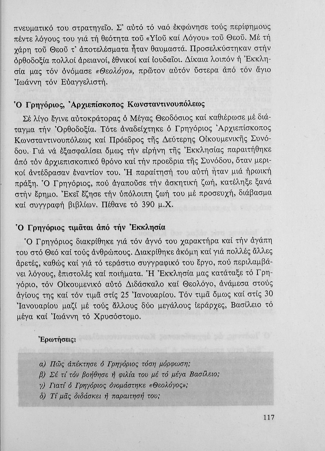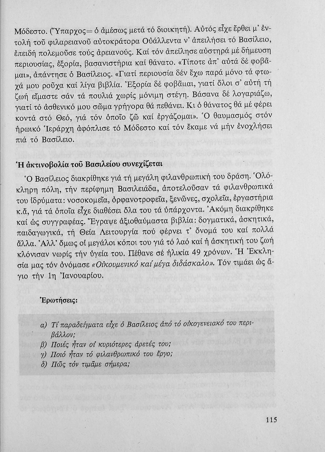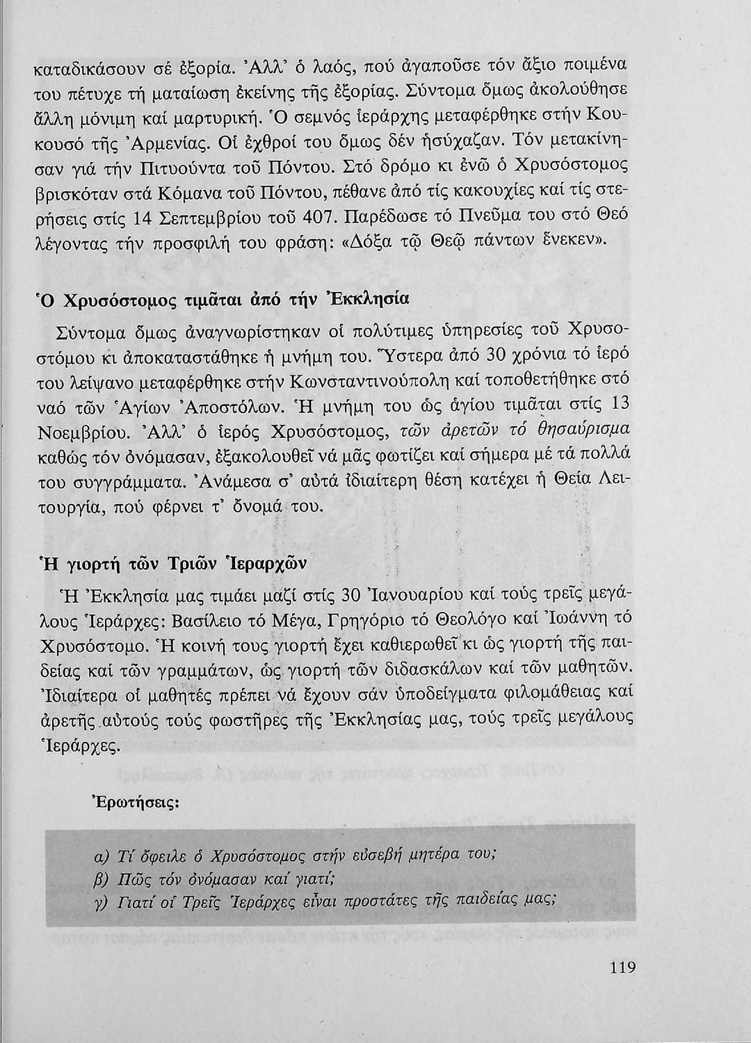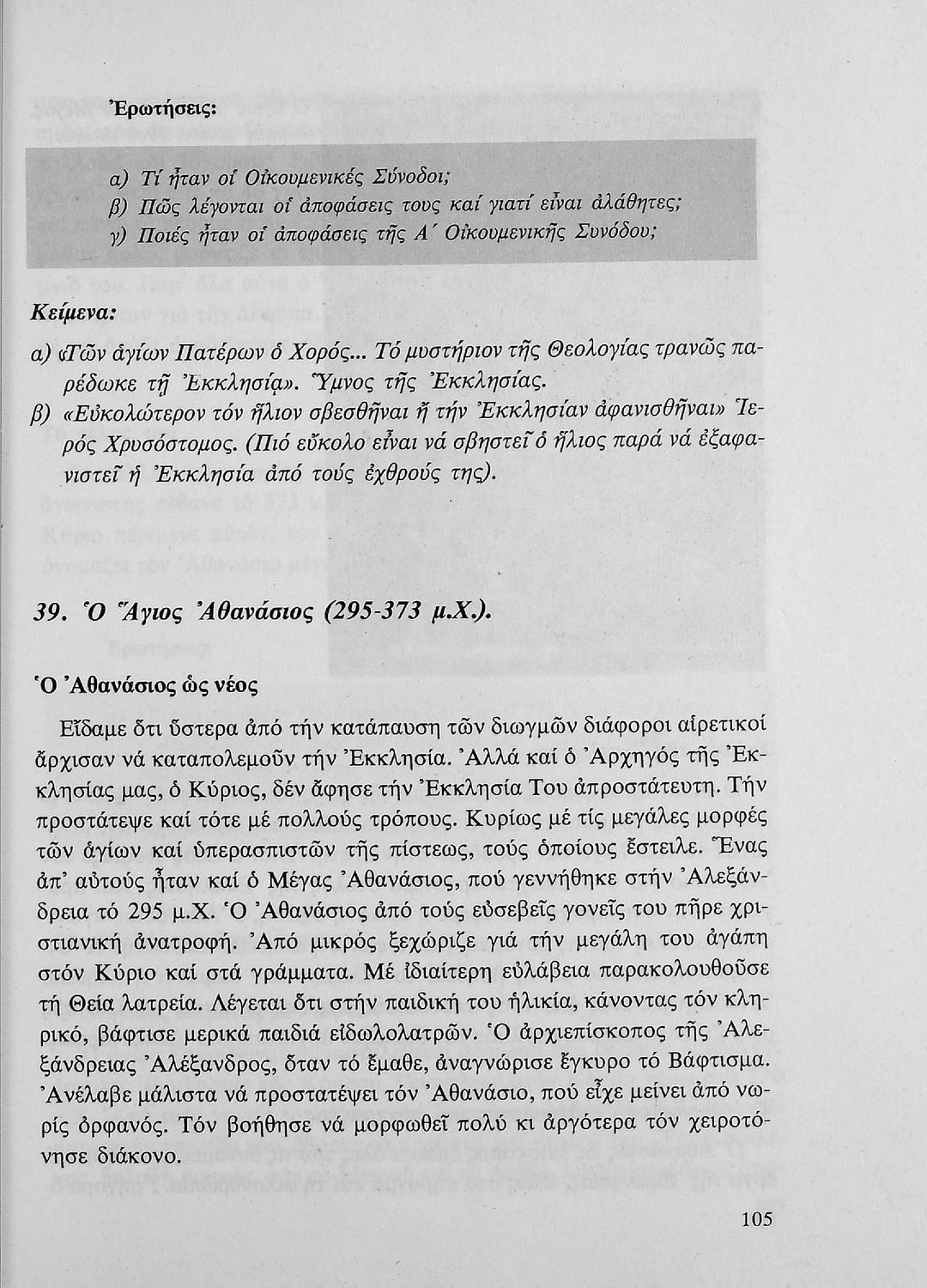 Βαθμίδα εκπαίδευσης: Πρωτοβάθμια Τάξη: Ε' Δημοτικού Μάθημα: Θρησκευτικά Γλώσσα: Δημοτική Παρουσίαση περιεχομένου: Σχολικό εγχειρίδιο Θρησκευτικών Ε΄ Δημοτικού που περιέχει την ιστορία της Ορθόδοξης Εκκλησίας από την ίδρυσή της μέχρι την δημιουργία της Εκκλησίας της Ελλάδας. |