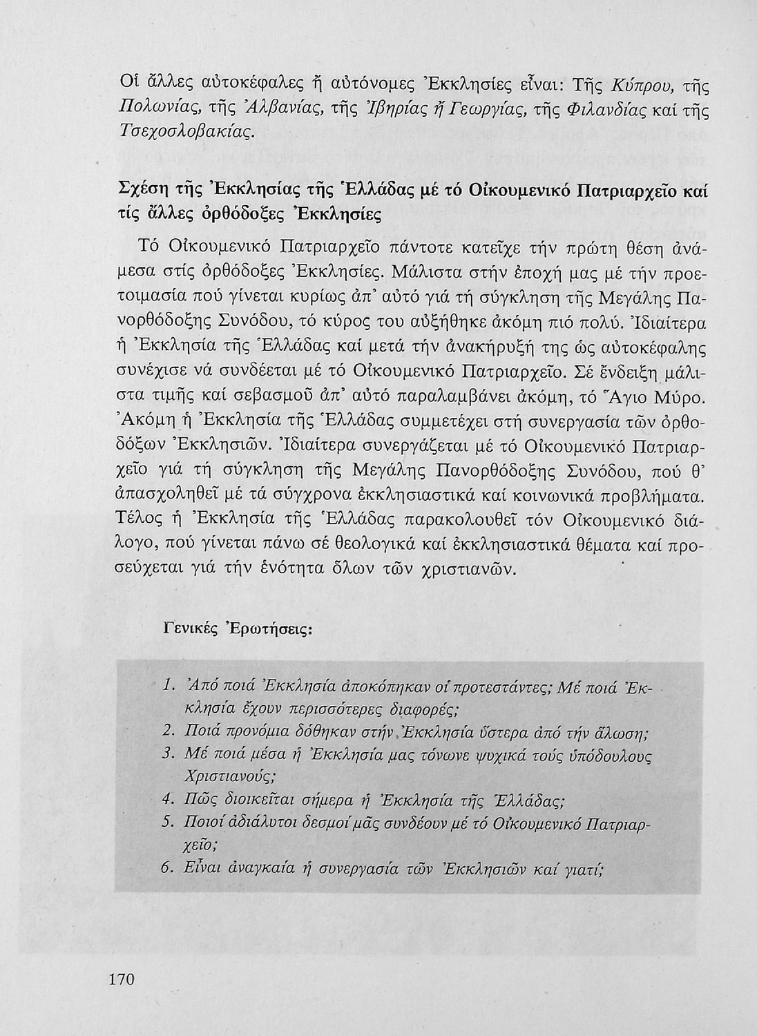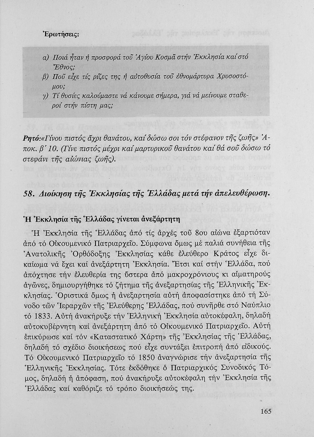 Σχολικό εγχειρίδιο Θρησκευτικών Ε΄ Δημοτικού που περιέχει την ιστορία της Ορθόδοξης Εκκλησίας από την ίδρυσή της μέχρι την δημιουργία της Εκκλησίας της Ελλάδας.
