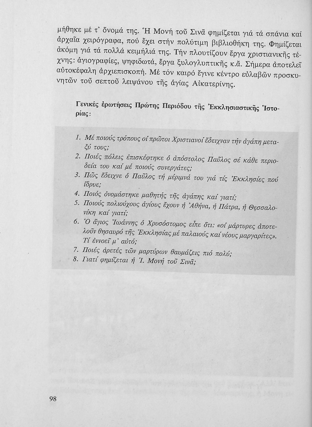 Σχολικό εγχειρίδιο Θρησκευτικών Ε΄ Δημοτικού που περιέχει την ιστορία της Ορθόδοξης Εκκλησίας από την ίδρυσή της μέχρι την δημιουργία της Εκκλησίας της Ελλάδας.