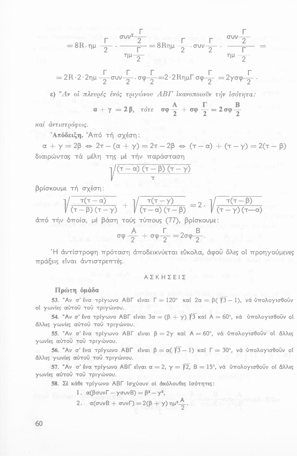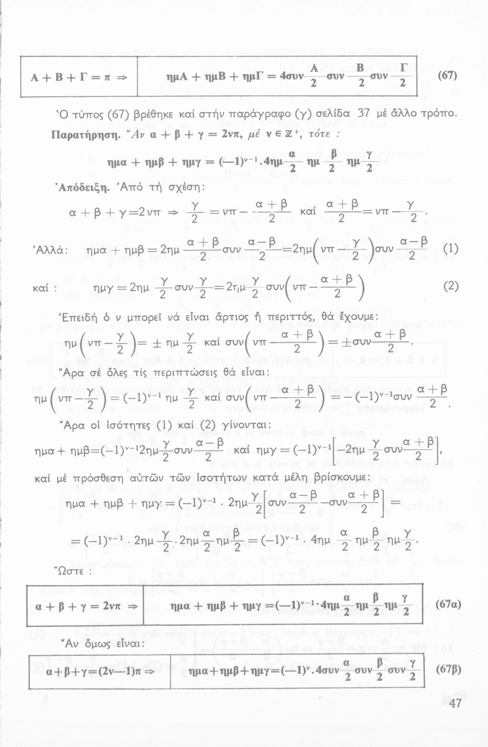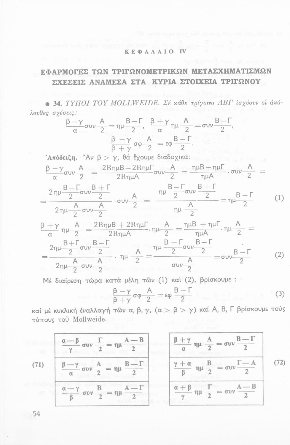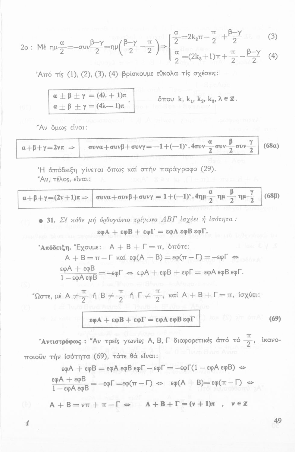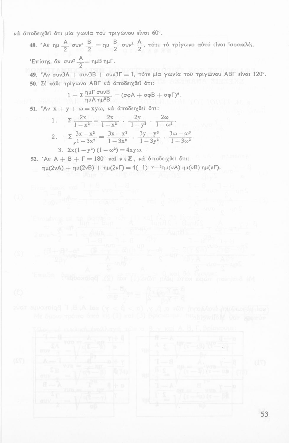 Σχολικό εγχειρίδιο Τριγωνομετρίας για την Β΄ Λυκείου χωρισμένο σε προβλήματα, εφαρμογές και ασκήσεις. Το εγχειρίδιο μεταγλωττίστηκε στη δημοτική από τους Βασίλειο Θεοδωρακόπουλο, Απόστολο Ζορμπά και τον συγγραφέα. Οι μαθητές της κλασσικής κατεύθυνσης δεν διδάσκονταν κάποια από τα κεφάλαια.
