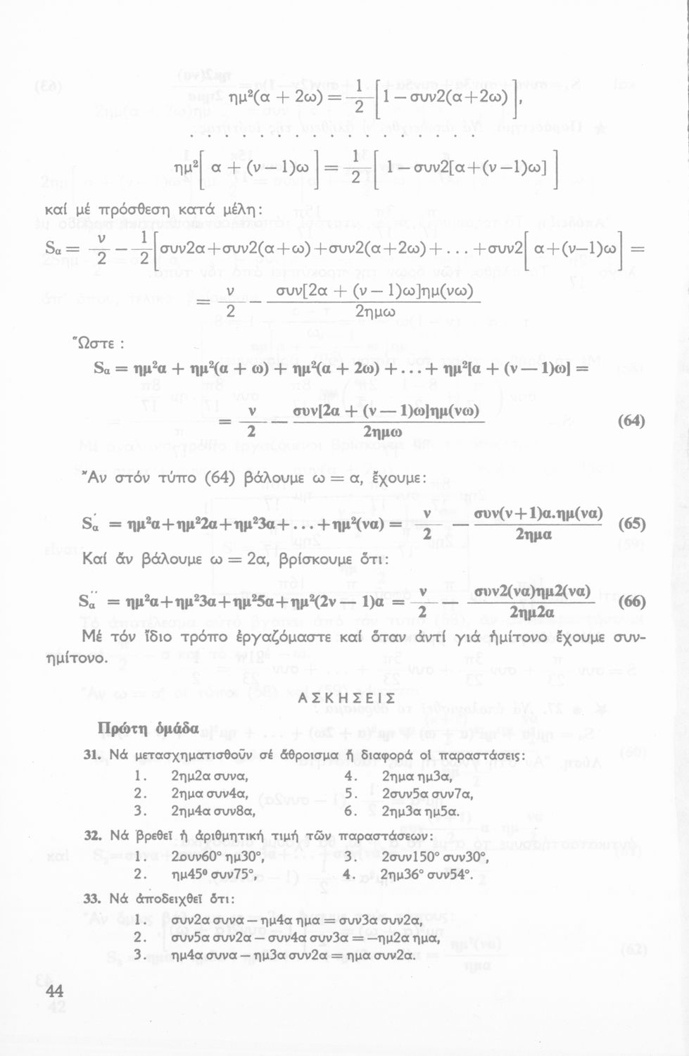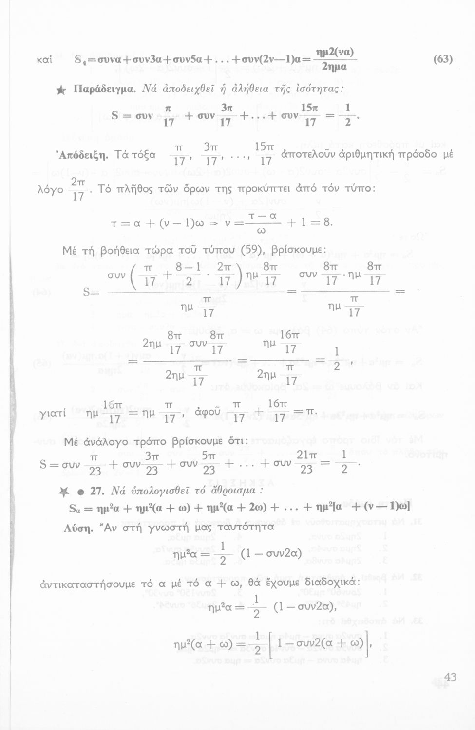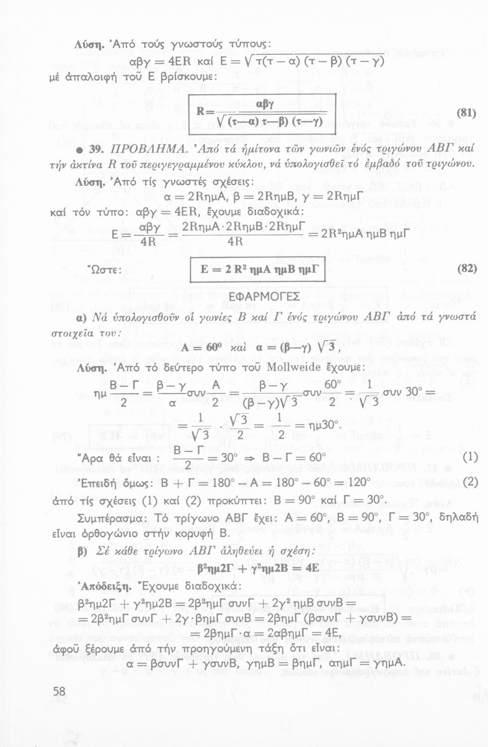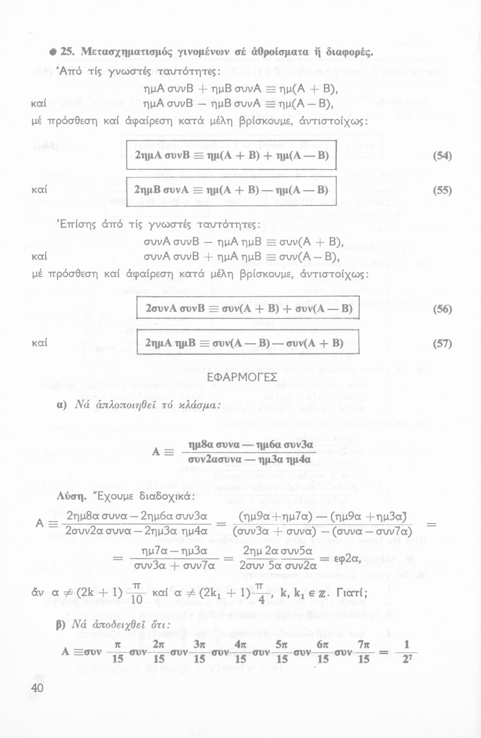 Σχολικό εγχειρίδιο Τριγωνομετρίας για την Β΄ Λυκείου χωρισμένο σε προβλήματα, εφαρμογές και ασκήσεις. Το εγχειρίδιο μεταγλωττίστηκε στη δημοτική από τους Βασίλειο Θεοδωρακόπουλο, Απόστολο Ζορμπά και τον συγγραφέα. Οι μαθητές της κλασσικής κατεύθυνσης δεν διδάσκονταν κάποια από τα κεφάλαια.
