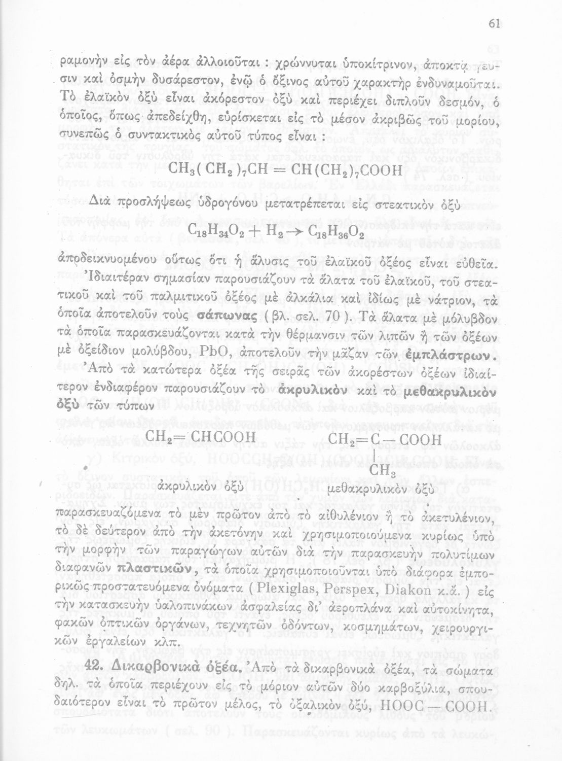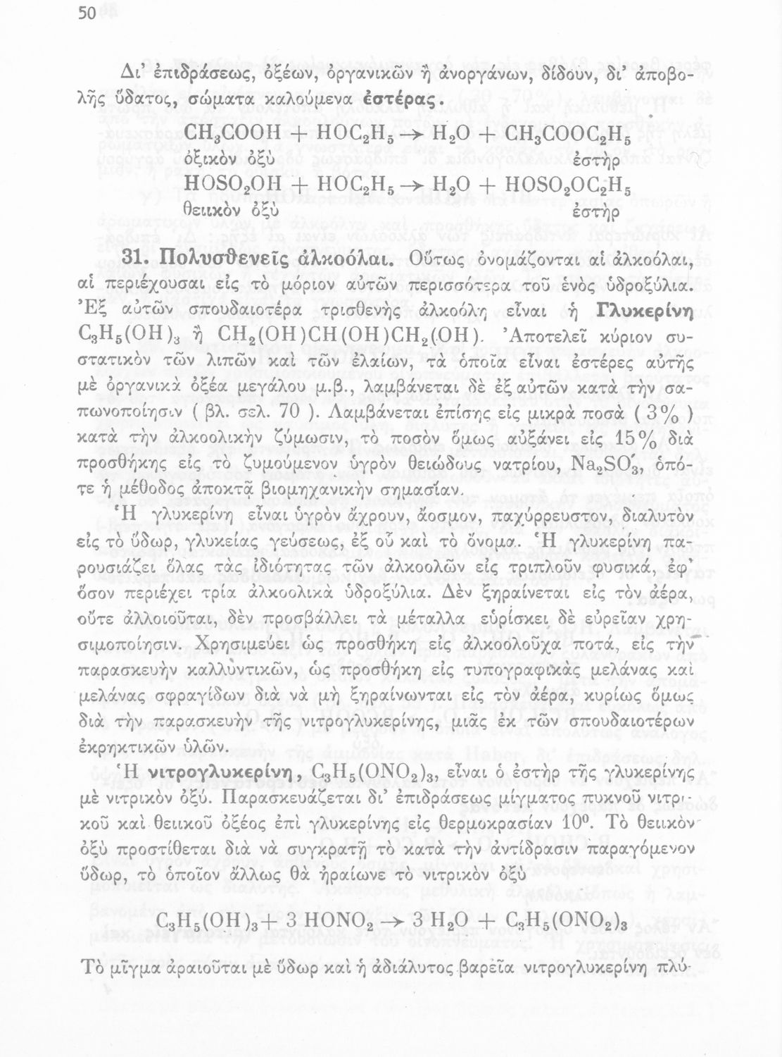 Βαθμίδα εκπαίδευσης: Δευτεροβάθμια Τάξη: Γ' Λυκείου Μάθημα: Χημεία Γλώσσα: Καθαρεύουσα Παρουσίαση περιεχομένου: Σχολικό εγχειρίδιο Χημείας που προσδιορίζει βασικές έννοιες οργανικής χημείας (οργανικές ενώσεις, χημική ανάλυση, ονοματολογία και συμβολισμοί). Στο βιβλίο γίνεται αναλυτική περιγραφή των ιδιοτήτων και των ενώσεων αμετάλλων, οξέων, αρωματικών υδρογονανθράκων. |