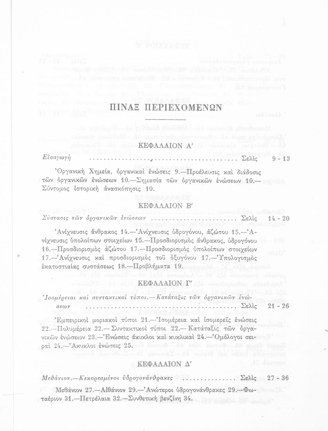 Το βιβλίο προσδιορίζει βασικές έννοιες οργανικής χημείας (οργανικές ενώσεις, χημική ανάλυση, ονοματολογία και συμβολισμοί) καθώς γίνεται αναλυτική περιγραφή των ιδιοτήτων και των ενώσεων αμετάλλων, οξέων, ...