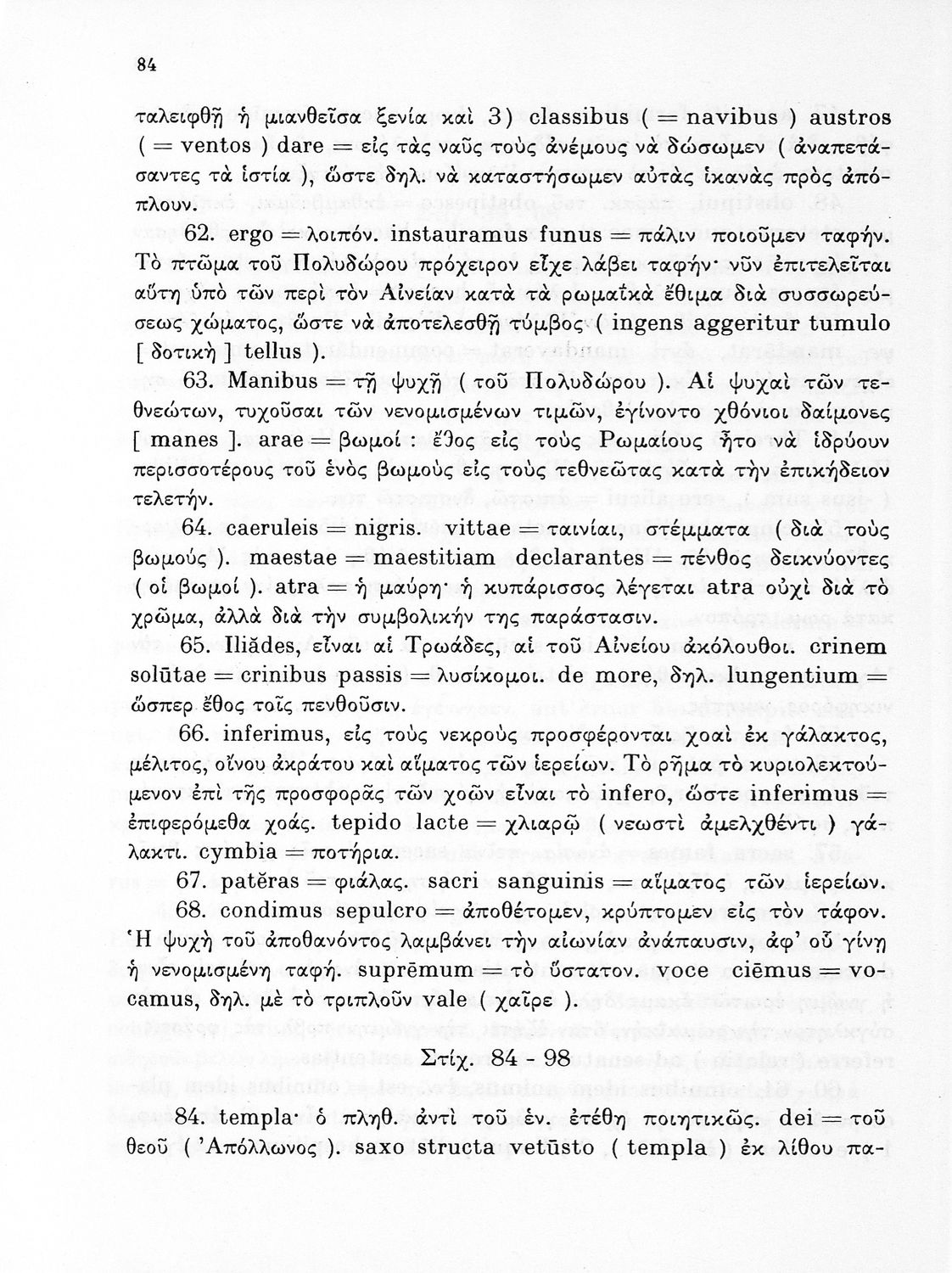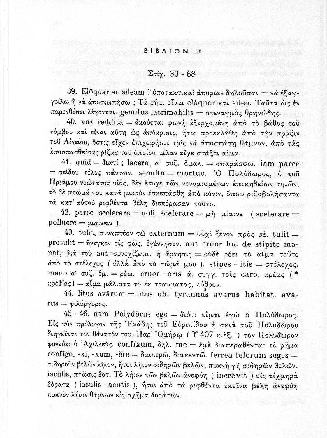 Πόπλιος Βιργίλιος Μάρων (P. Vergilius Maro), Μάρκος Τύλλιος Κικέρωνας (Marcus Tullius Ciceco), Κουίντος Οράτιος Φλάκκος (Q. Horati Flacci), Φωκίωνας Β. Βουσβούνης, Ερρίκος Σκάσσης, Ζαφείριος Ν. Φραγκίσκος (σχόλια)