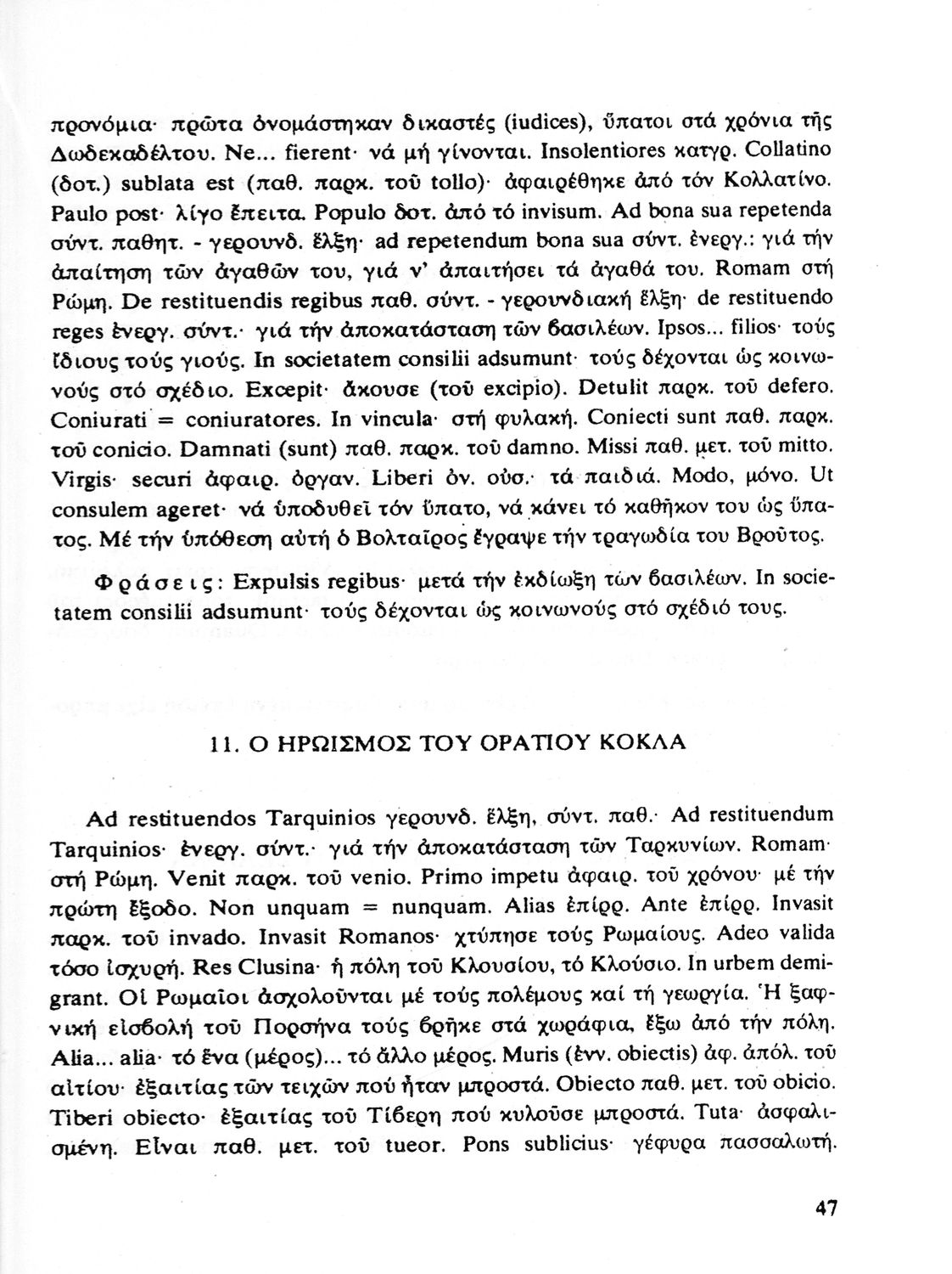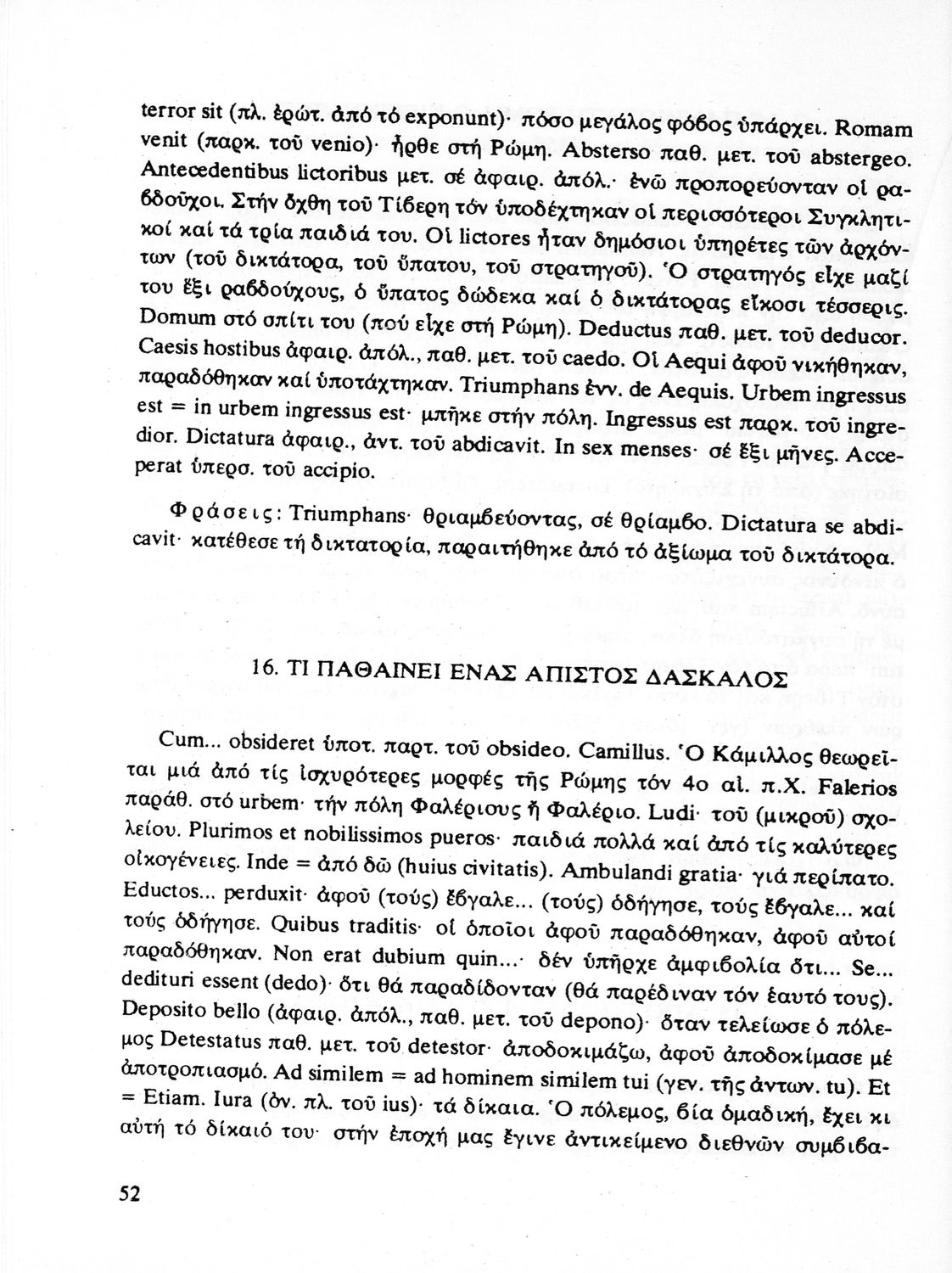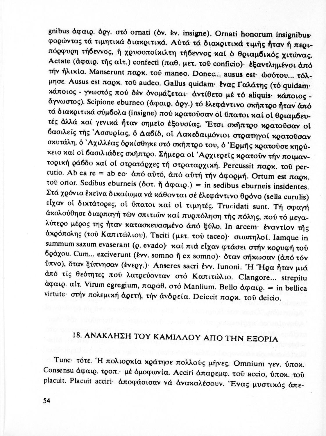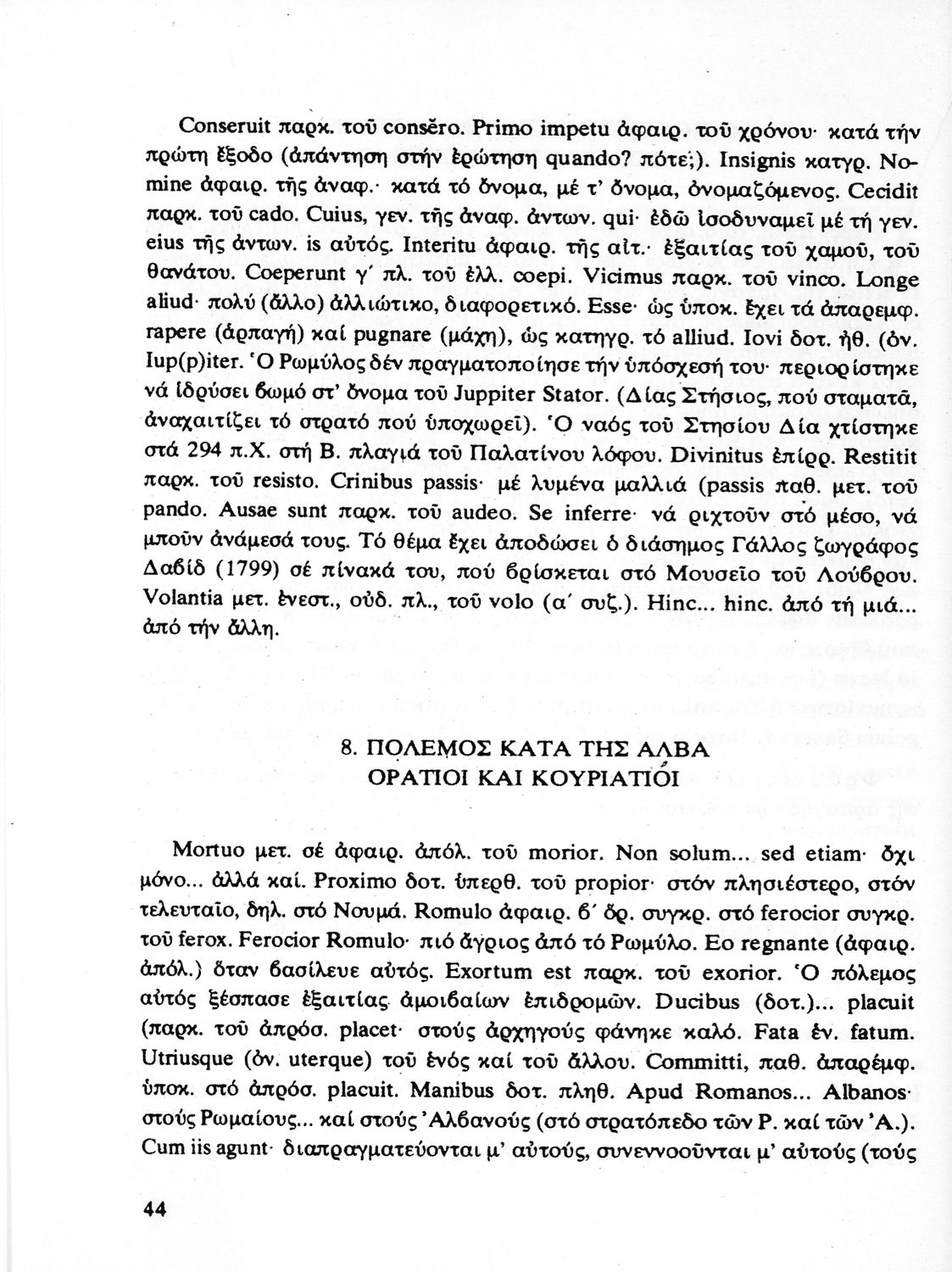 Αναγνωστικό Λατινικών για τη Γ΄ Γυμνασίου που περιέχει 54 κείμενα/περικοπές στα λατινικά, ερμηνευτικά υπομνήματα, λεξιλόγιο και κατάλογο με τα συντακτικά φαινόμενα (αφαιρετική, προθέσεις, σύνδεσμοι) που ...