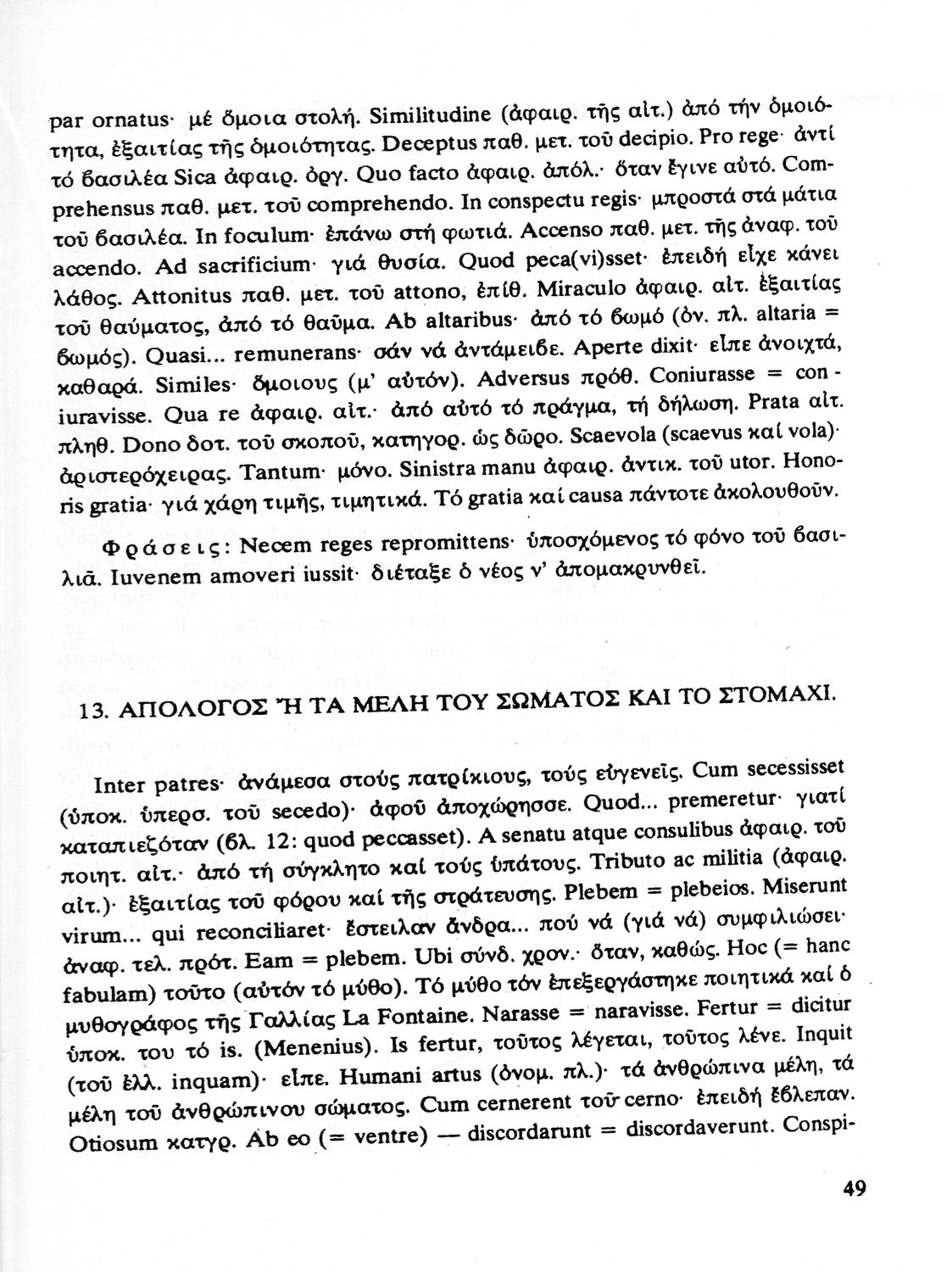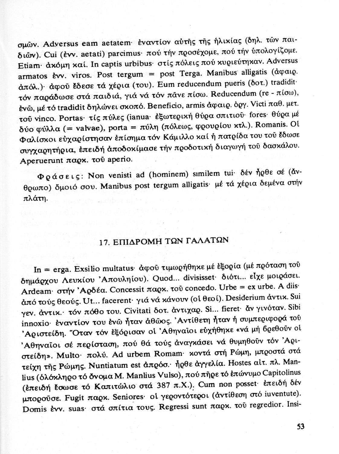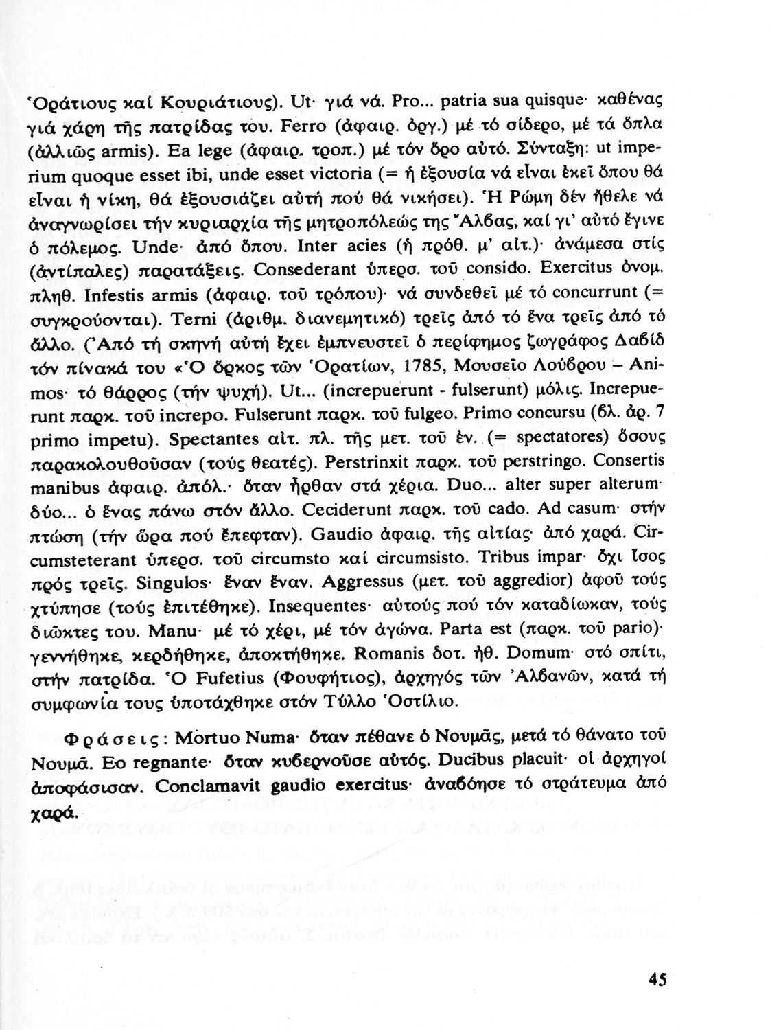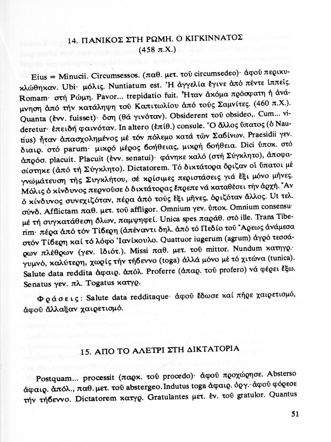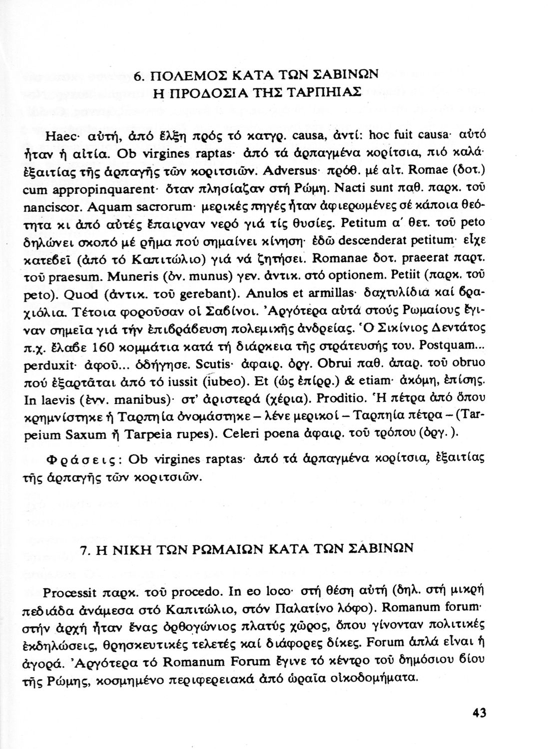 Αναγνωστικό Λατινικών για τη Γ΄ Γυμνασίου που περιέχει 54 κείμενα/περικοπές στα λατινικά, ερμηνευτικά υπομνήματα, λεξιλόγιο και κατάλογο με τα συντακτικά φαινόμενα (αφαιρετική, προθέσεις, σύνδεσμοι) που ...