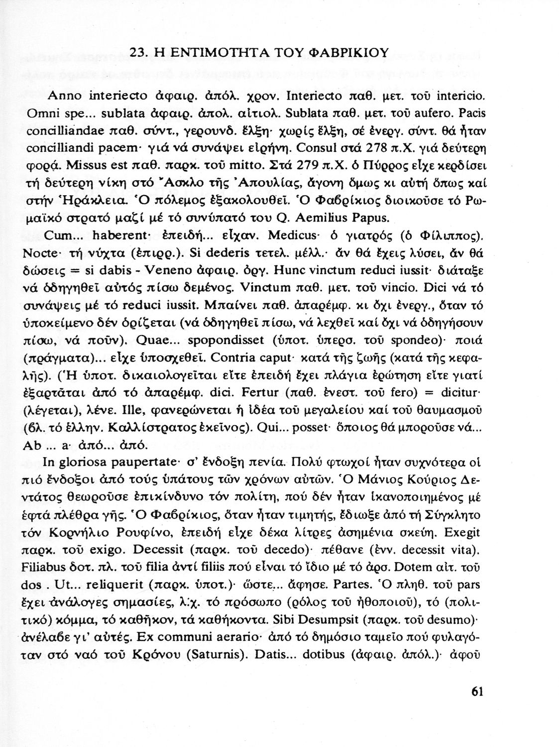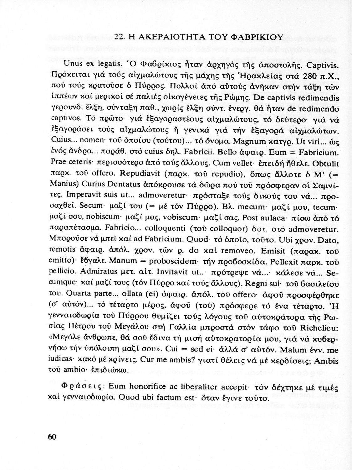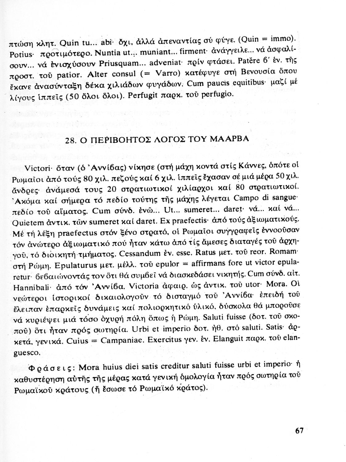 Αναγνωστικό Λατινικών για τη Γ΄ Γυμνασίου που περιέχει 54 κείμενα/περικοπές στα λατινικά, ερμηνευτικά υπομνήματα, λεξιλόγιο και κατάλογο με τα συντακτικά φαινόμενα (αφαιρετική, προθέσεις, σύνδεσμοι) που ...
