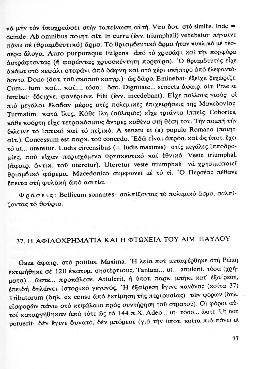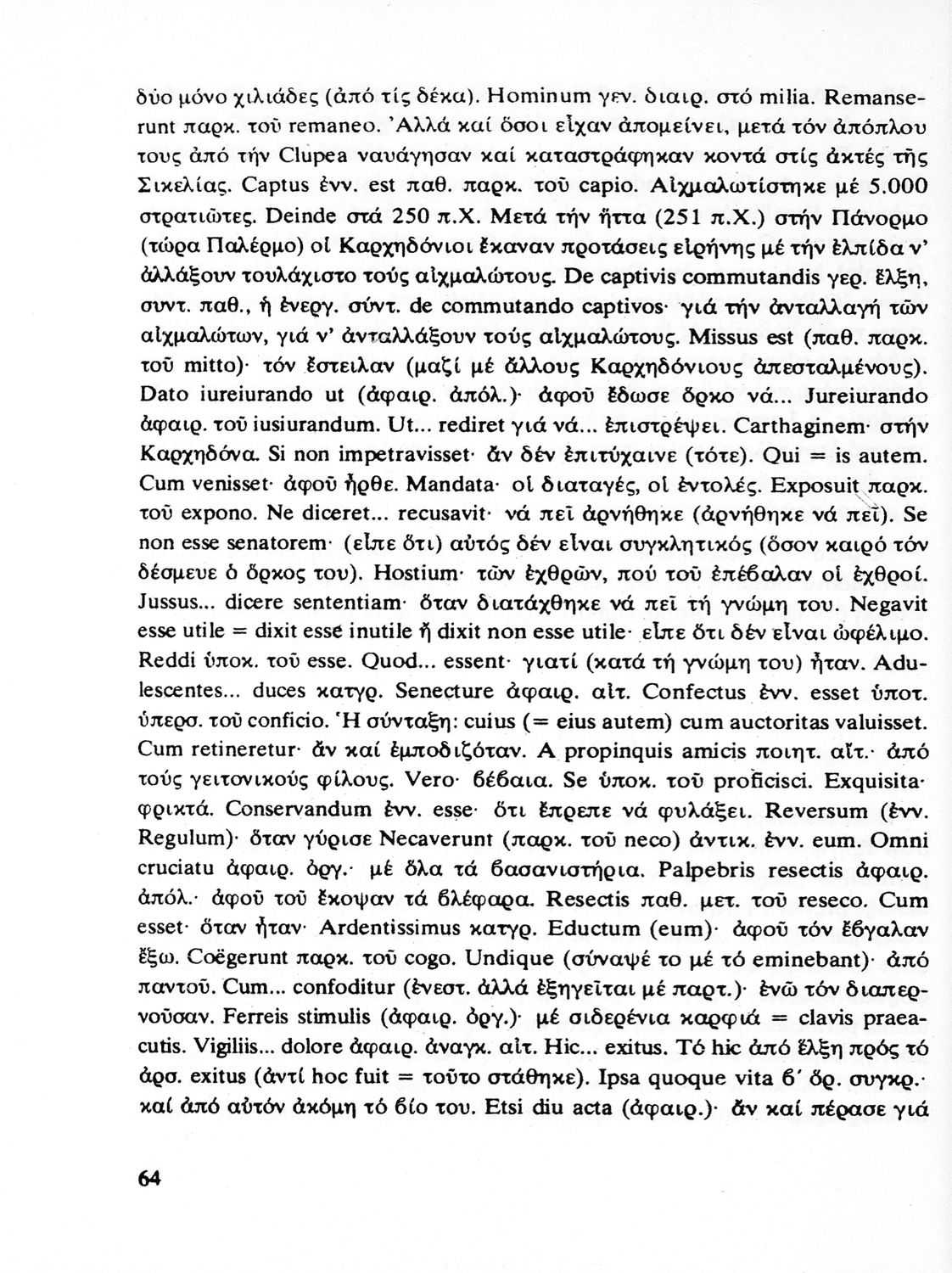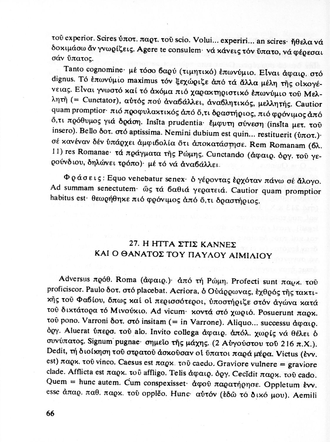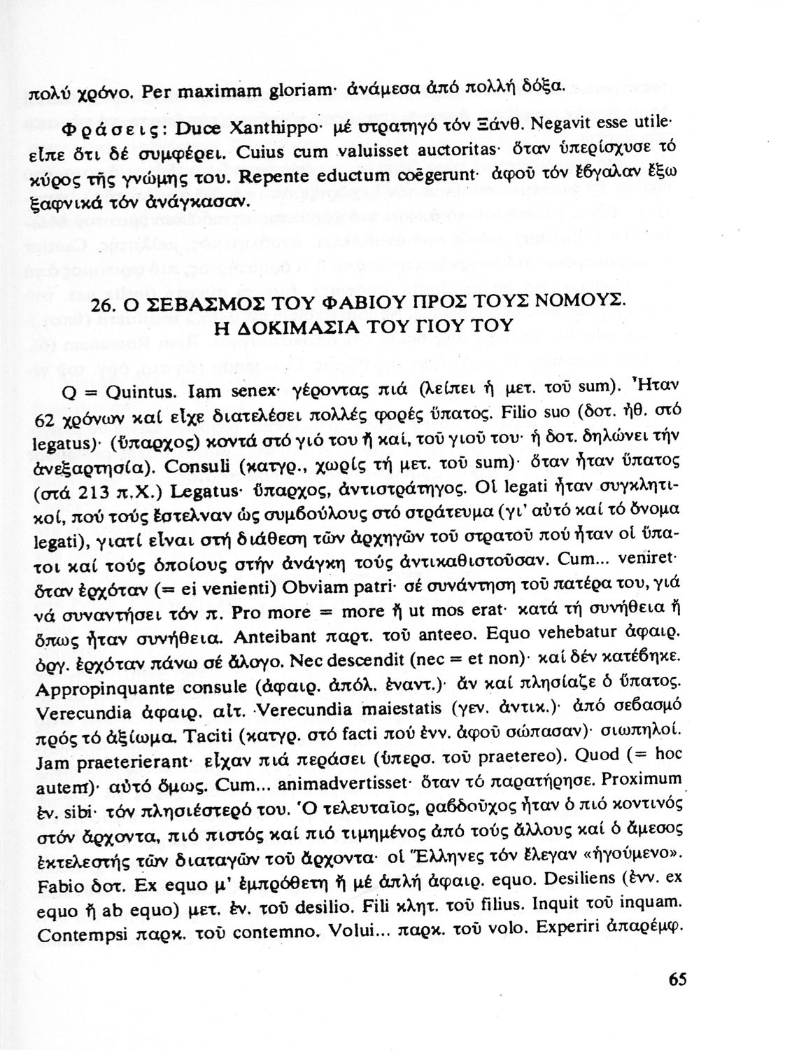 Αναγνωστικό Λατινικών για τη Γ΄ Γυμνασίου που περιέχει 54 κείμενα/περικοπές στα λατινικά, ερμηνευτικά υπομνήματα, λεξιλόγιο και κατάλογο με τα συντακτικά φαινόμενα (αφαιρετική, προθέσεις, σύνδεσμοι) που ...