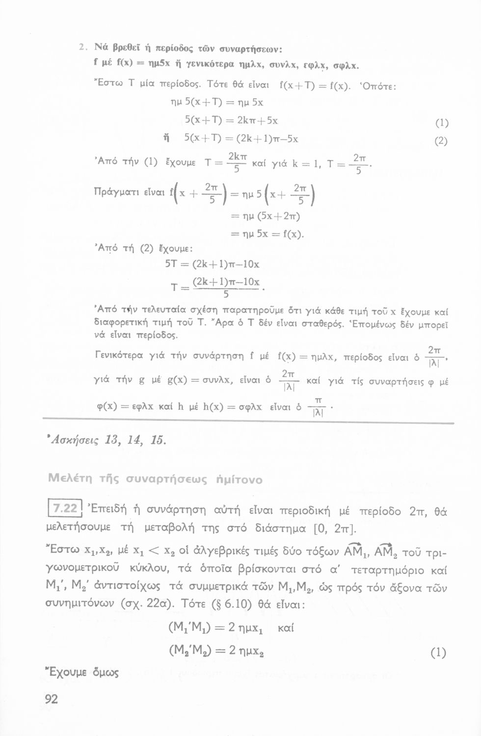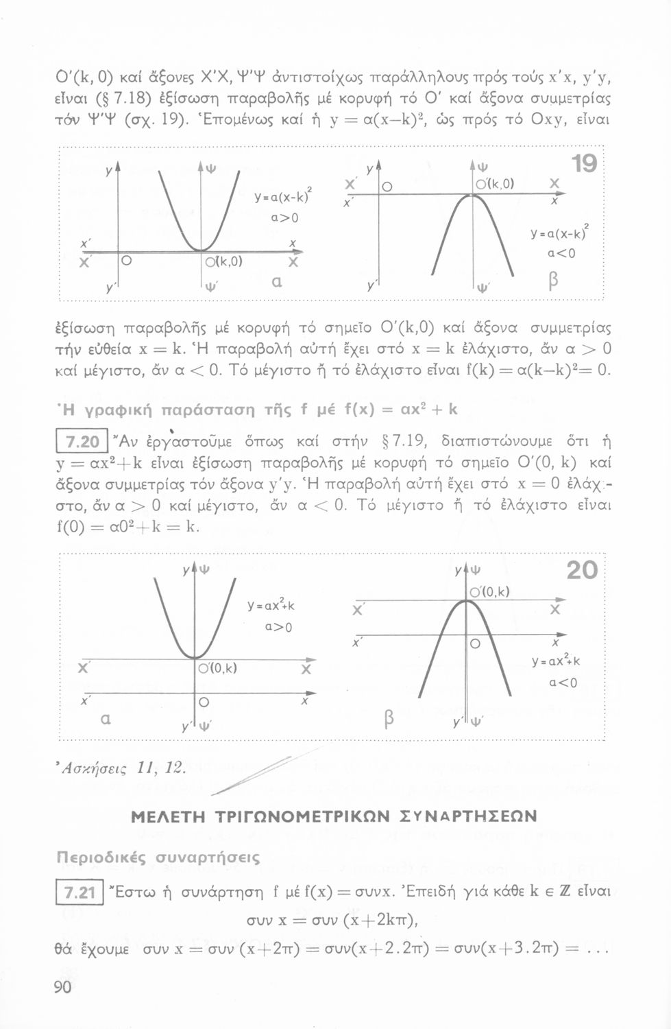 Σχολικό εγχειρίδιο Μαθηματικών Β΄ Λυκείου χωρισμένο σε θεωρία, παρατηρήσεις, παραδείγματα και ασκήσεις.