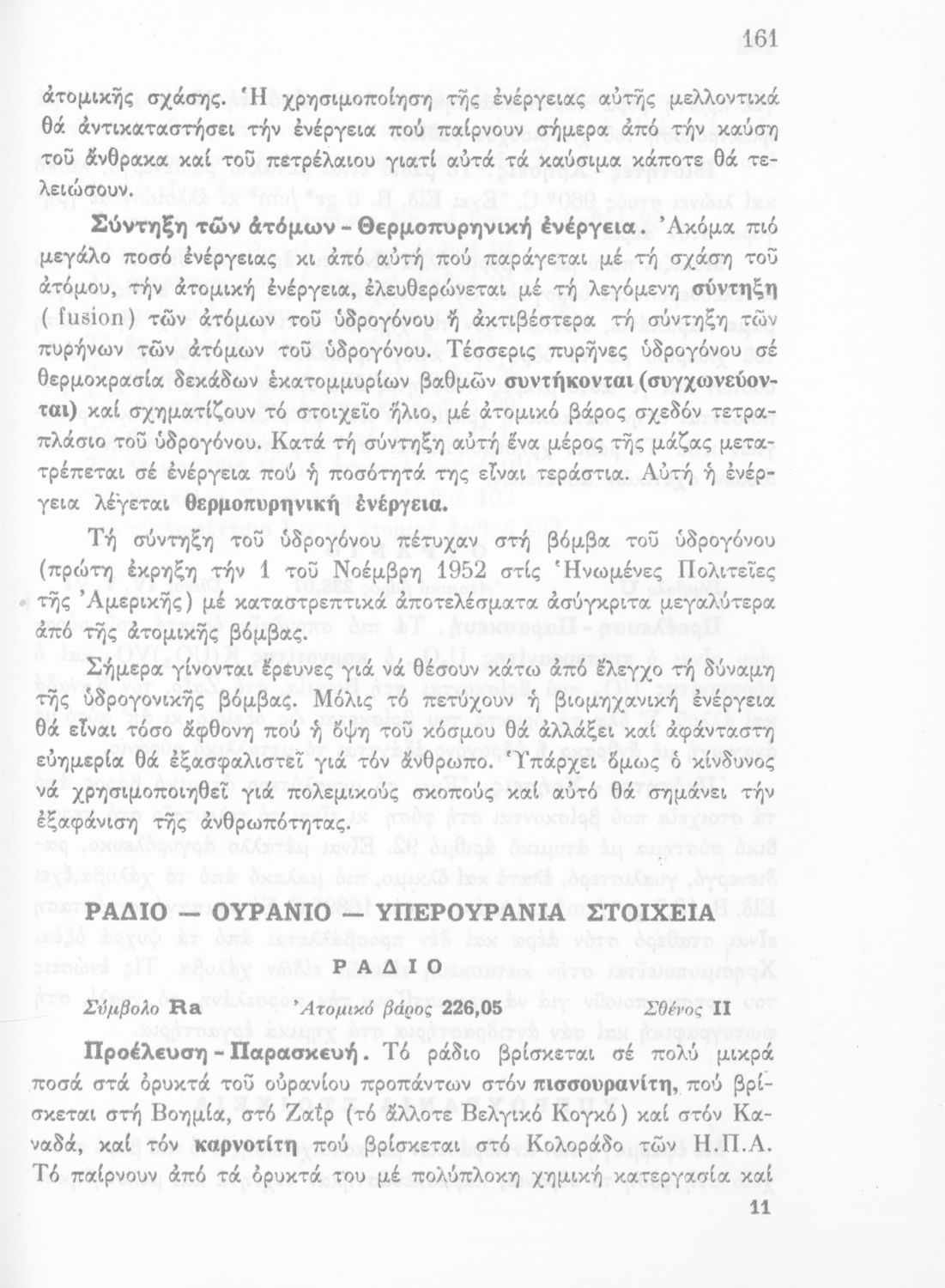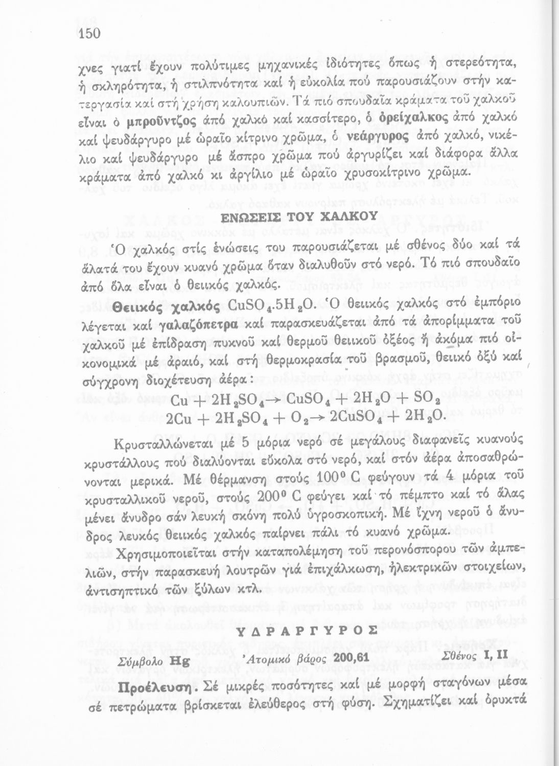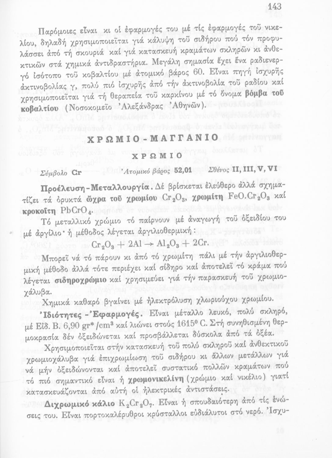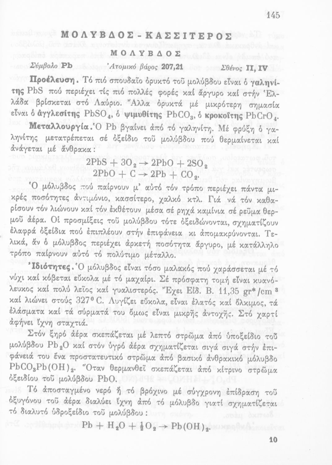 Σχολικό εγχειρίδιο Χημείας που απευθύνεται σε μαθητές Γυμνασίου με σκοπό τη περιγραφή εισαγωγικών εννοιών χημείας (ύλη, νόμοι χημείας, χημικές αντιδράσεις-εξισώσεις-ενώσεις). Στο βιβλίο γίνεται αναλυτική περιγραφή στοιχείων μετάλλων και αμέταλλων περιγράφοντας τις ιδιότητες και τις ενώσεις τους. Τέλος προσδιορίζεται η ακτινοβολία ραδιενεργών σωμάτων.
