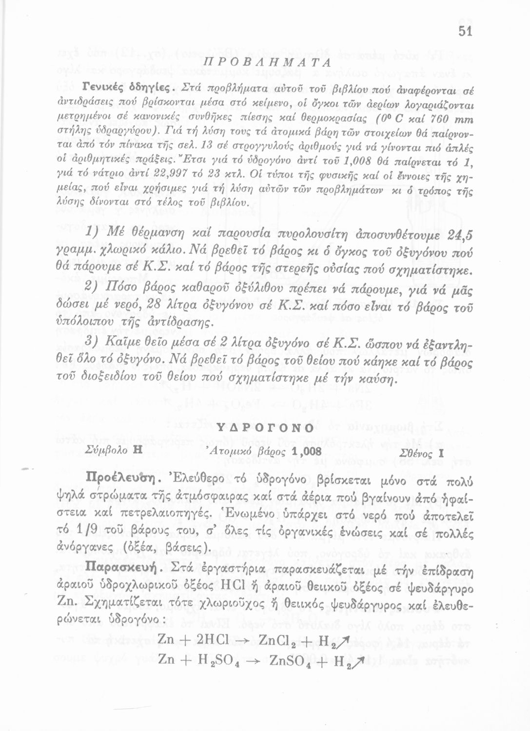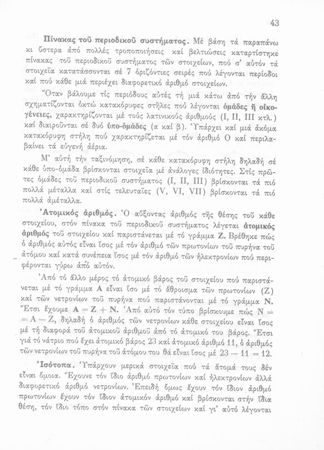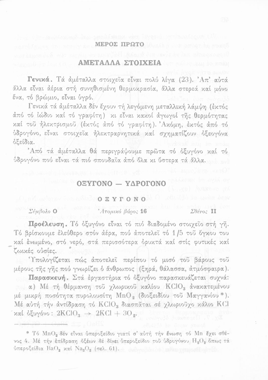 Σχολικό εγχειρίδιο Χημείας που απευθύνεται σε μαθητές Γυμνασίου με σκοπό τη περιγραφή εισαγωγικών εννοιών χημείας (ύλη, νόμοι χημείας, χημικές αντιδράσεις-εξισώσεις-ενώσεις). Στο βιβλίο γίνεται αναλυτική περιγραφή στοιχείων μετάλλων και αμέταλλων περιγράφοντας τις ιδιότητες και τις ενώσεις τους. Τέλος προσδιορίζεται η ακτινοβολία ραδιενεργών σωμάτων.