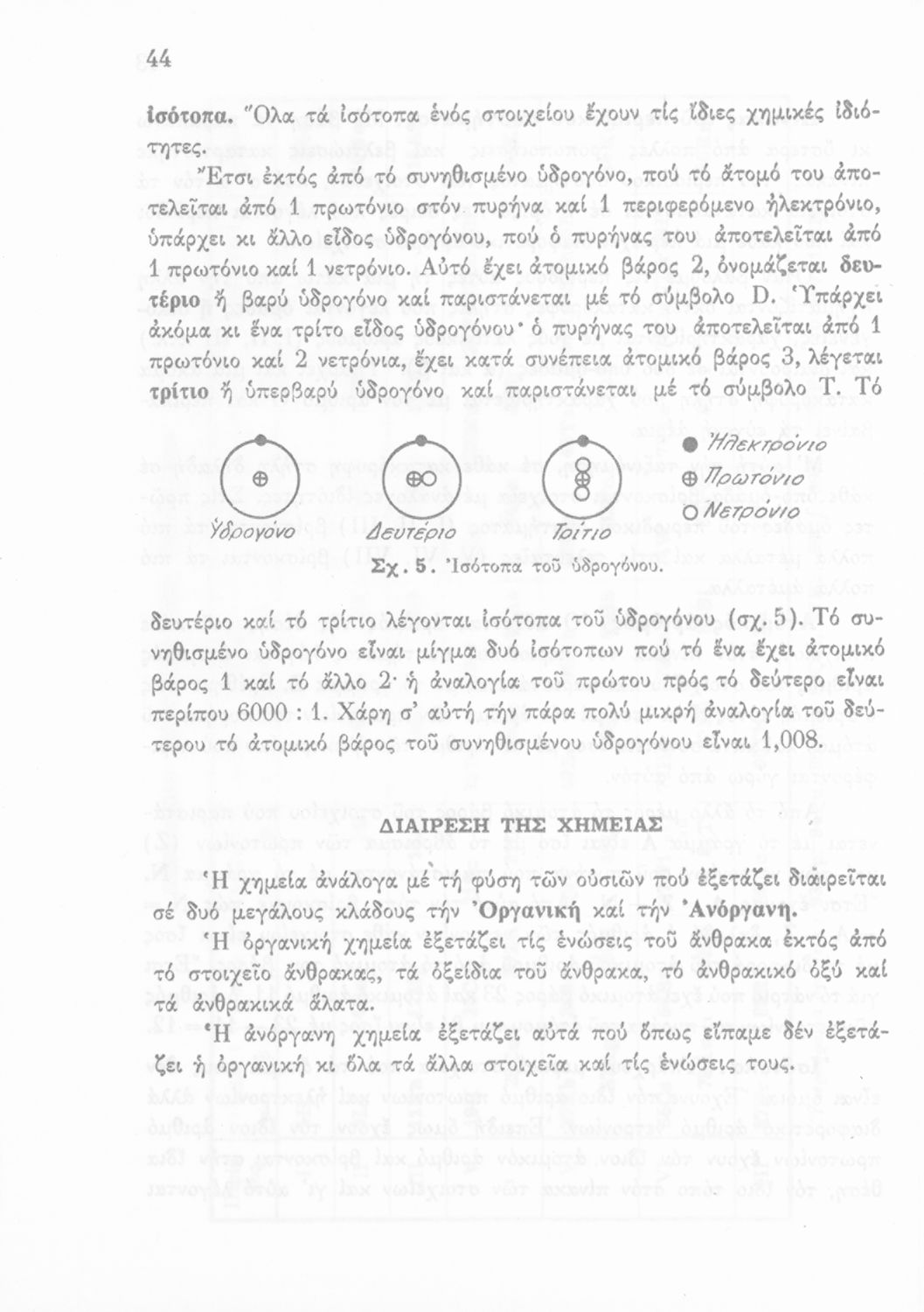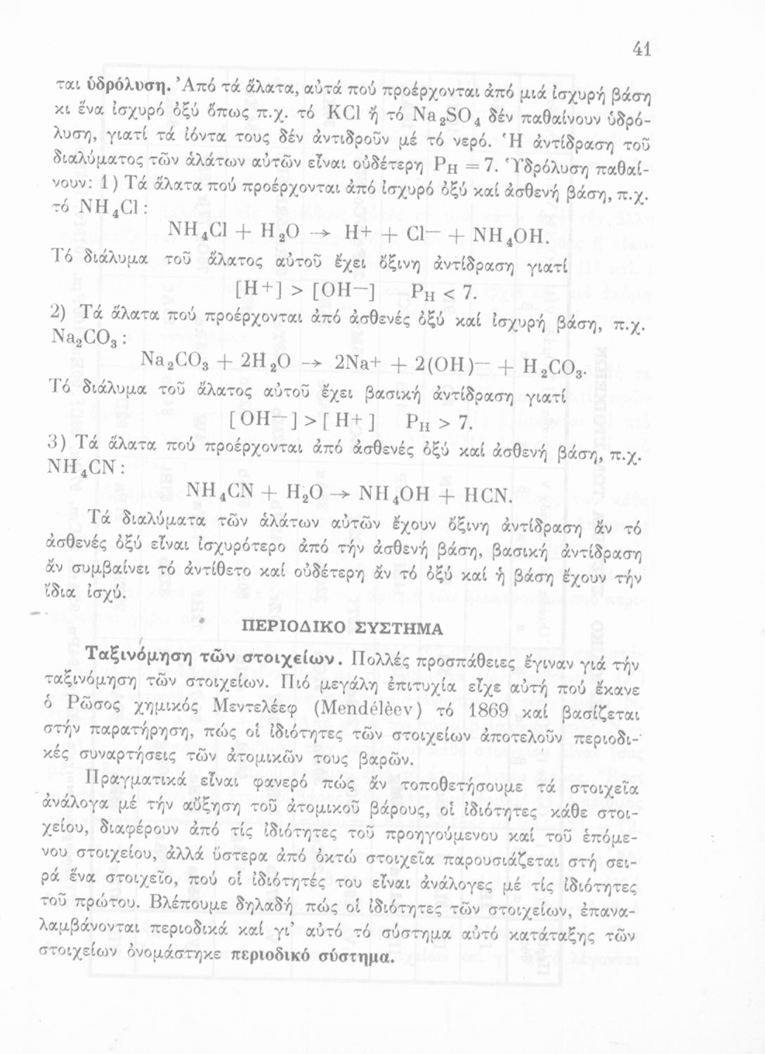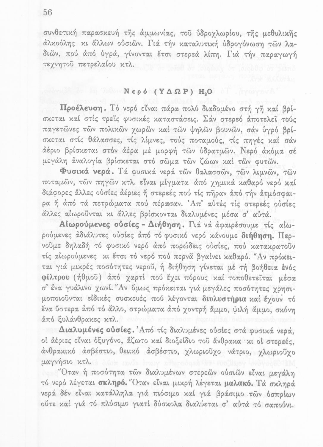 Σχολικό εγχειρίδιο Χημείας που απευθύνεται σε μαθητές Γυμνασίου με σκοπό τη περιγραφή εισαγωγικών εννοιών χημείας (ύλη, νόμοι χημείας, χημικές αντιδράσεις-εξισώσεις-ενώσεις). Στο βιβλίο γίνεται αναλυτική περιγραφή στοιχείων μετάλλων και αμέταλλων περιγράφοντας τις ιδιότητες και τις ενώσεις τους. Τέλος προσδιορίζεται η ακτινοβολία ραδιενεργών σωμάτων.