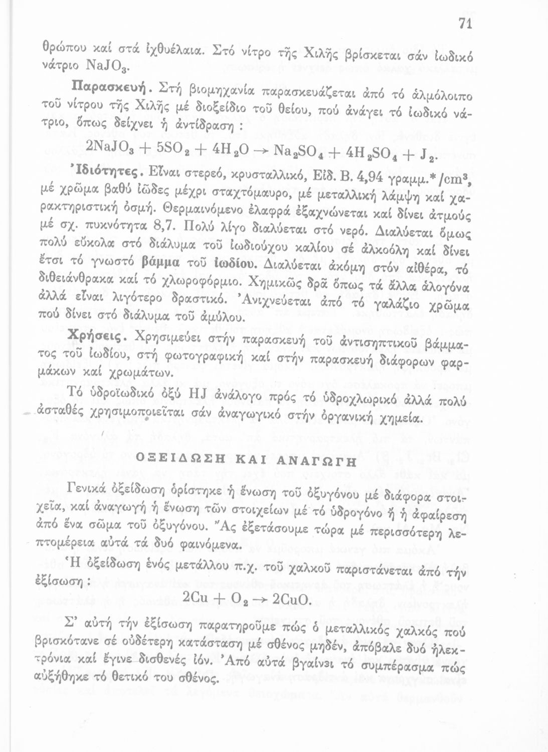 Σχολικό εγχειρίδιο Χημείας Α΄ και Β΄ Λυκείου που περιλαμβάνει εισαγωγή στις έννοιες της Χημείας (ύλη, νόμοι χημείας, χημικές αντιδράσεις, εξισώσεις, ενώσεις), αναλυτική περιγραφή στοιχείων και των ενώσεών τους.