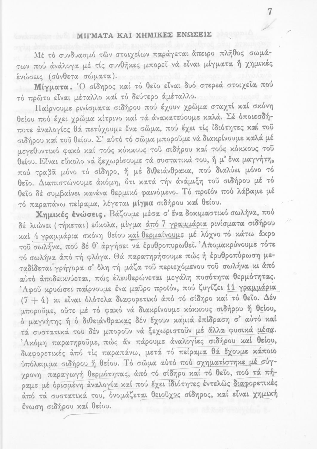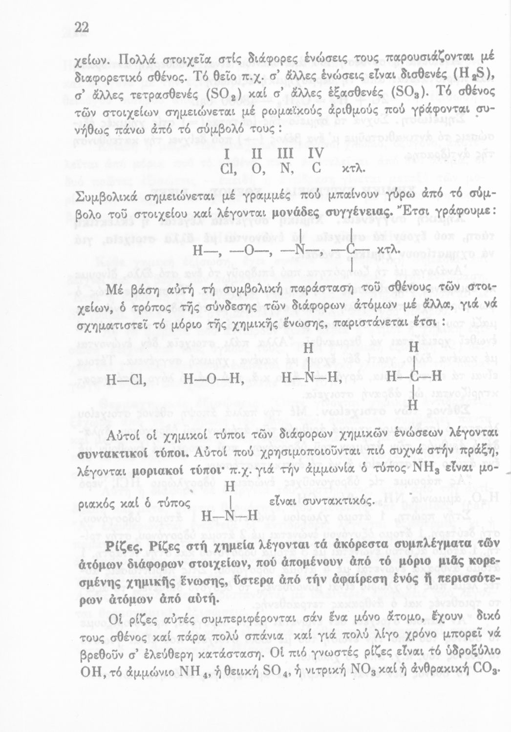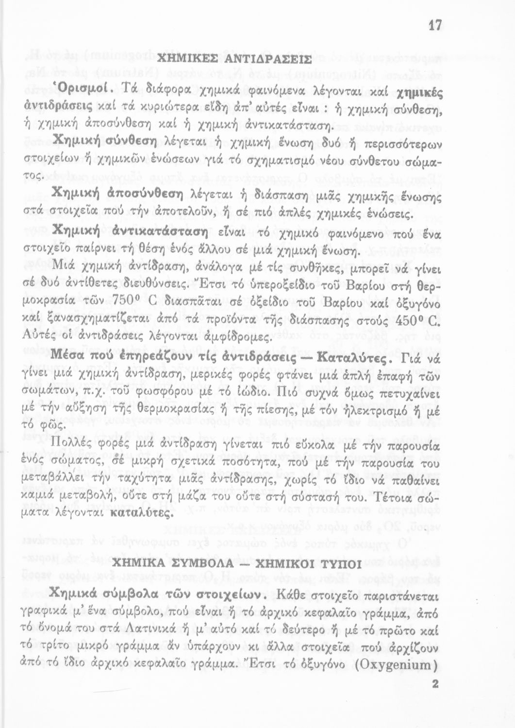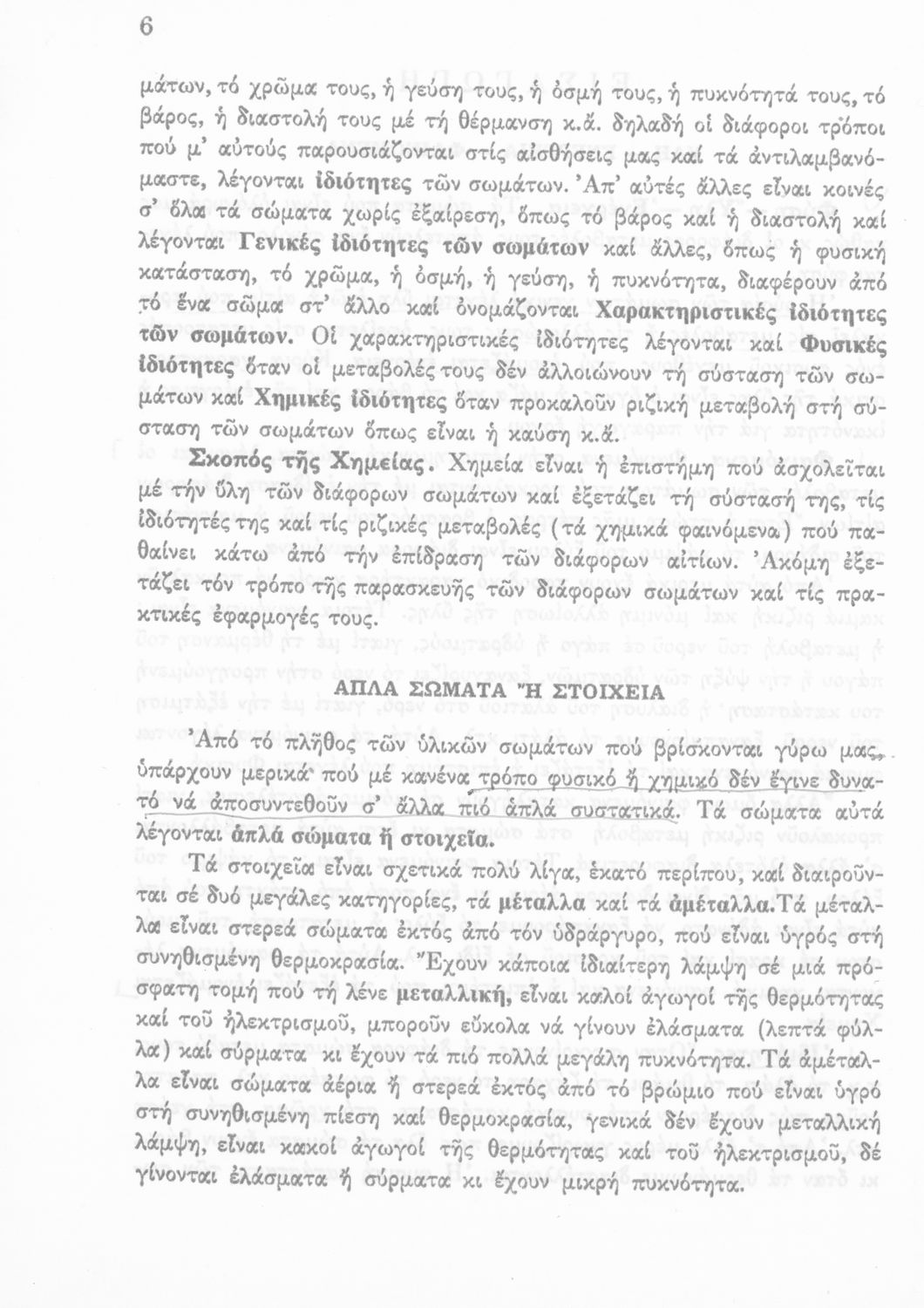 Σχολικό εγχειρίδιο Χημείας Α΄ και Β΄ Λυκείου που περιλαμβάνει εισαγωγή στις έννοιες της Χημείας (ύλη, νόμοι χημείας, χημικές αντιδράσεις, εξισώσεις, ενώσεις), αναλυτική περιγραφή στοιχείων και των ενώσεών τους.