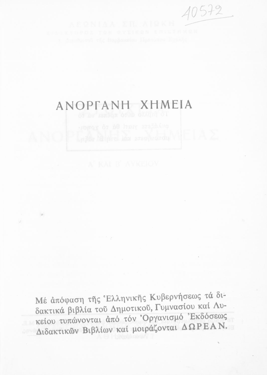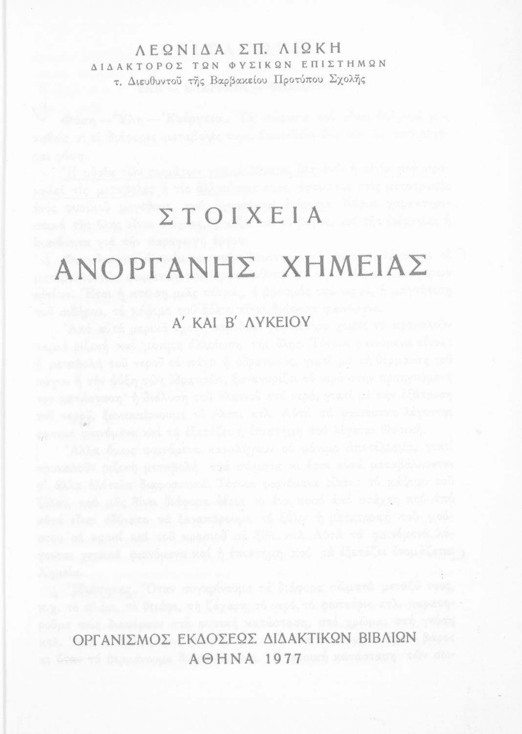 Τίτλος: Στοιχεία Ανόργανης Χημείας Α΄ και Β΄ Λυκείου