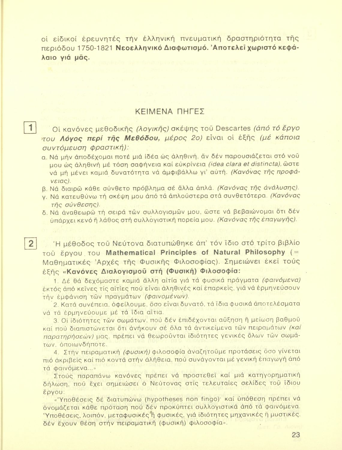 Σχολικό εγχειρίδιο Ιστορίας Γ΄ Λυκείου που πραγματεύεται τον ευρωπαϊκό διαφωτισμό, νεοελληνικό διαφωτισμό και θέματα νεοελληνικής ιστορίας (1750-1850) από πηγές.