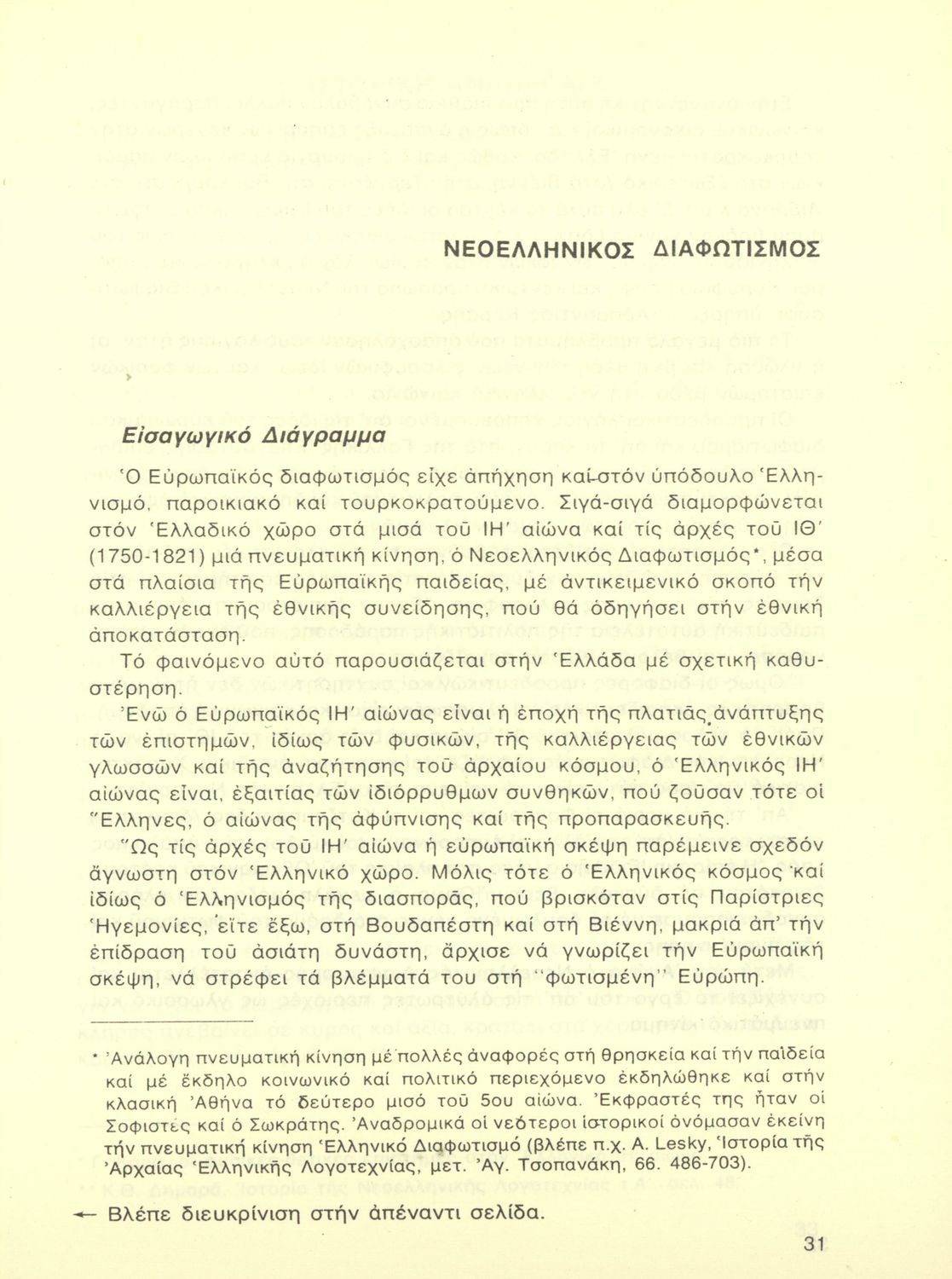 Παρουσίαση περιεχομένου: Σχολικό εγχειρίδιο Ιστορίας Γ΄ Λυκείου που εστιάζει στον Ευρωπαϊκό Διαφωτισμό, τον Νεοελληνικό Διαφωτισμό και σε θέματα Νεοελληνικής Ιστορίας της περιόδου 1750-1850 από πηγές.