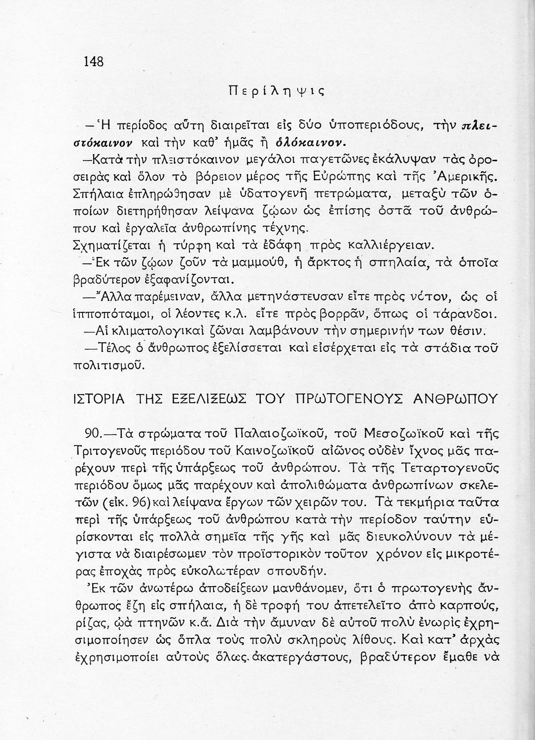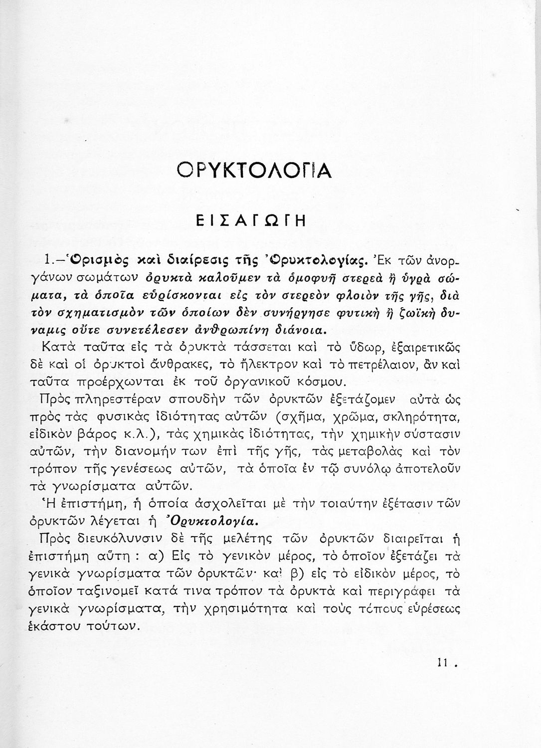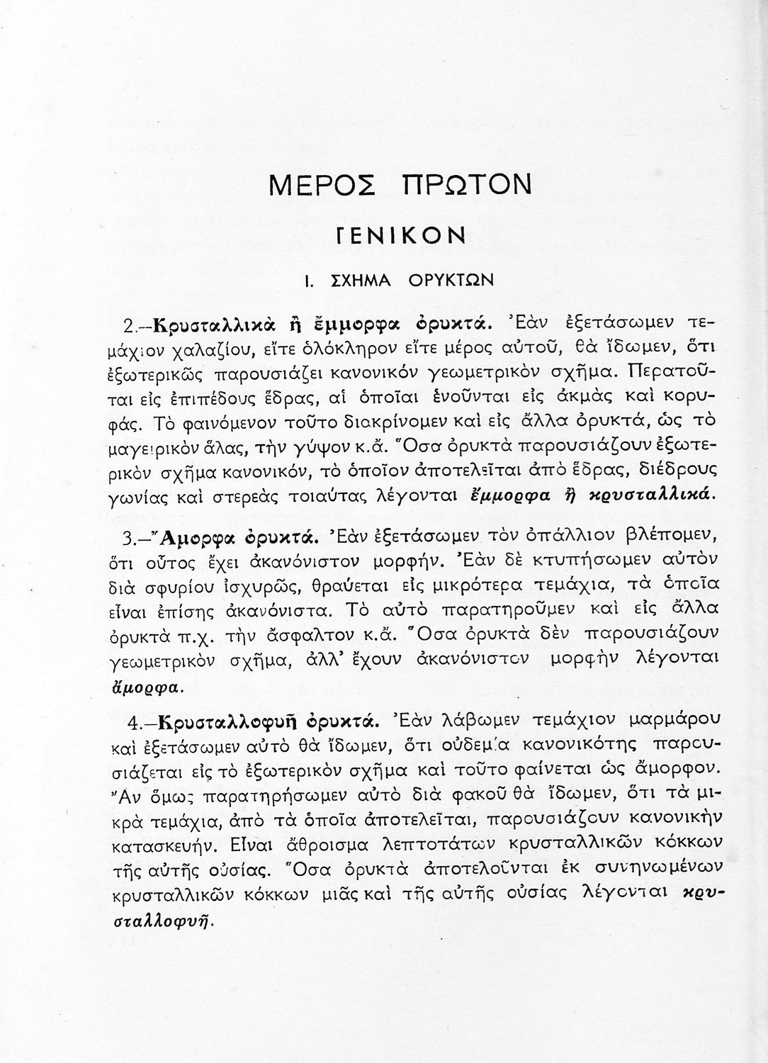 Σχολικό εγχειρίδιο Γεωλογίας/Ορυκτολογίας για την Γ΄ τάξη των Αστικών Σχολείων χωρισμένο σε χθονογραφία, δυναμική και ιστορική γεωλογία και γενική και ειδική ορυκτολογία.