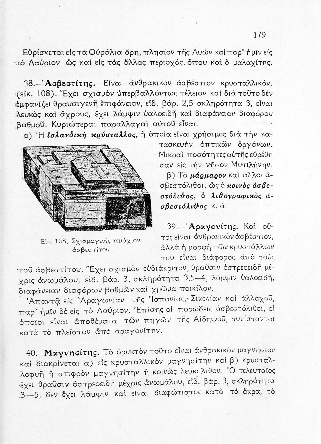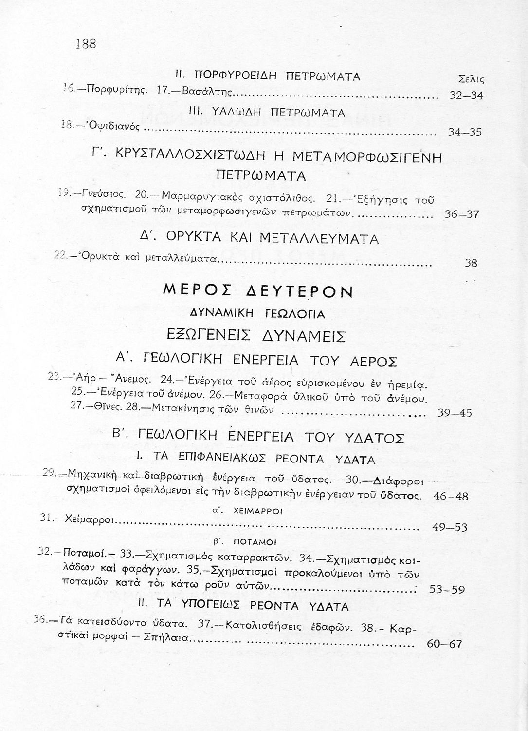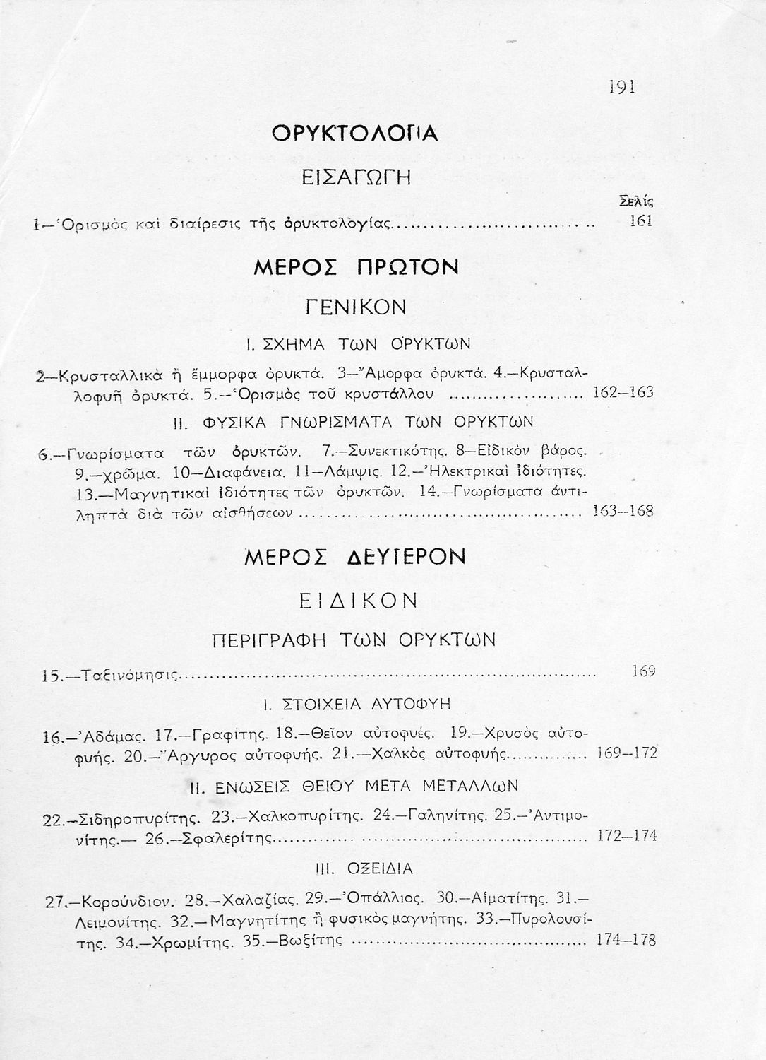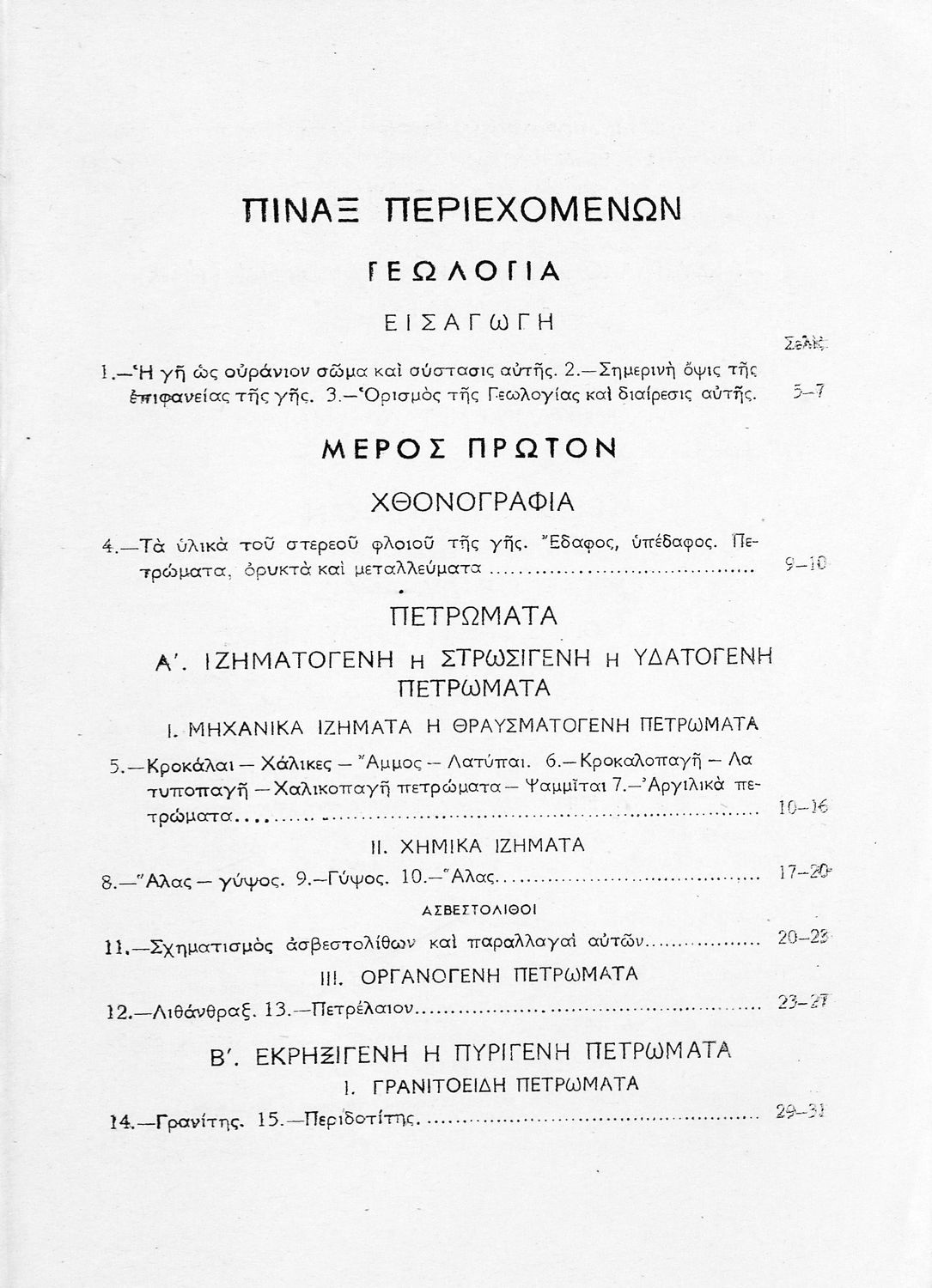 Σχολικό εγχειρίδιο Γεωλογίας/Ορυκτολογίας για την Γ΄ τάξη των Αστικών Σχολείων χωρισμένο σε χθονογραφία, δυναμική και ιστορική γεωλογία και γενική και ειδική ορυκτολογία.