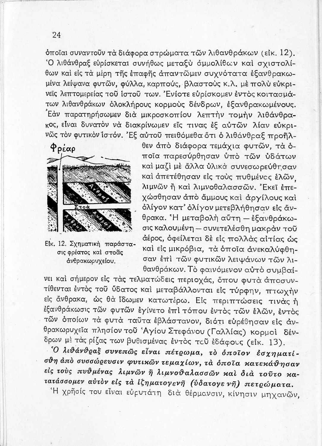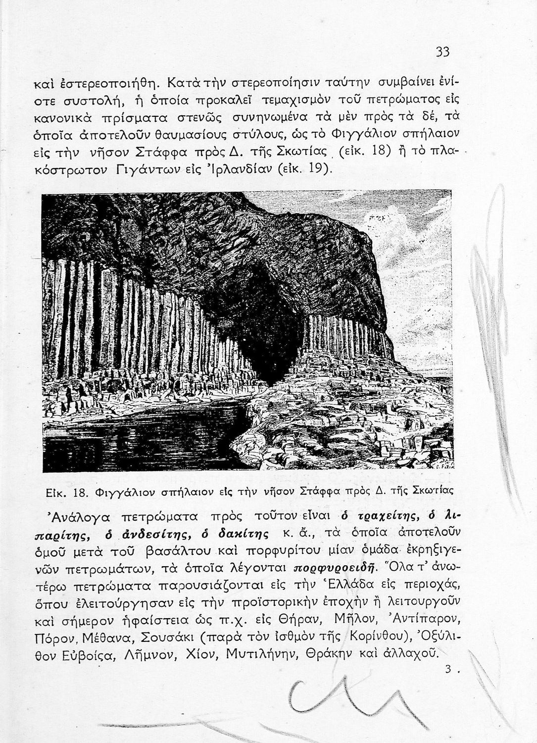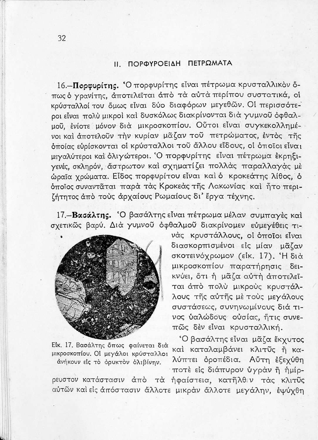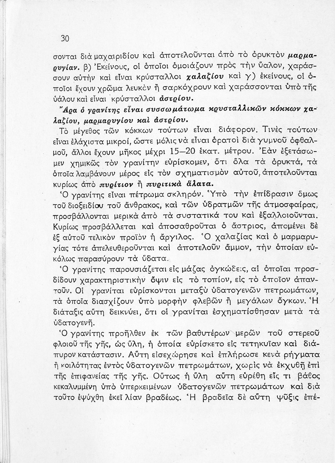 Σχολικό εγχειρίδιο Γεωλογίας/Ορυκτολογίας για την Γ΄ τάξη των Αστικών Σχολείων χωρισμένο σε χθονογραφία, δυναμική και ιστορική γεωλογία και γενική και ειδική ορυκτολογία.