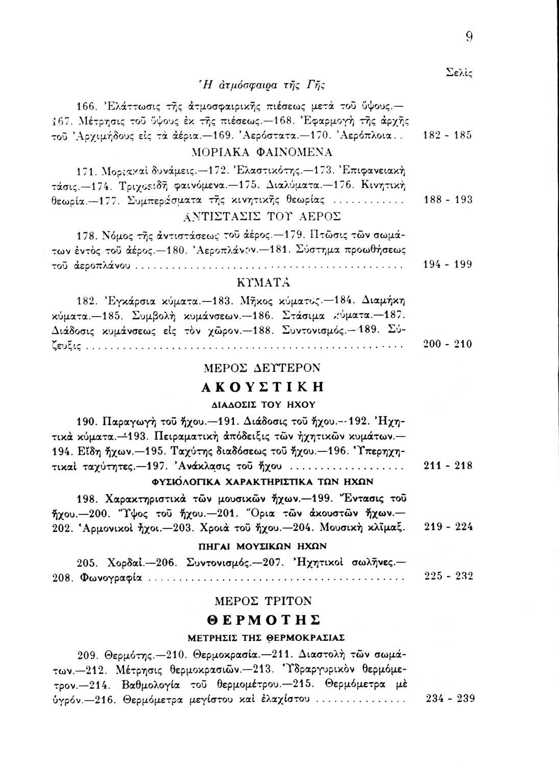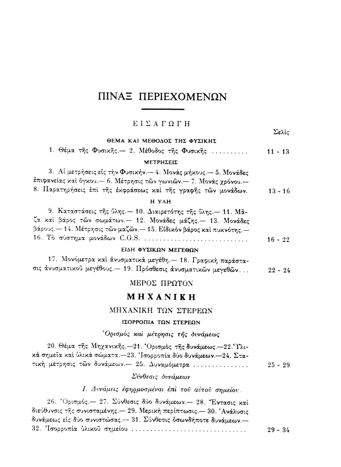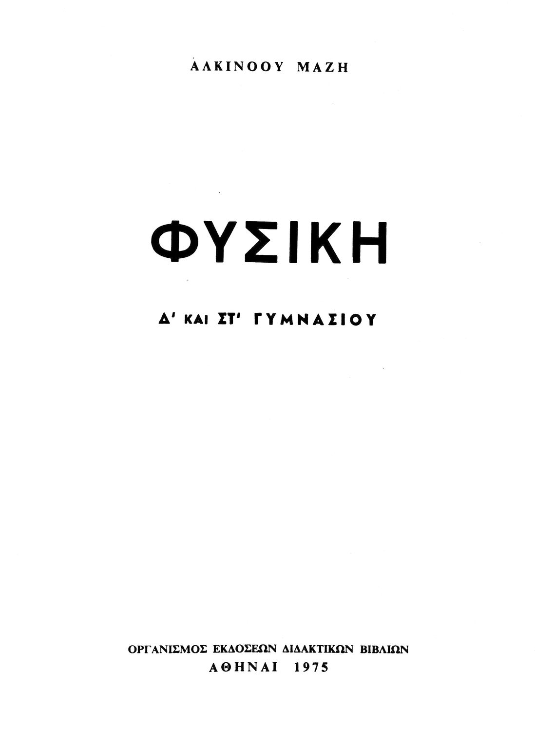 Βαθμίδα εκπαίδευσης: Δευτεροβάθμια Τάξη: Δ' Γυμνασίου / ΣΤ' Γυμνασίου Μάθημα: Φυσική Γλώσσα: Καθαρεύουσα Παρουσίαση περιεχομένου: Σχολικό εγχειρίδιο Φυσικής Δ΄ και ΣΤ΄ Γυμνασίου που εστιάζει στα φυσικά φαινόμενα της μηχανικής, της ακουστικής και της θερμότητας. |
