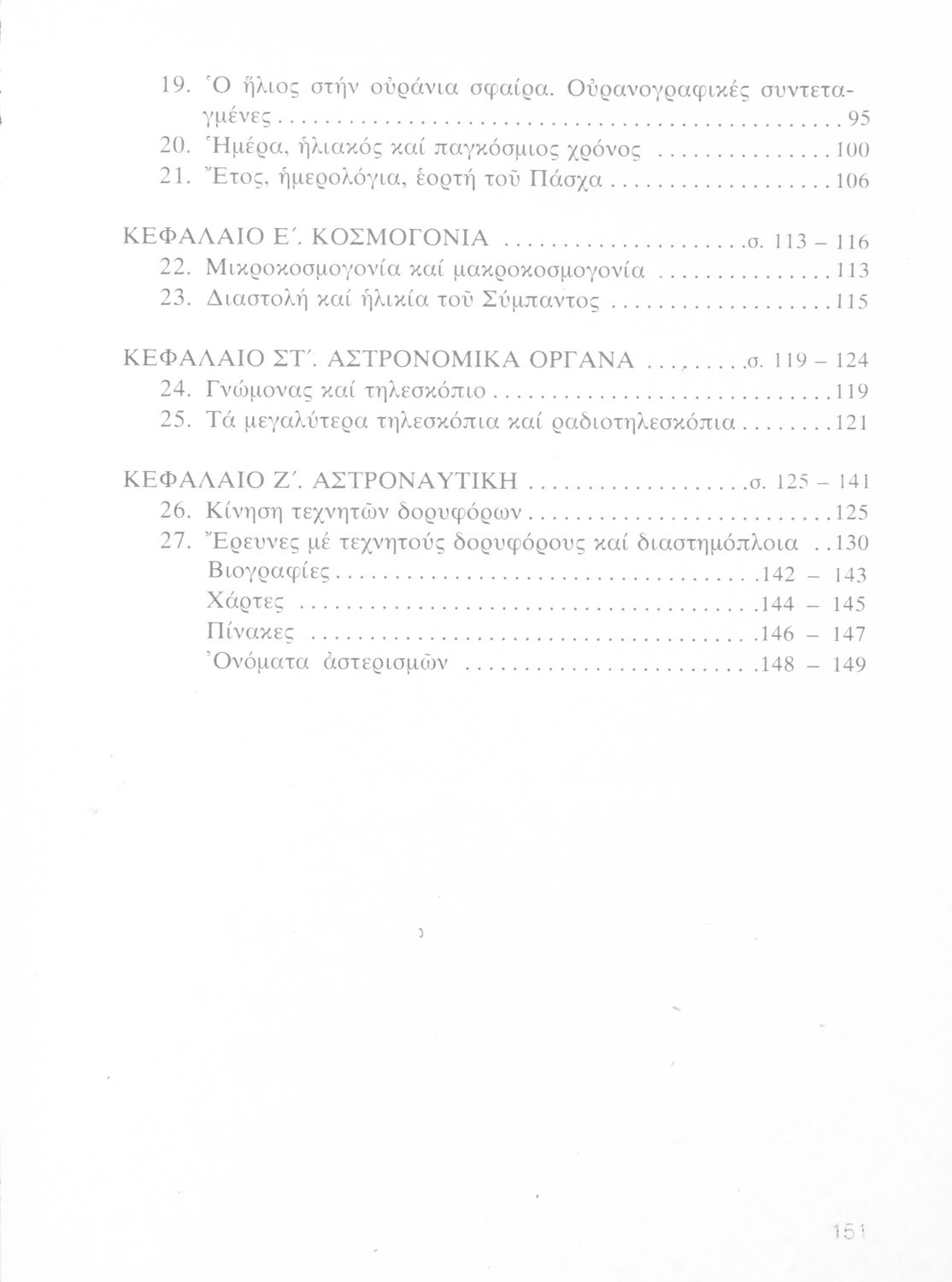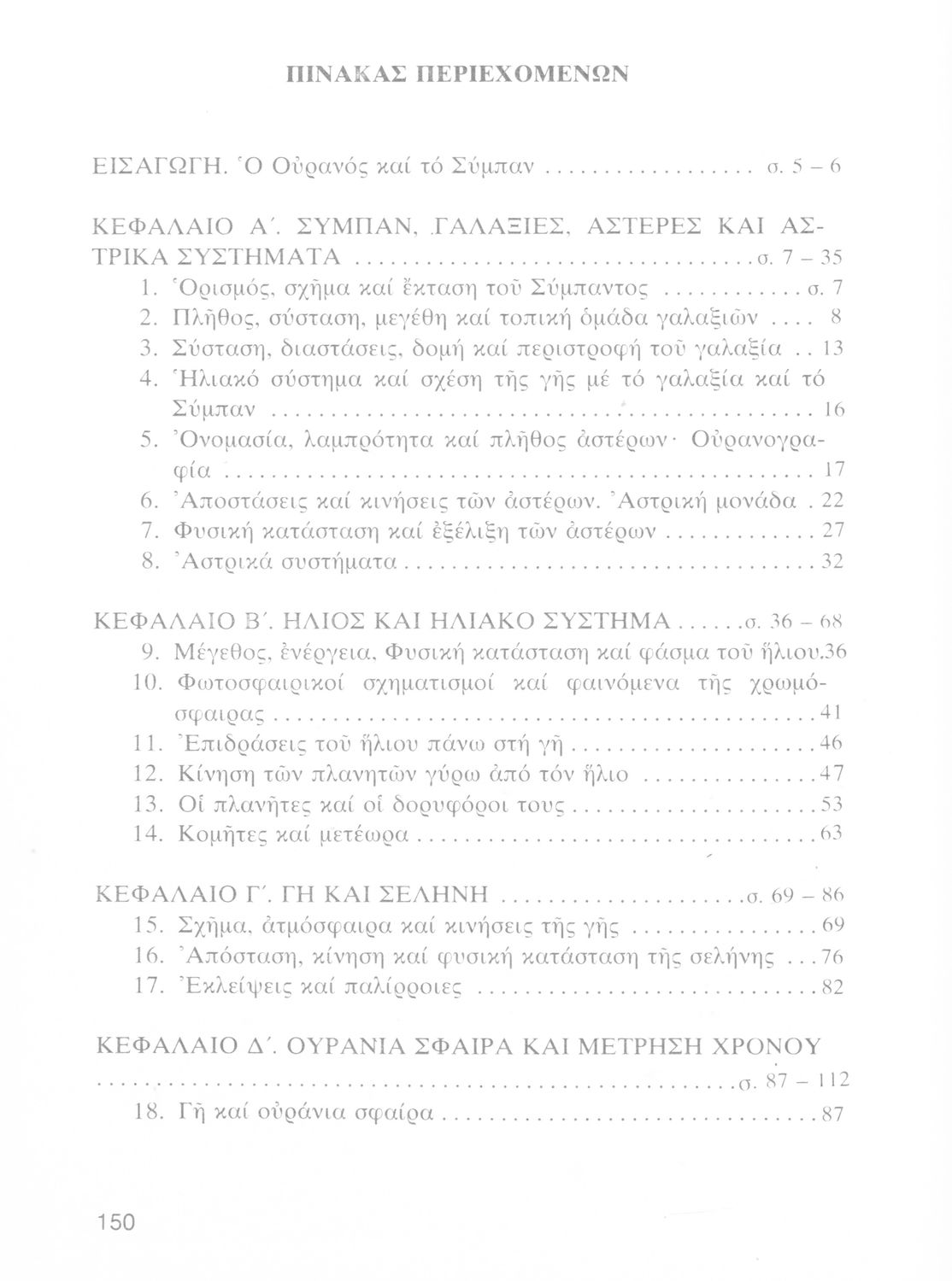 Σχολικό εγχειρίδιο Κοσμογραφίας Γ΄ Λυκείου που πραγματεύεται τη μορφή, σύσταση, μέγεθος και κίνηση των γαλαξιών και των πλανητών. Περιέχει στοιχεία αστροναυτικής και πίνακα με 88 αστερισμούς, τα διεθνή ονόματα