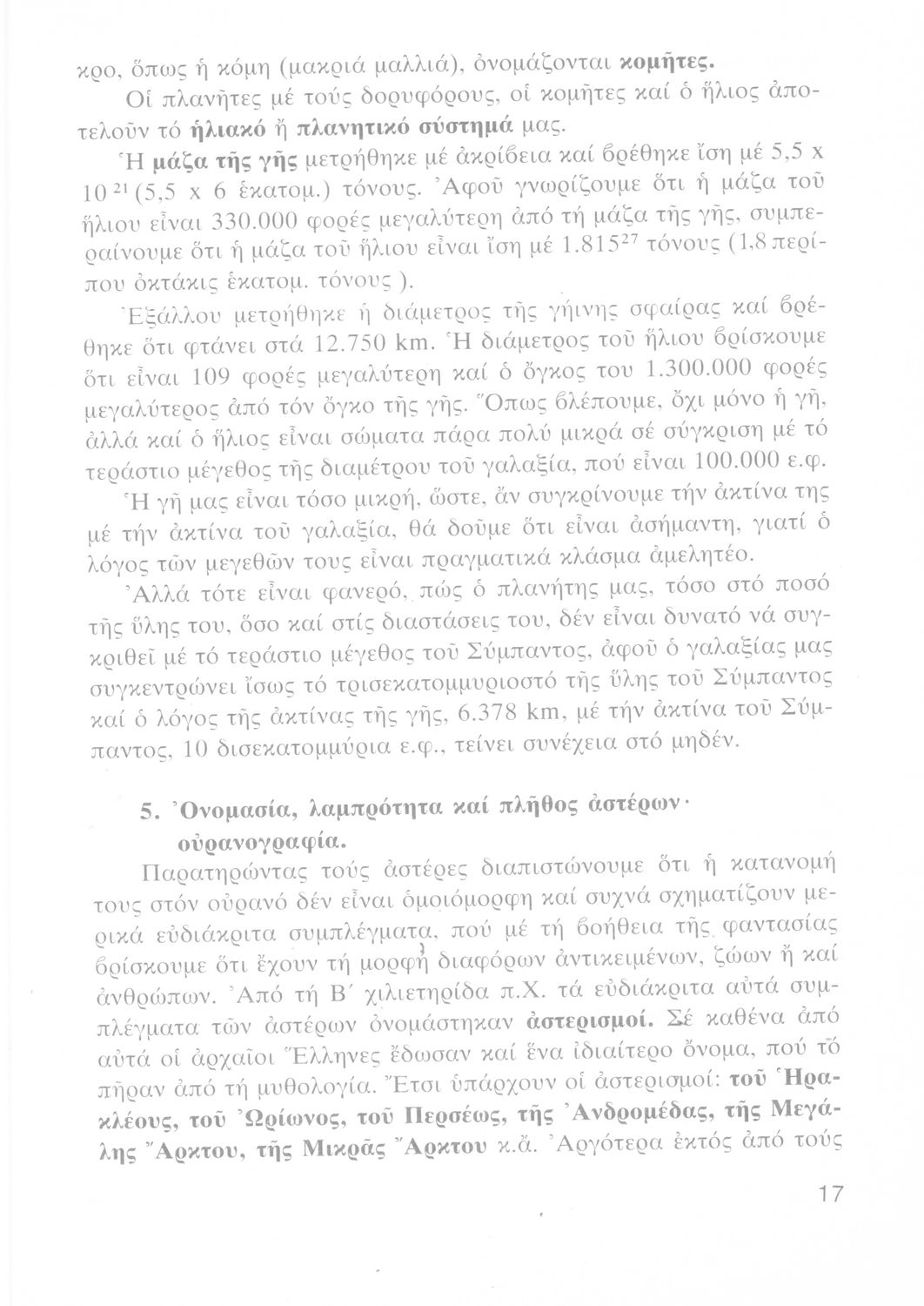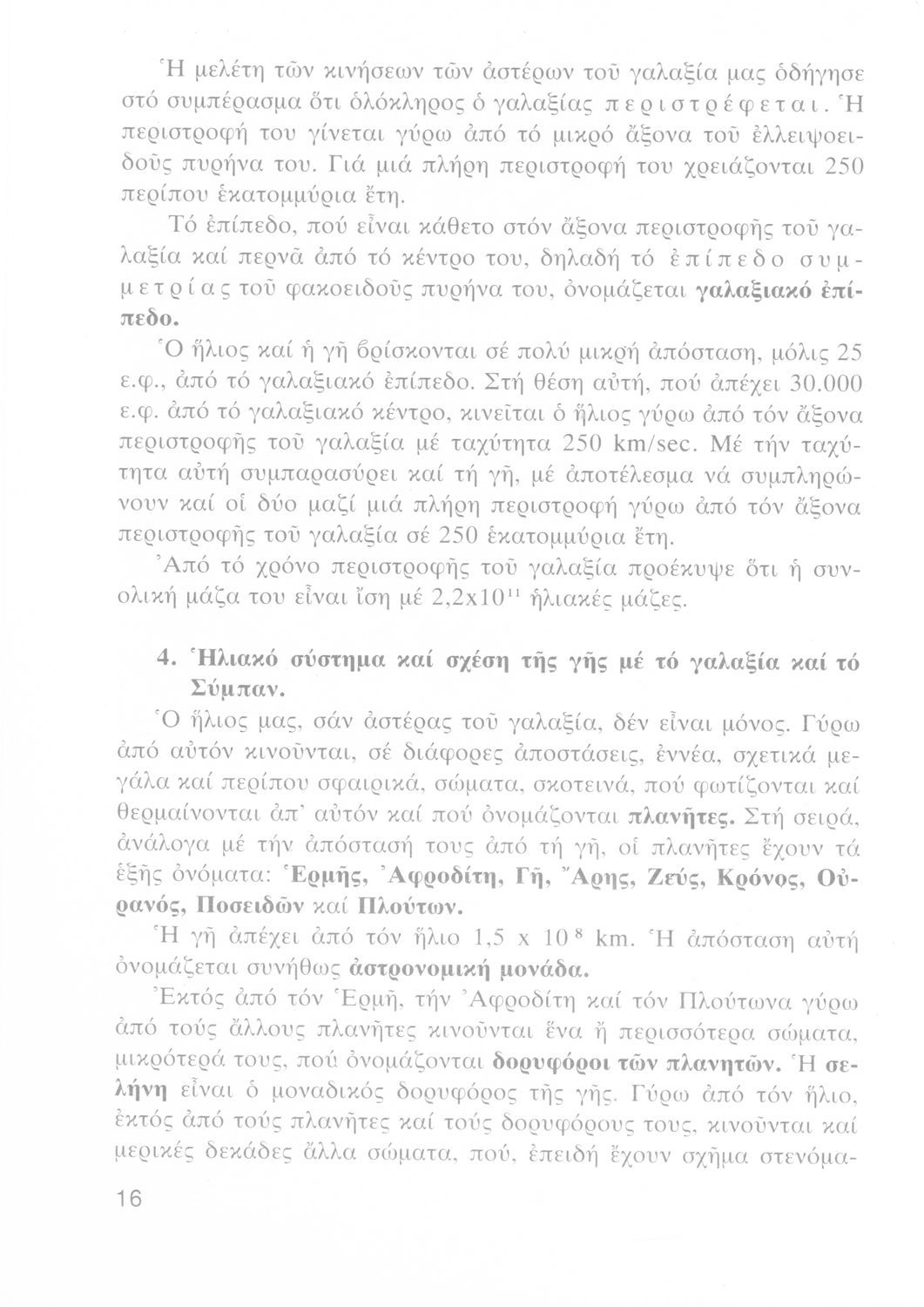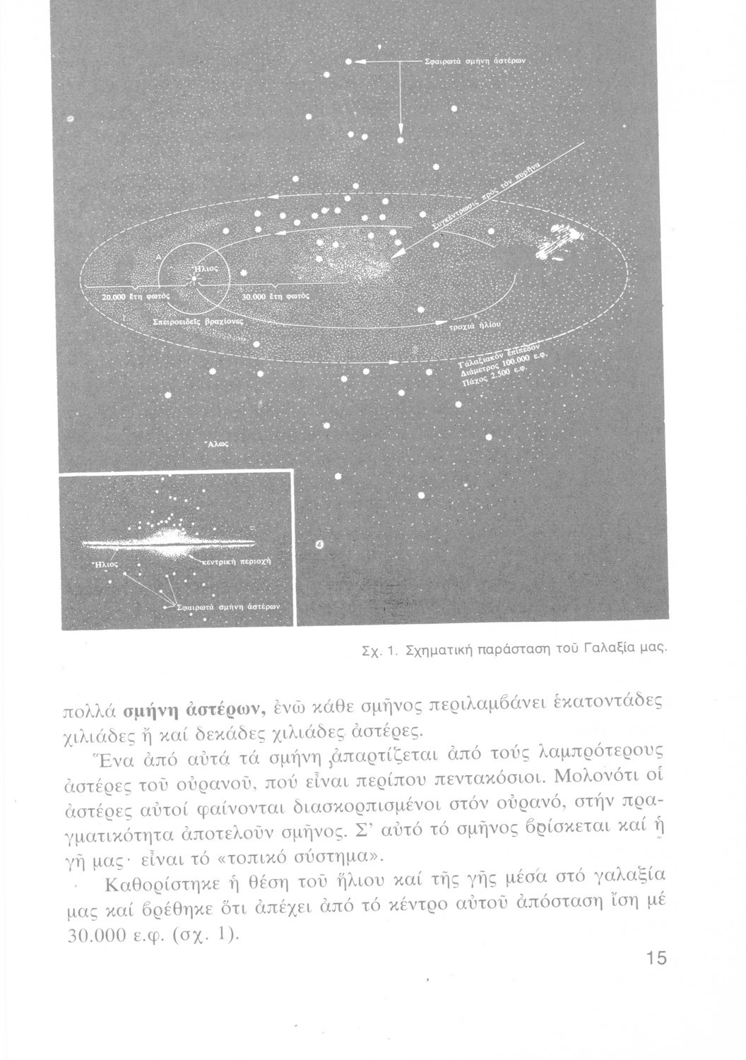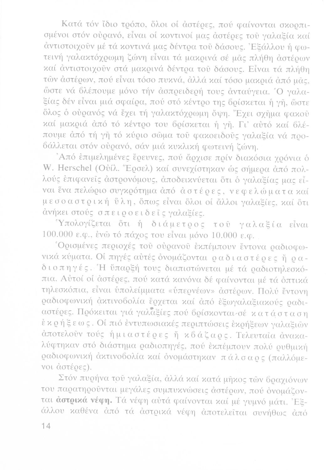 Σχολικό εγχειρίδιο Κοσμογραφίας Γ΄ Λυκείου που πραγματεύεται τη μορφή, σύσταση, μέγεθος και κίνηση των γαλαξιών και των πλανητών. Περιέχει στοιχεία αστροναυτικής και πίνακα με 88 αστερισμούς, τα διεθνή ονόματα