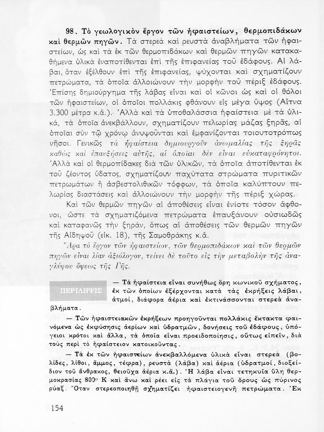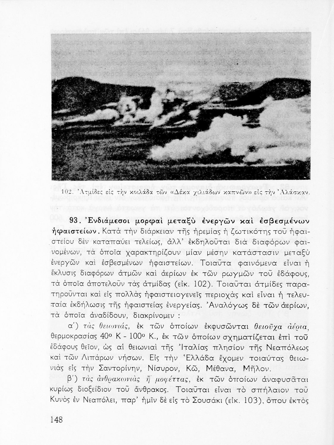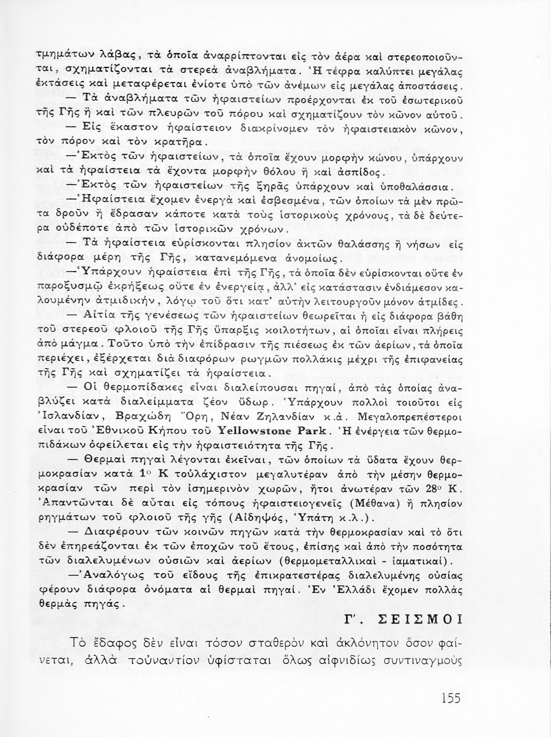 Σχολικό εγχειρίδιο Γεωλογίας/Ορυκτολογίας για την Α΄ Λυκείου που περιλαμβάνει χθονογραφική, δυναμική και ιστορική γεωλογία, και γενική και ειδική ορυκτολογία. Ο συγγραφέας ήταν καθηγητής πανεπιστήμιου και η συγγραφέας φυσικός. Περιέχει παράρτημα με «Στοιχεία Μαθηματικής Γεωγραφίας» από τη γεωγραφία Δ’ τάξης του Αλκίνοου Μάζη (εκδ 1963).
