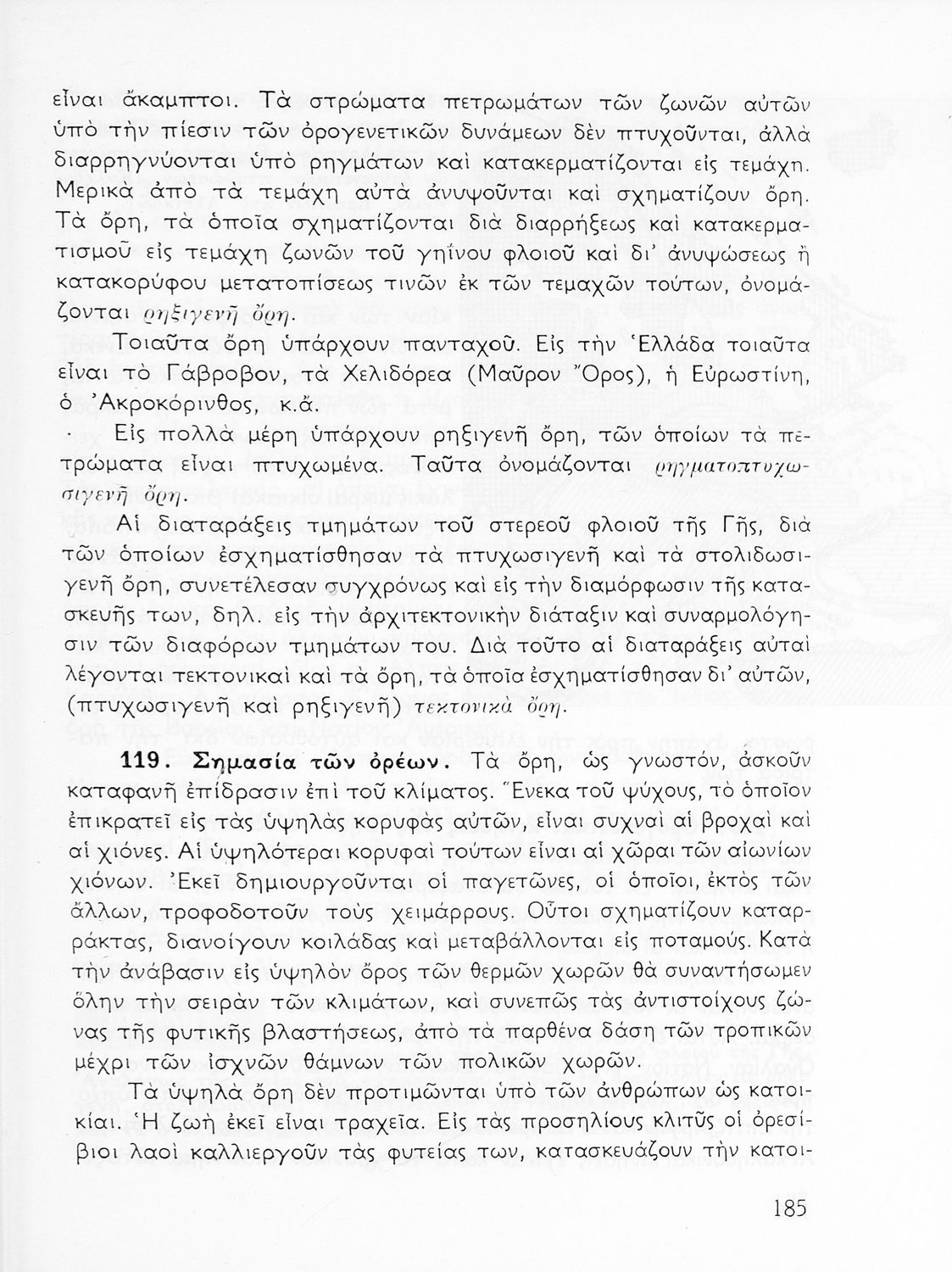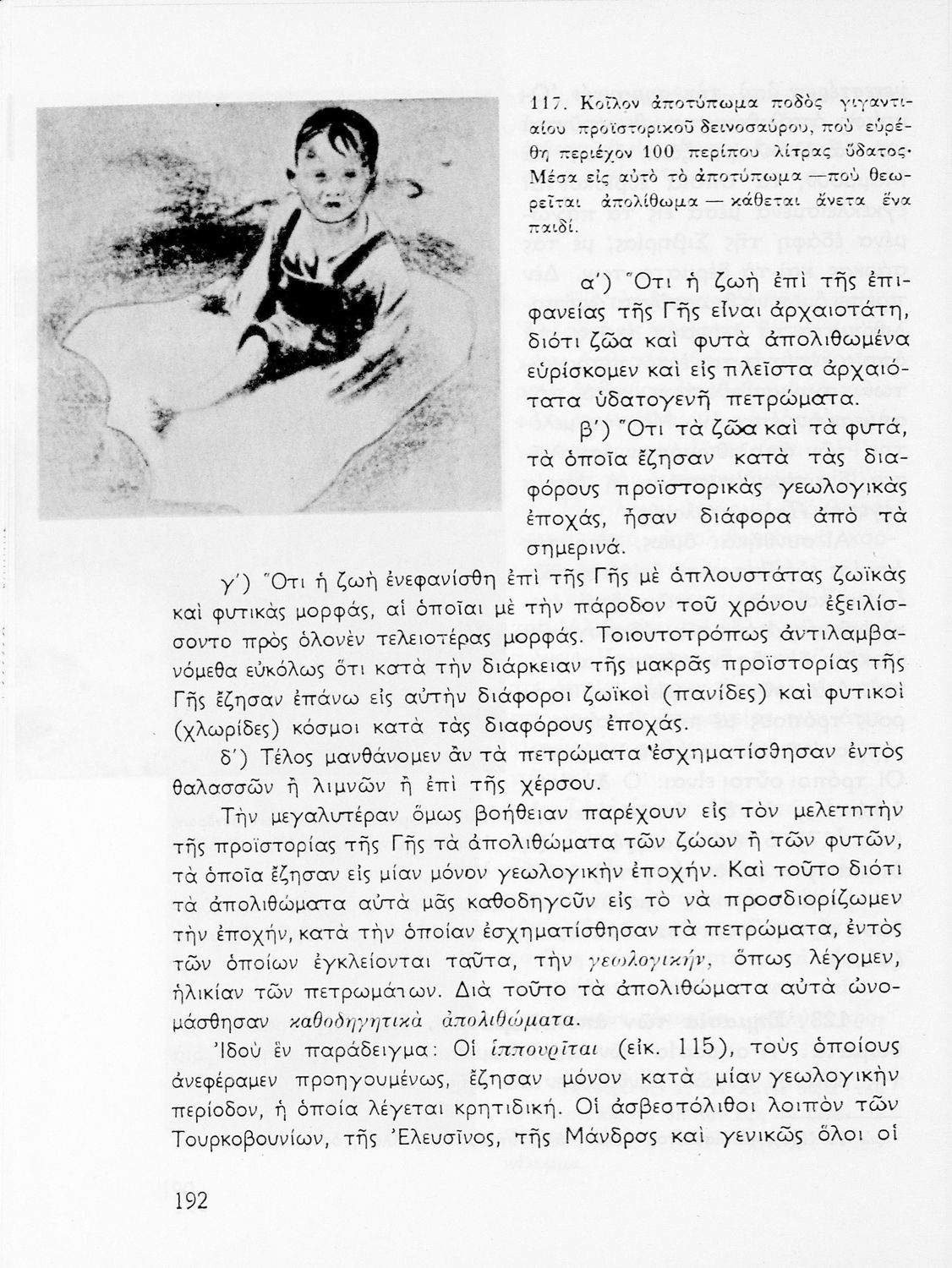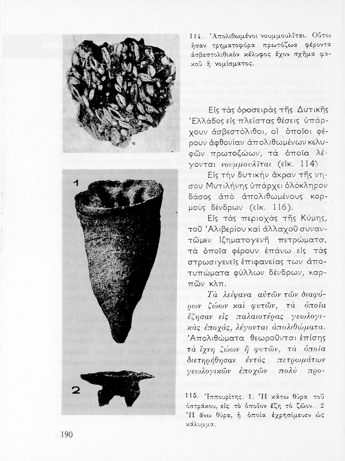 Σχολικό εγχειρίδιο Γεωλογίας/Ορυκτολογίας για την Α΄ Λυκείου που περιλαμβάνει χθονογραφική, δυναμική και ιστορική γεωλογία, και γενική και ειδική ορυκτολογία. Ο συγγραφέας ήταν καθηγητής πανεπιστήμιου και η συγγραφέας φυσικός. Περιέχει παράρτημα με «Στοιχεία Μαθηματικής Γεωγραφίας» από τη γεωγραφία Δ’ τάξης του Αλκίνοου Μάζη (εκδ 1963).