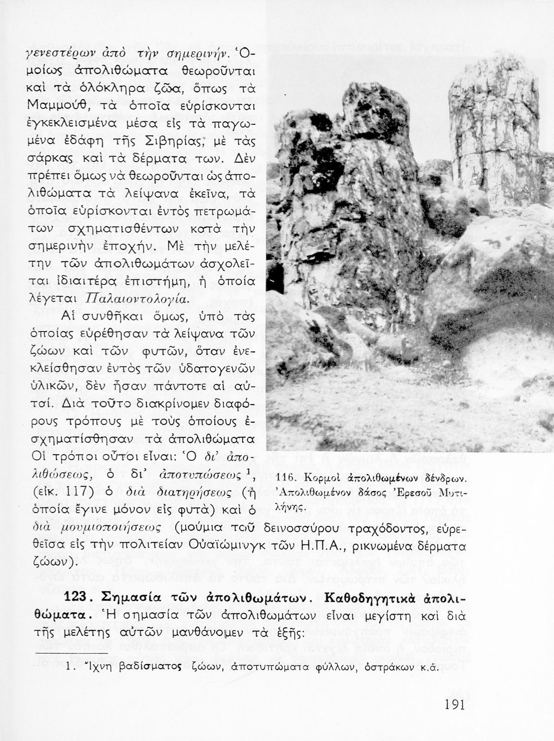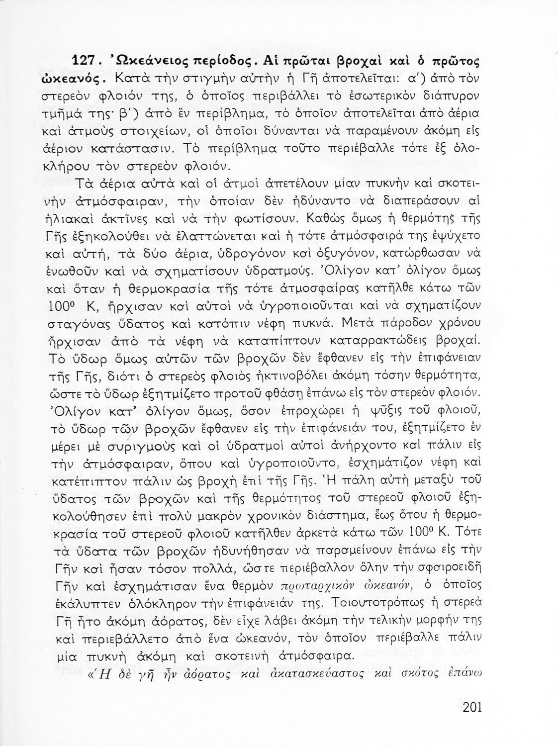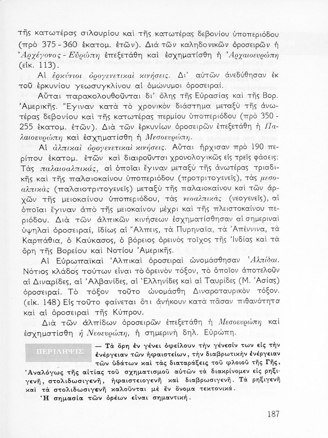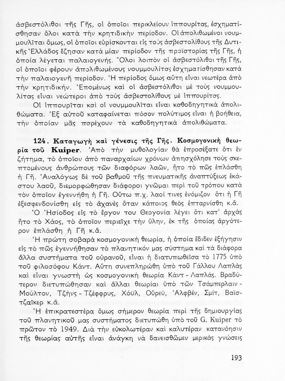 Σχολικό εγχειρίδιο Γεωλογίας/Ορυκτολογίας για την Α΄ Λυκείου που περιλαμβάνει χθονογραφική, δυναμική και ιστορική γεωλογία, και γενική και ειδική ορυκτολογία. Ο συγγραφέας ήταν καθηγητής πανεπιστήμιου και η συγγραφέας φυσικός. Περιέχει παράρτημα με «Στοιχεία Μαθηματικής Γεωγραφίας» από τη γεωγραφία Δ’ τάξης του Αλκίνοου Μάζη (εκδ 1963).
