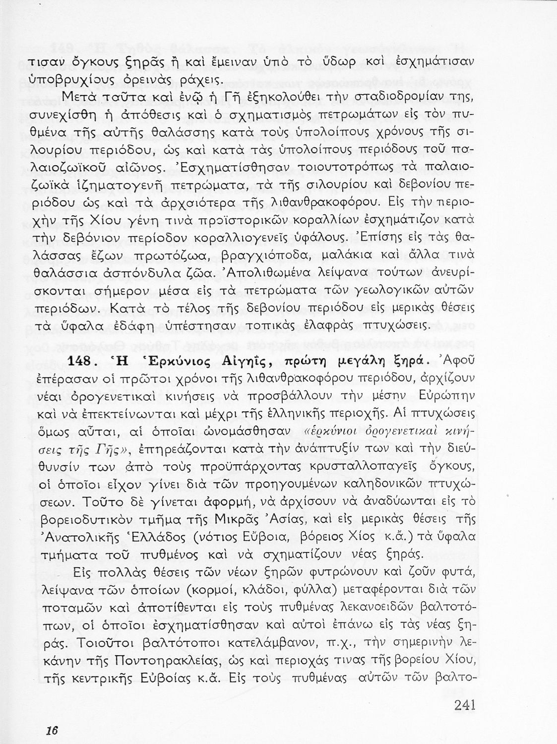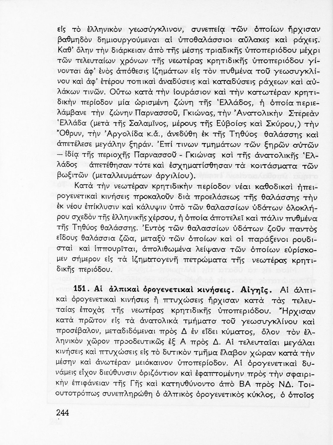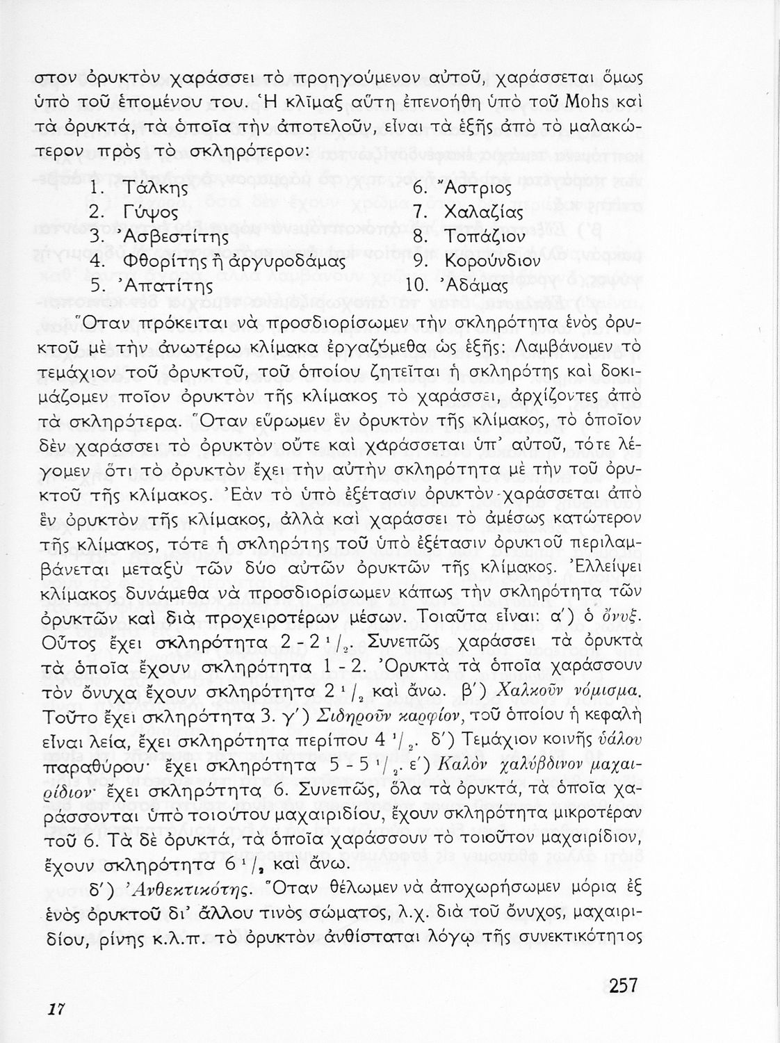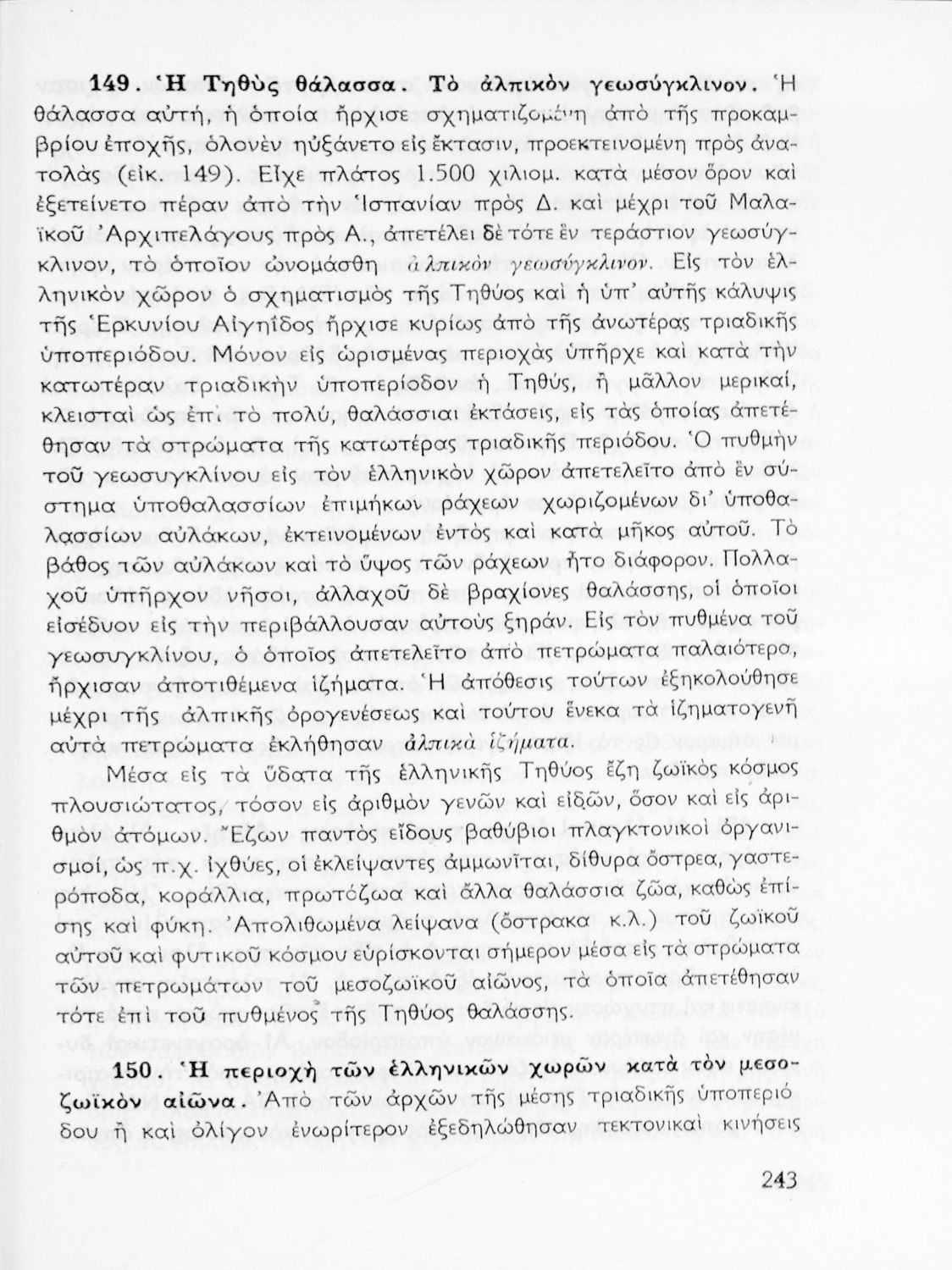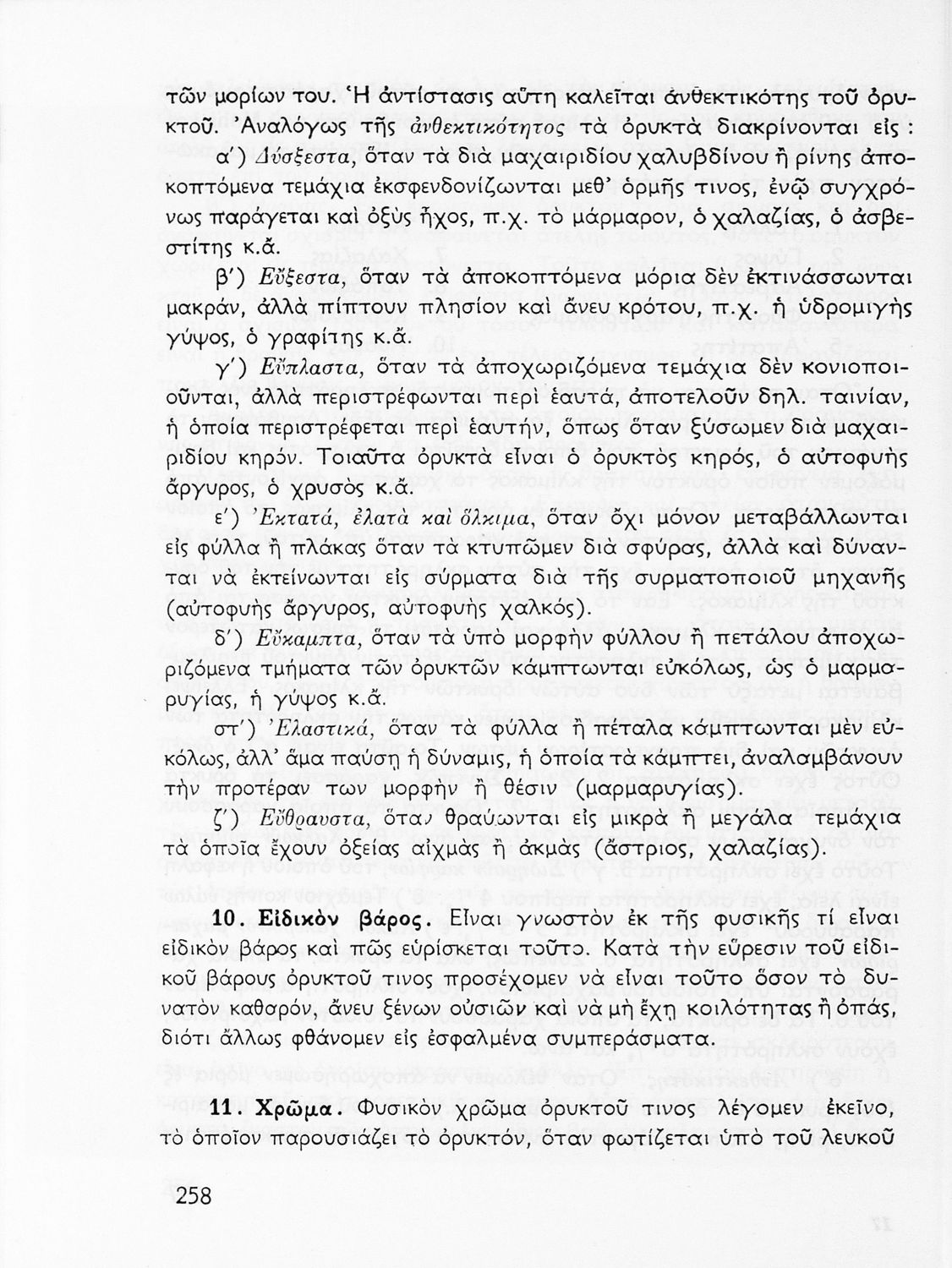 Σχολικό εγχειρίδιο Γεωλογίας/Ορυκτολογίας για την Α΄ Λυκείου που περιλαμβάνει χθονογραφική, δυναμική και ιστορική γεωλογία, και γενική και ειδική ορυκτολογία. Ο συγγραφέας ήταν καθηγητής πανεπιστήμιου και η συγγραφέας φυσικός. Περιέχει παράρτημα με «Στοιχεία Μαθηματικής Γεωγραφίας» από τη γεωγραφία Δ’ τάξης του Αλκίνοου Μάζη (εκδ 1963).