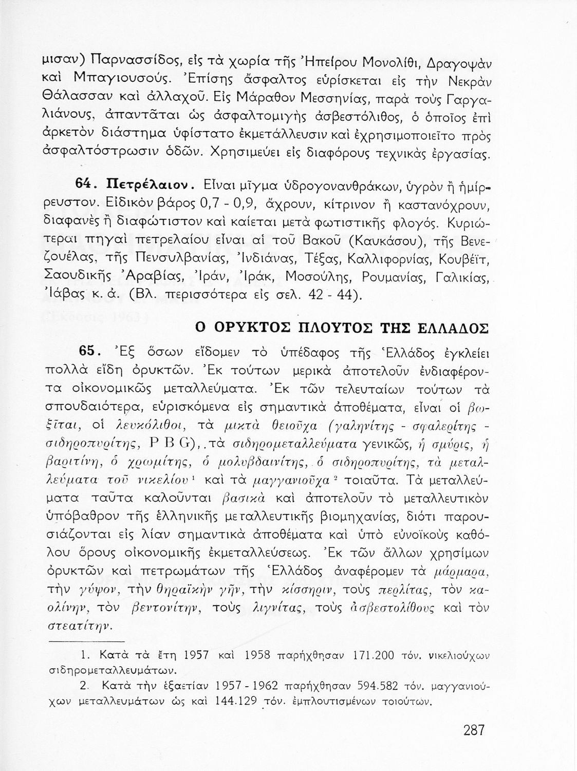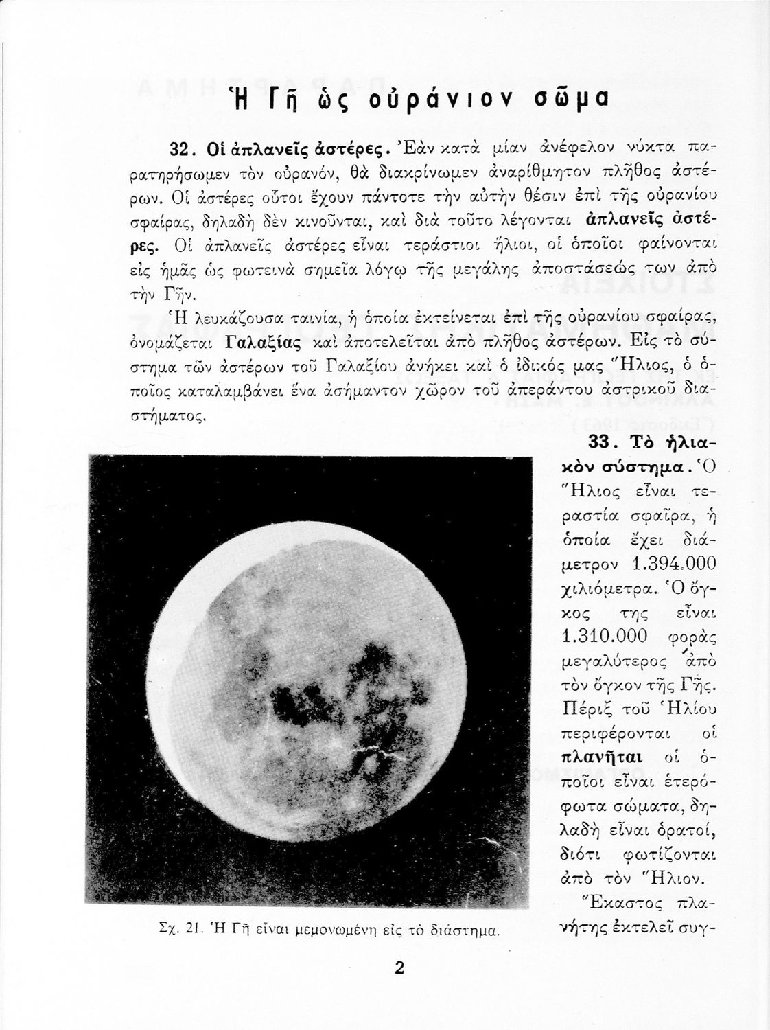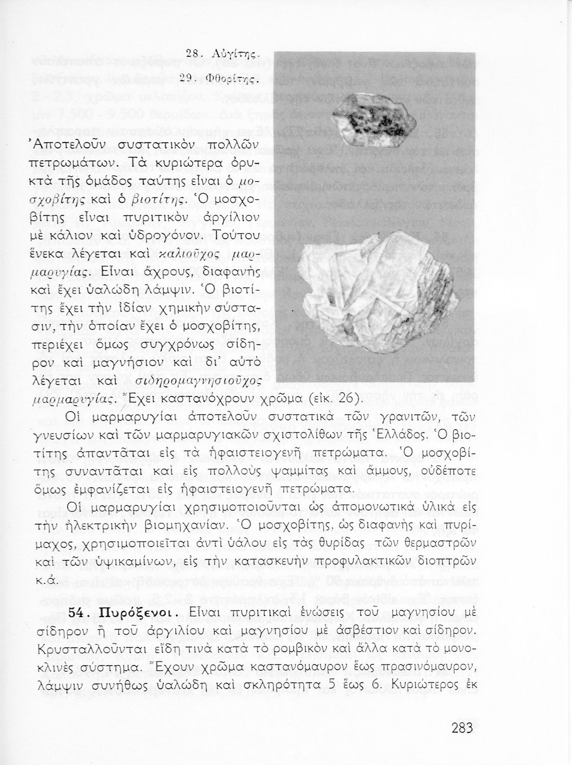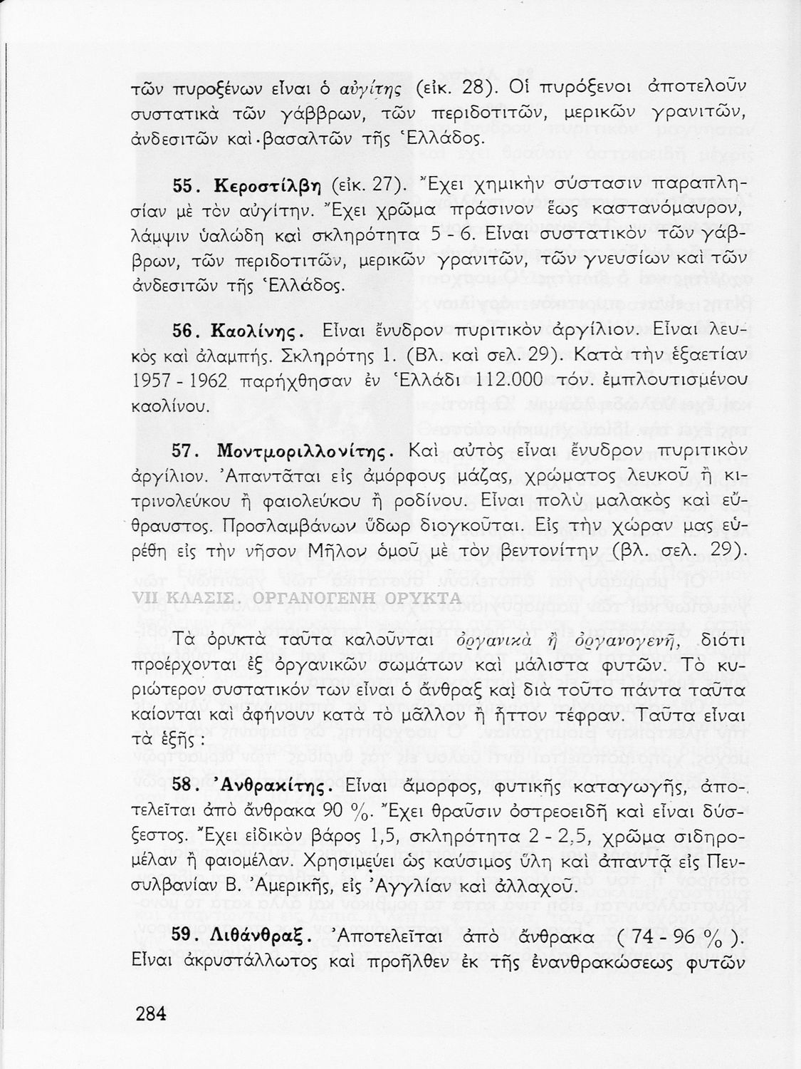 Σχολικό εγχειρίδιο Γεωλογίας/Ορυκτολογίας για την Α΄ Λυκείου που περιλαμβάνει χθονογραφική, δυναμική και ιστορική γεωλογία, και γενική και ειδική ορυκτολογία. Ο συγγραφέας ήταν καθηγητής πανεπιστήμιου και η συγγραφέας φυσικός. Περιέχει παράρτημα με «Στοιχεία Μαθηματικής Γεωγραφίας» από τη γεωγραφία Δ’ τάξης του Αλκίνοου Μάζη (εκδ 1963).