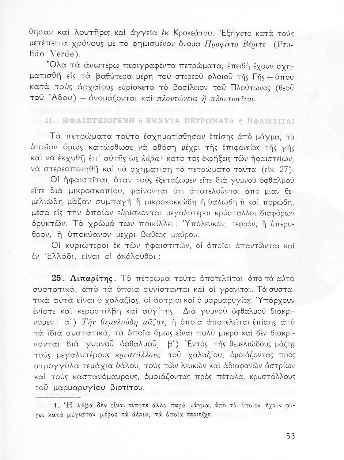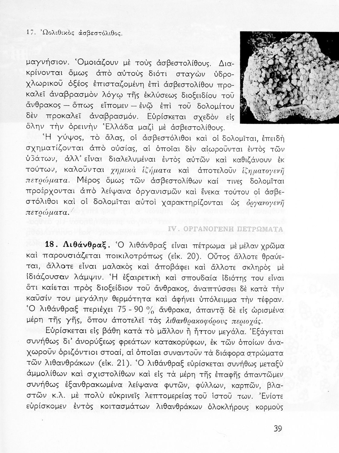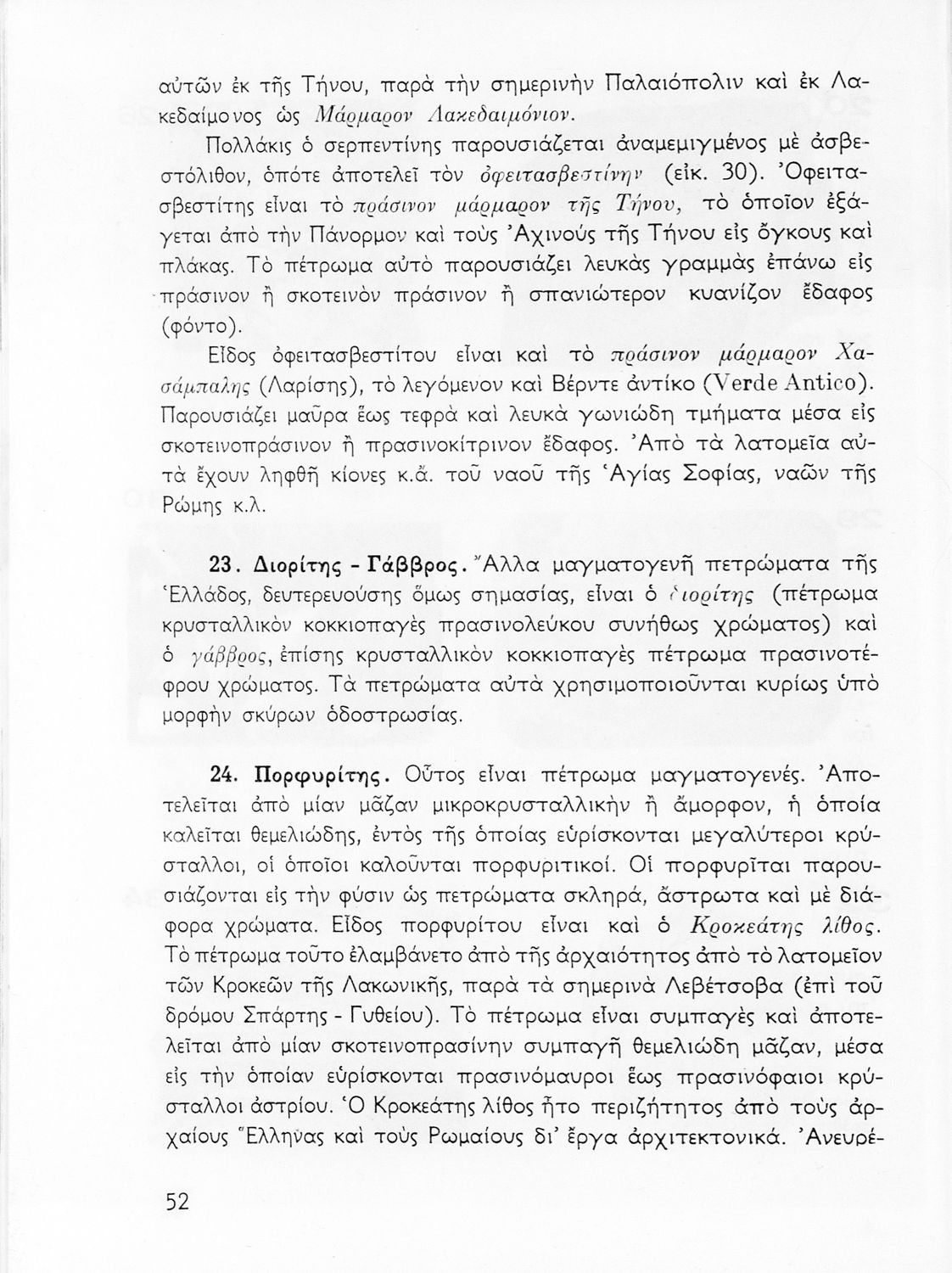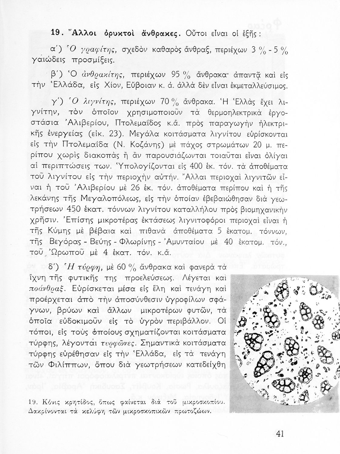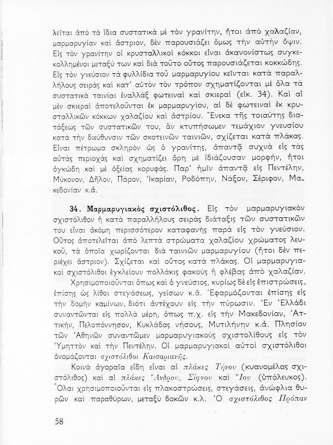 Σχολικό εγχειρίδιο Γεωλογίας/Ορυκτολογίας για την Α΄ Λυκείου που περιλαμβάνει χθονογραφική, δυναμική και ιστορική γεωλογία, και γενική και ειδική ορυκτολογία. Ο συγγραφέας ήταν καθηγητής πανεπιστήμιου και η συγγραφέας φυσικός. Περιέχει παράρτημα με «Στοιχεία Μαθηματικής Γεωγραφίας» από τη γεωγραφία Δ’ τάξης του Αλκίνοου Μάζη (εκδ 1963).