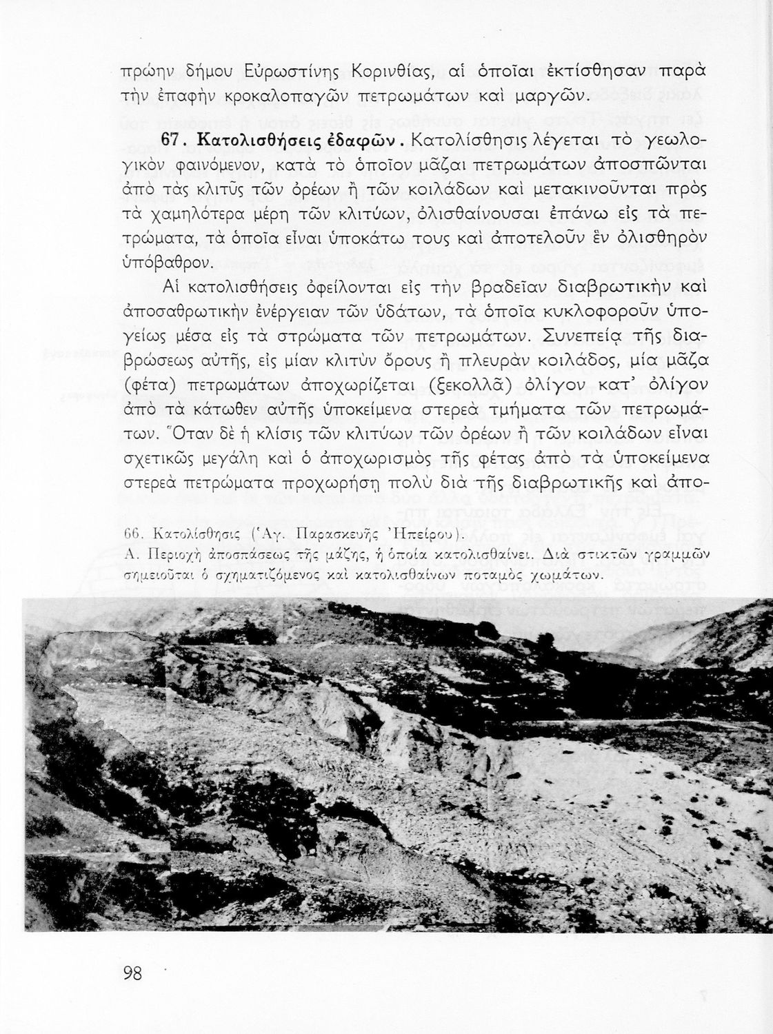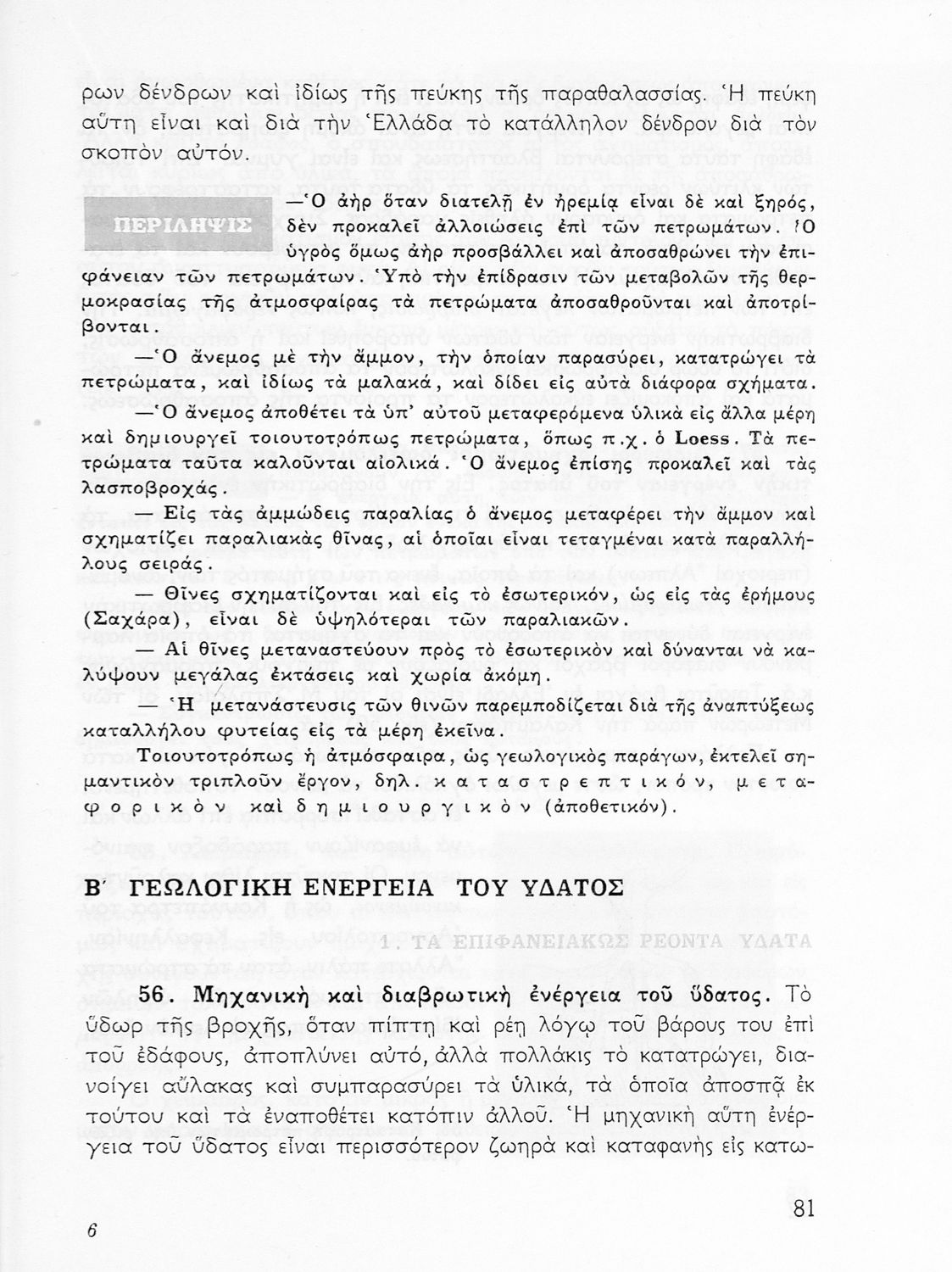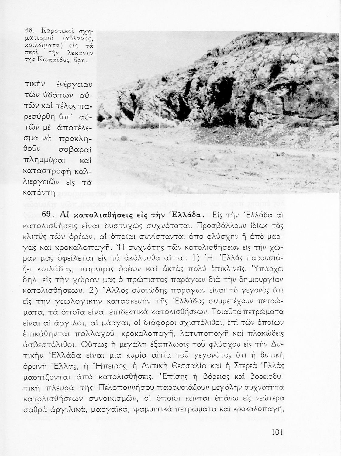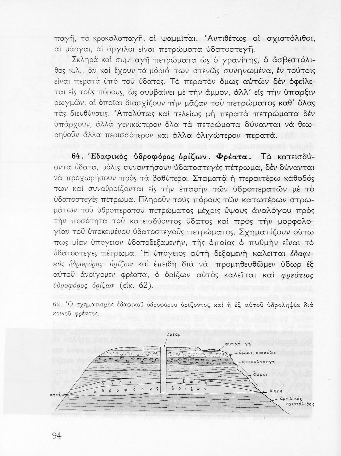 Σχολικό εγχειρίδιο Γεωλογίας/Ορυκτολογίας για την Α΄ Λυκείου που περιλαμβάνει χθονογραφική, δυναμική και ιστορική γεωλογία, και γενική και ειδική ορυκτολογία. Ο συγγραφέας ήταν καθηγητής πανεπιστήμιου και η συγγραφέας φυσικός. Περιέχει παράρτημα με «Στοιχεία Μαθηματικής Γεωγραφίας» από τη γεωγραφία Δ’ τάξης του Αλκίνοου Μάζη (εκδ 1963).