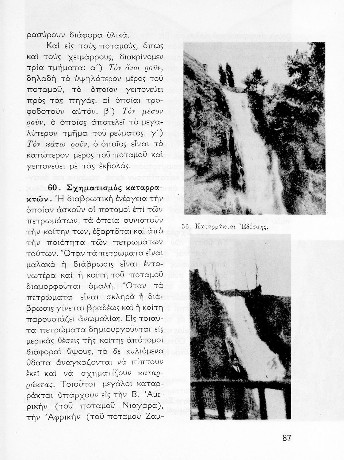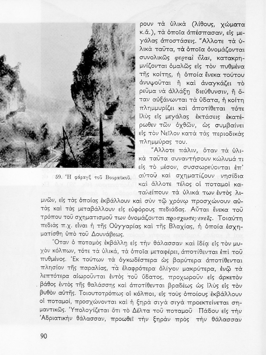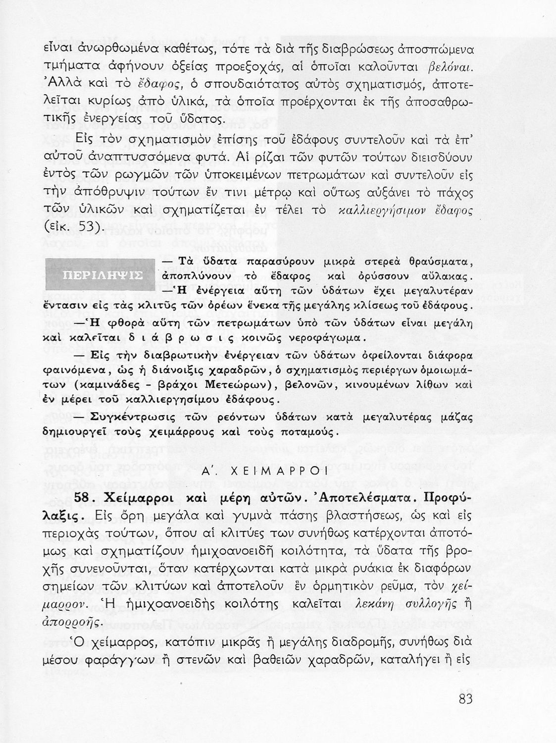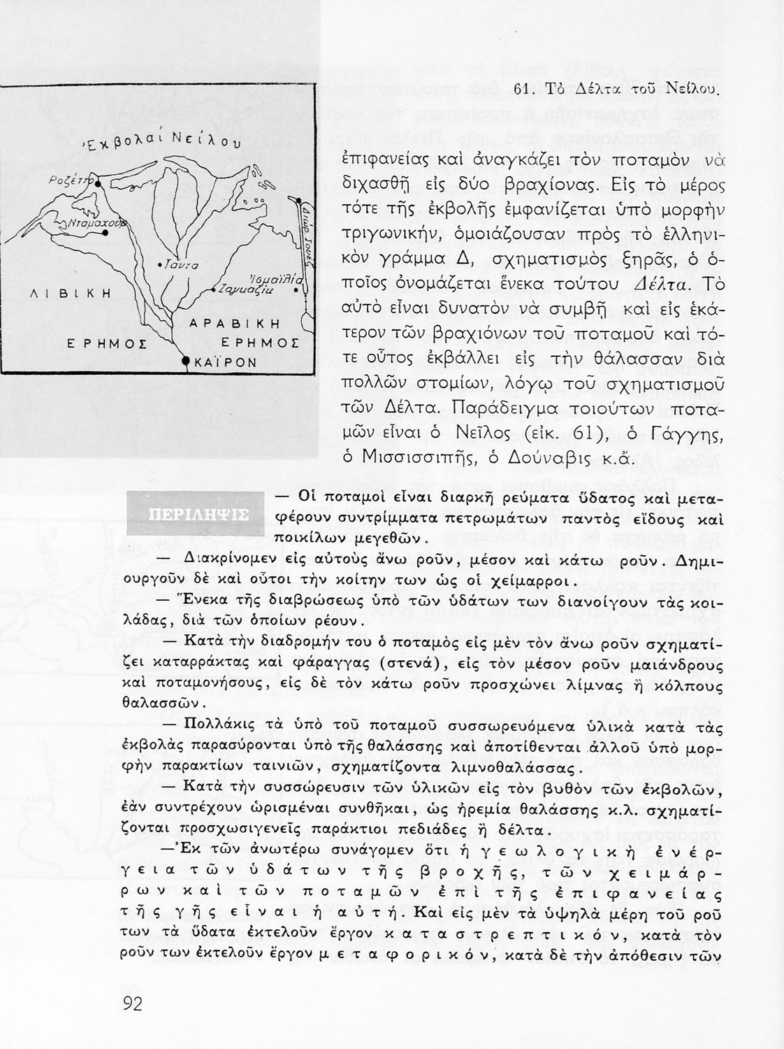 Σχολικό εγχειρίδιο Γεωλογίας/Ορυκτολογίας για την Α΄ Λυκείου που περιλαμβάνει χθονογραφική, δυναμική και ιστορική γεωλογία, και γενική και ειδική ορυκτολογία. Ο συγγραφέας ήταν καθηγητής πανεπιστήμιου και η συγγραφέας φυσικός. Περιέχει παράρτημα με «Στοιχεία Μαθηματικής Γεωγραφίας» από τη γεωγραφία Δ’ τάξης του Αλκίνοου Μάζη (εκδ 1963).