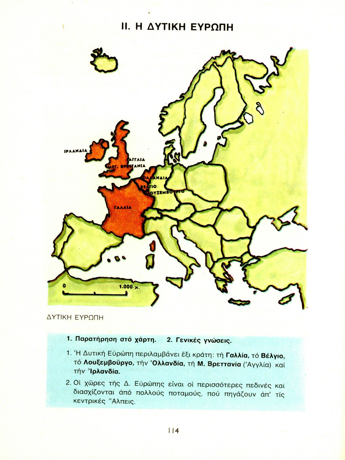 Σχολικό εγχειρίδιο Γεωγραφίας ΣΤ΄ Δημοτικού που περιλαμβάνει στοιχεία φυσικής και μαθηματικής γεωγραφίας και εξετάζει τις χώρες της Ευρώπης από γεωφυσική, οικονομική και πολιτική άποψη. Περιέχει και στοιχεία ανθρωπογεωγραφίας.