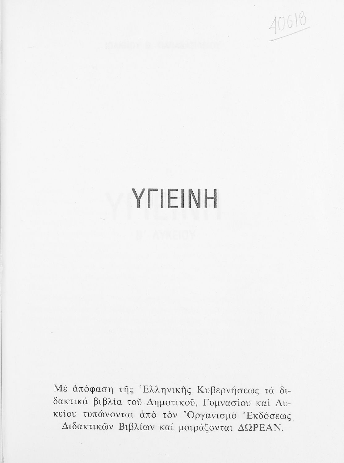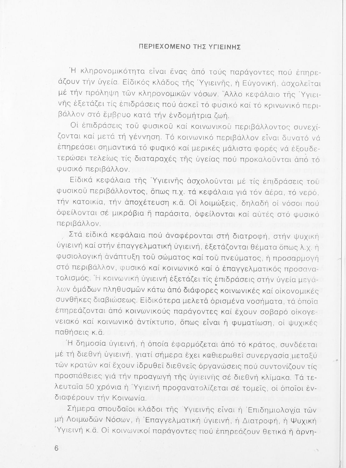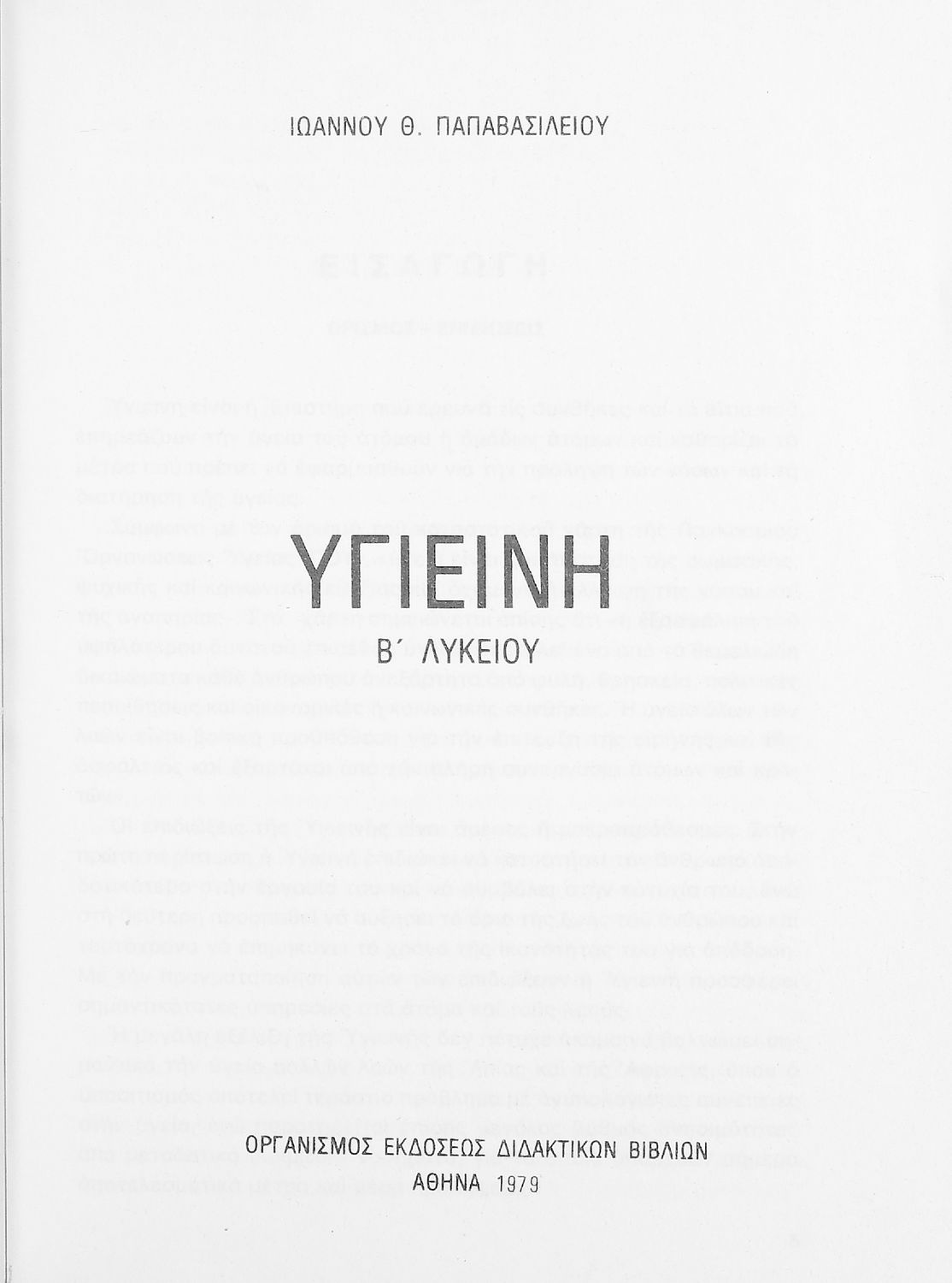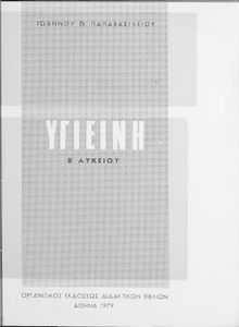 Σχολικό εγχειρίδιο Υγιεινής για τη Β΄ Λυκείου που εστιάζει περιβαντολλογική διάσταση της υγιεινής, τα λοιμώδη νοσήματα, και την κοινωνική υγιεινή.