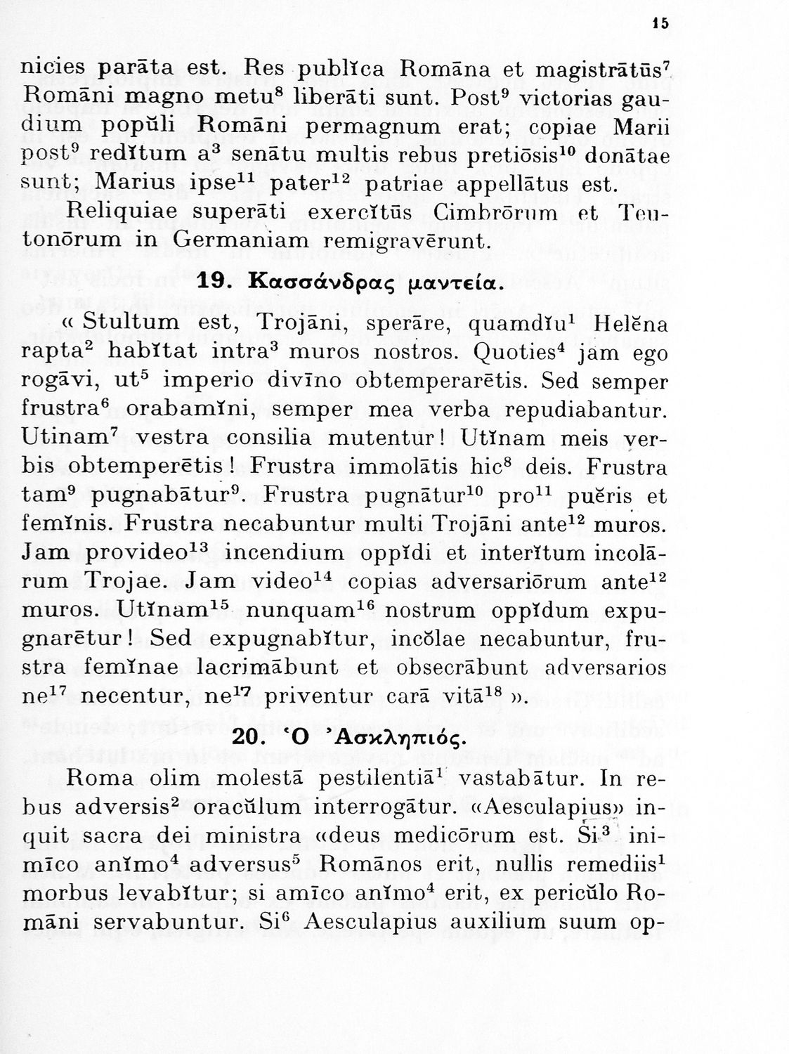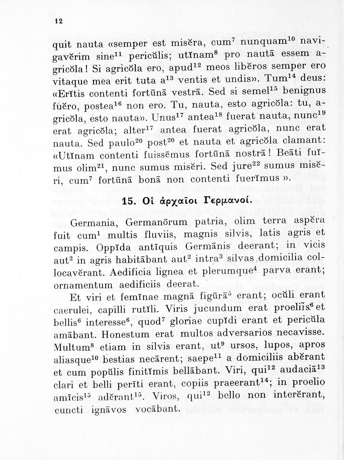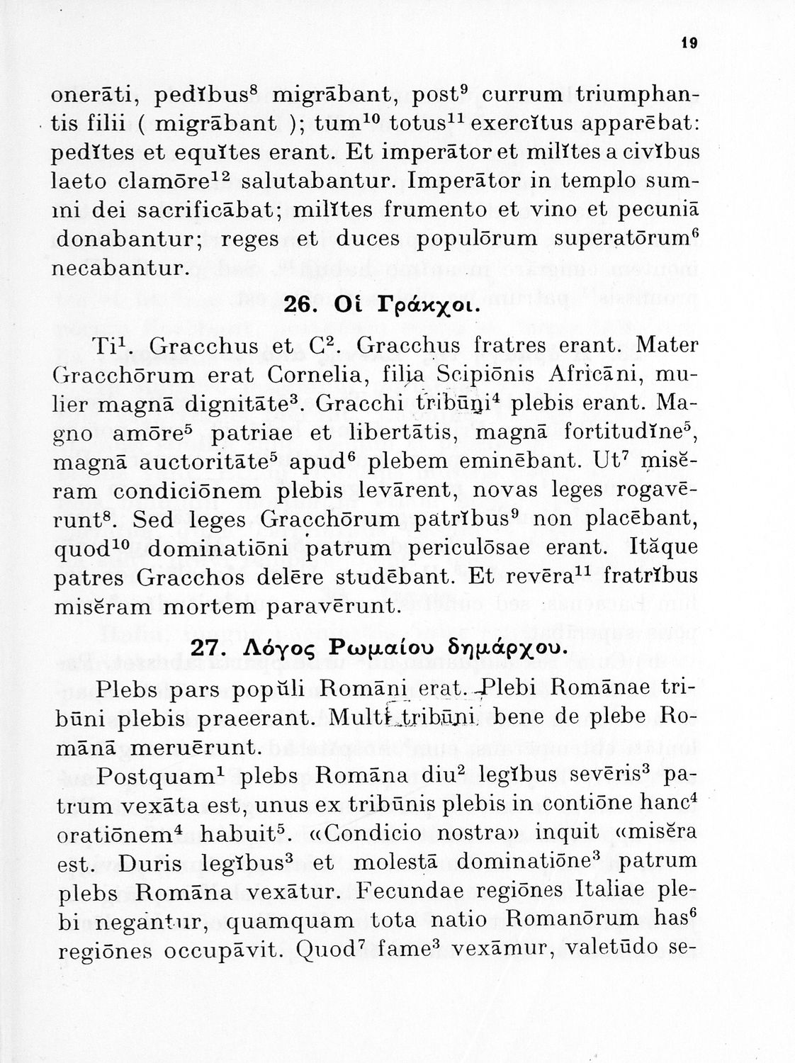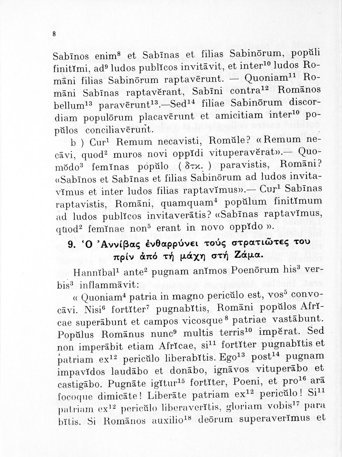 Σχολικό εγχειρίδιο Λατινικών για τη Γ΄ Γυμνασίου που περιέχει 54 κείμενα/περικοπές στα λατινικά, ερμηνευτικά υπομνήματα, λεξιλόγιο και κατάλογο με τα συντακτικά φαινόμενα (αφαιρετική, προθέσεις, σύνδεσμοι) που