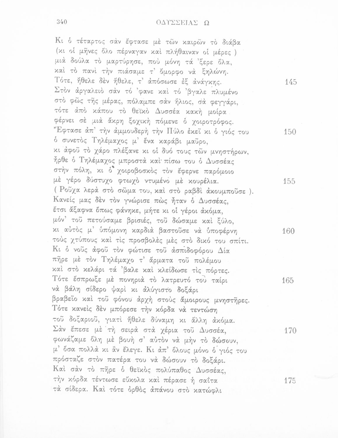 Παιδαγωγικό βοήθημα Αρχαίων Ελληνικών που περιλαμβάνει μετάφραση των ραψωδιών Ν-Ω της Οδύσσειας.