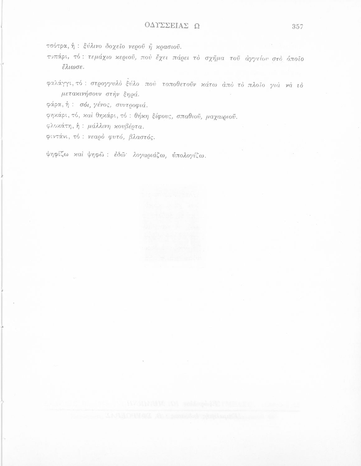 Παιδαγωγικό βοήθημα Αρχαίων Ελληνικών που περιλαμβάνει μετάφραση των ραψωδιών Ν-Ω της Οδύσσειας.