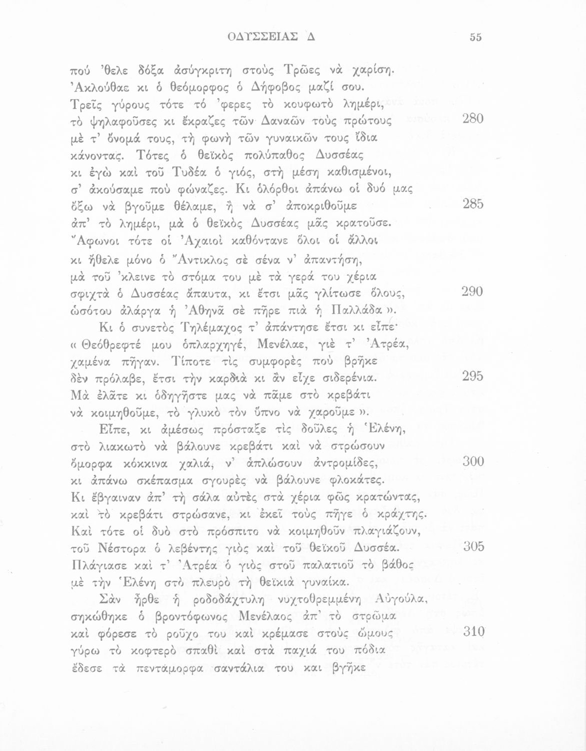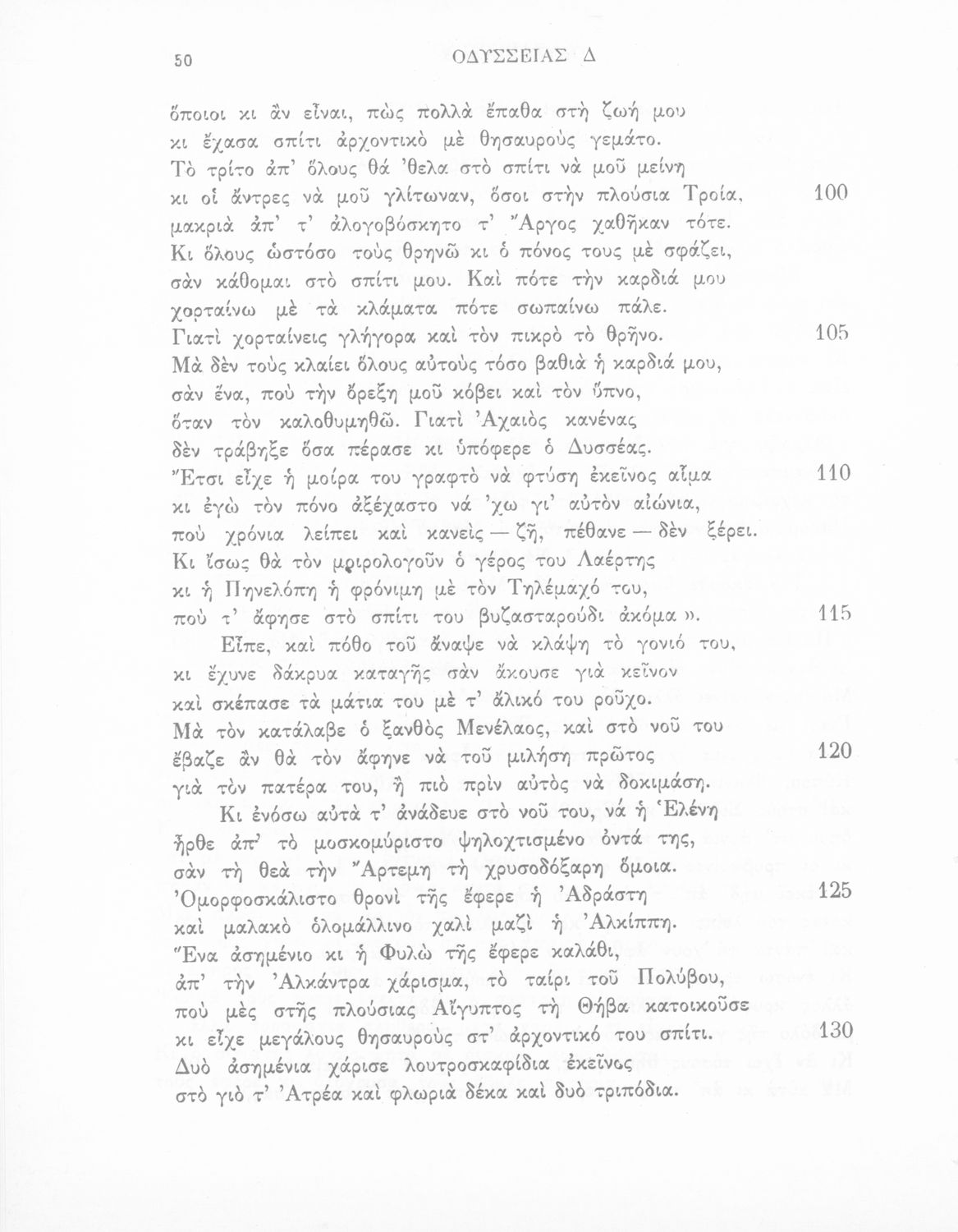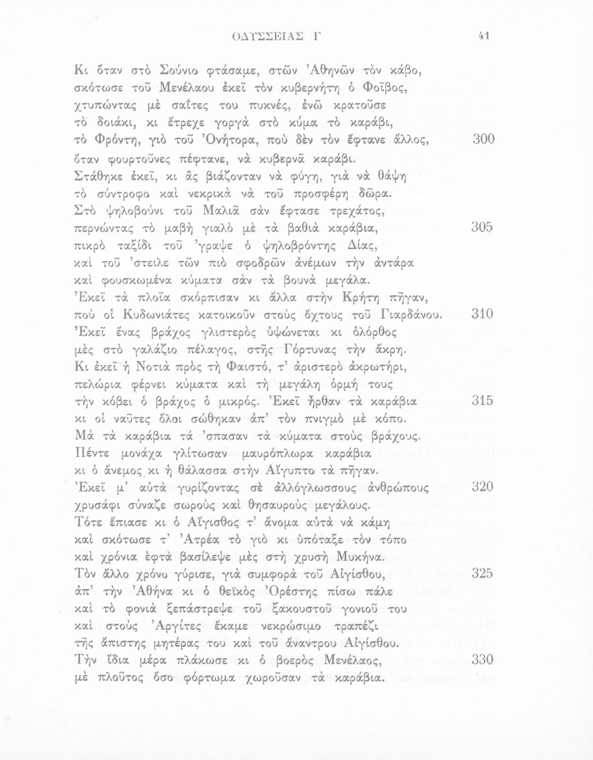 Σχολικό εγχειρίδιο της Δευτεροβάθμιας Εκπαίδευσης για το μάθημα των Αρχαίων Ελληνικών. Πρόκειται για το κείμενο της Οδύσσειας μεταφρασμένο, με πραγματολογικές παρατηρήσεις στο τέλος περιλαμβάνει λεξιλόγιο.